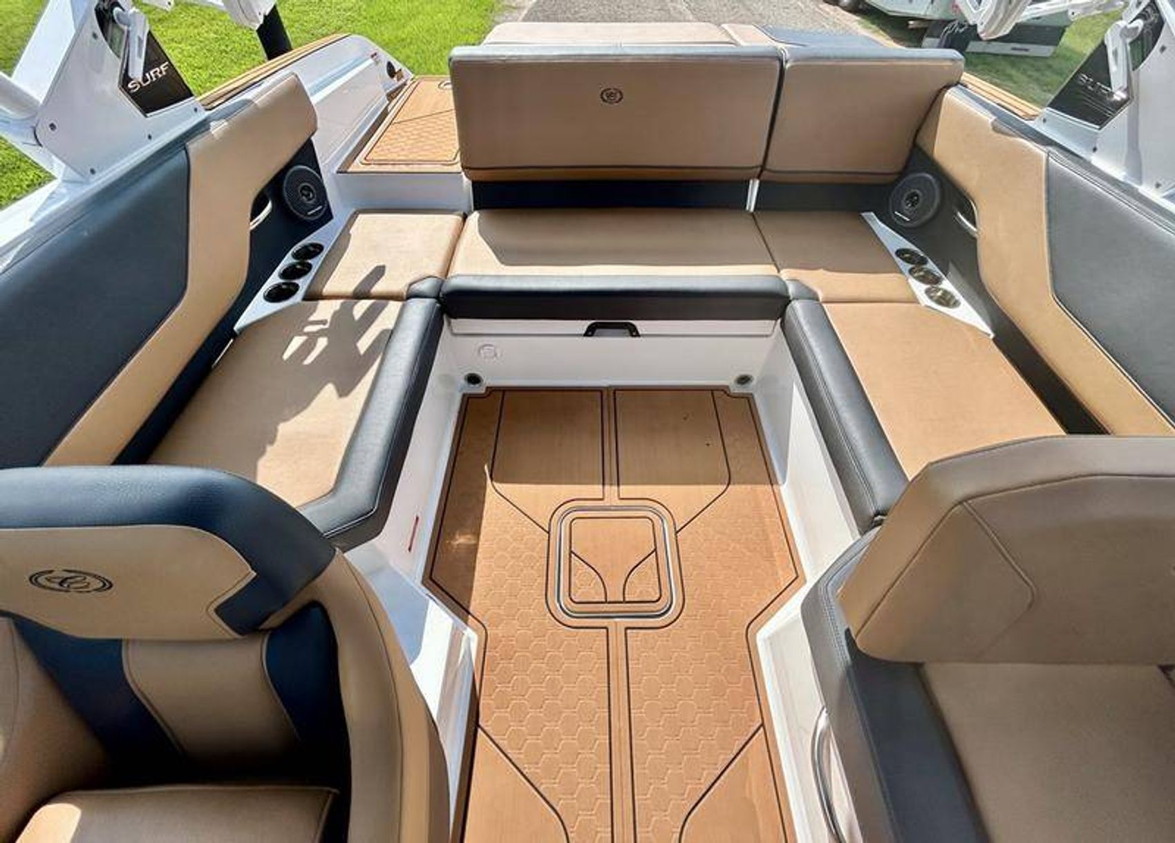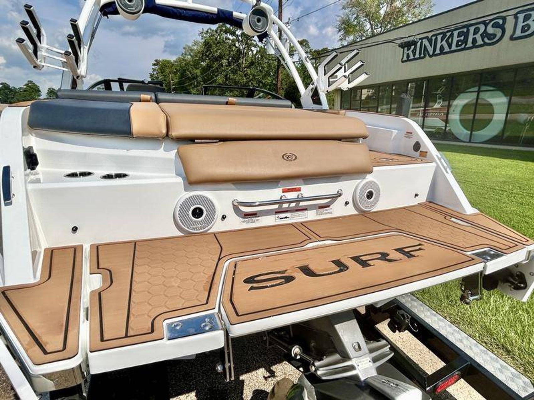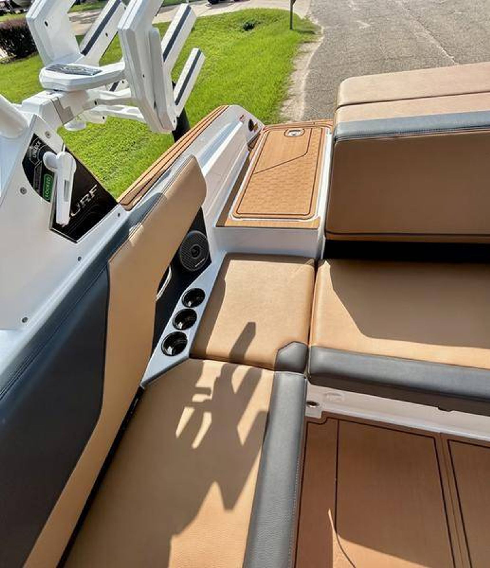 Where design and elegance meet, the CS23 Surf has legendary Cobalt DNA with smooth lines, an island sun lounge, wraparound swim platform extensions, and a surf-specific hull and deck designed for fun—plus, our simple, three-step wave-making process with TRUEWAVE Technology for thrilling performance on the water.