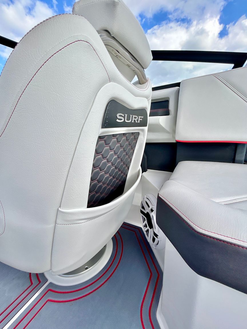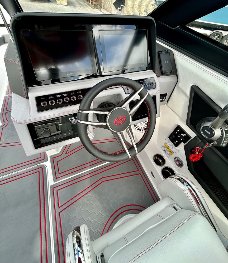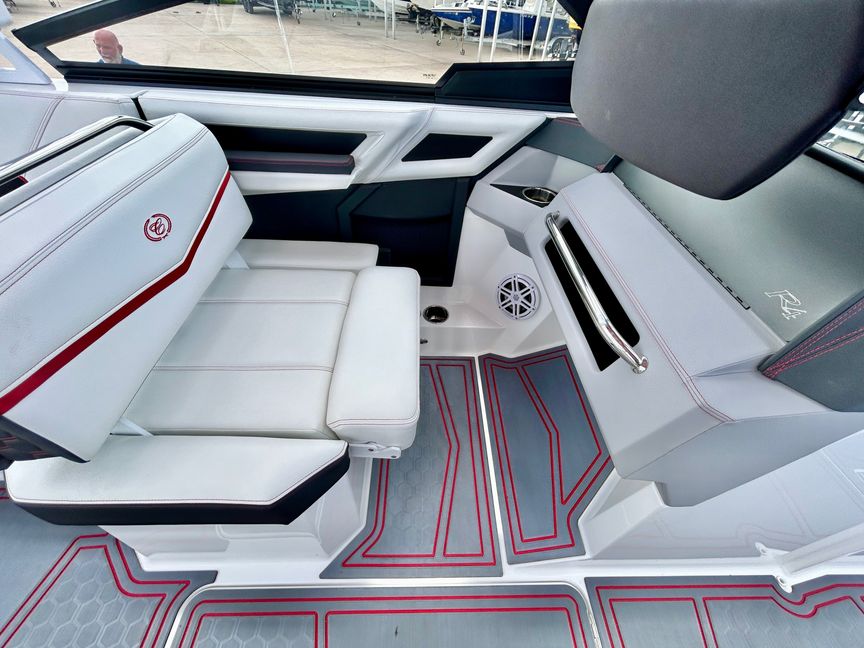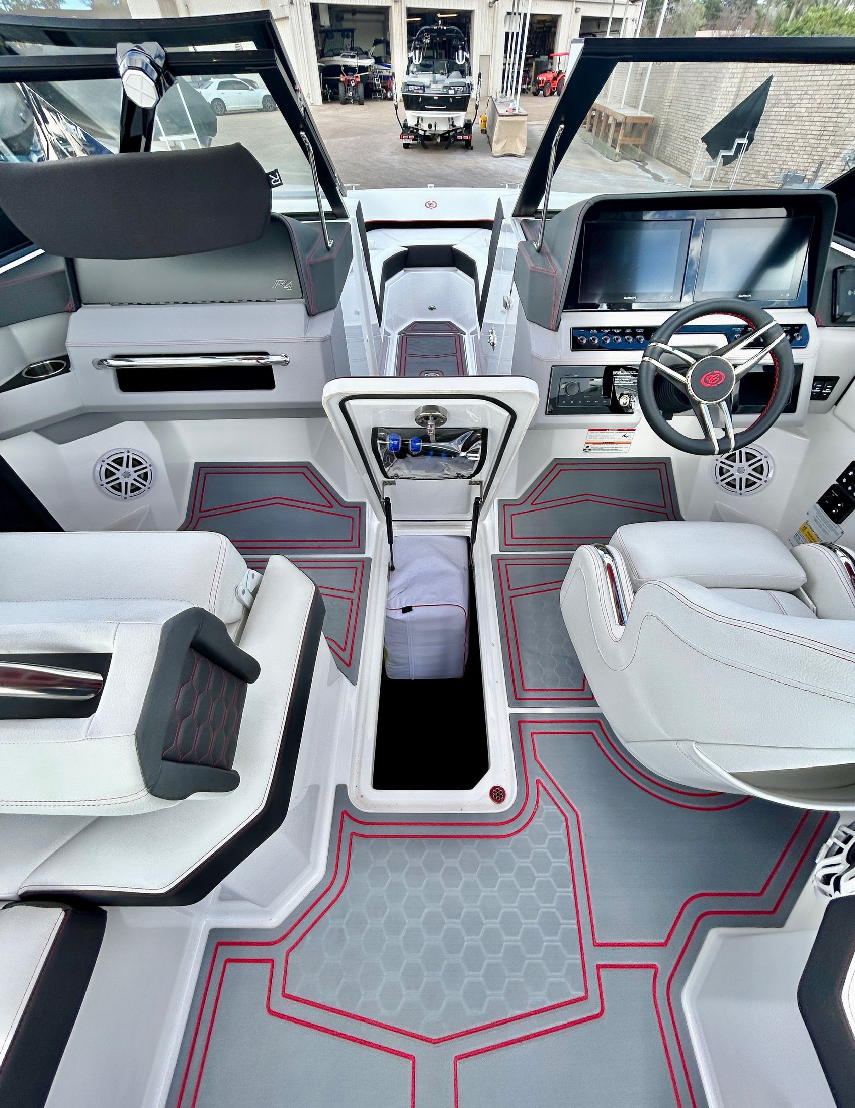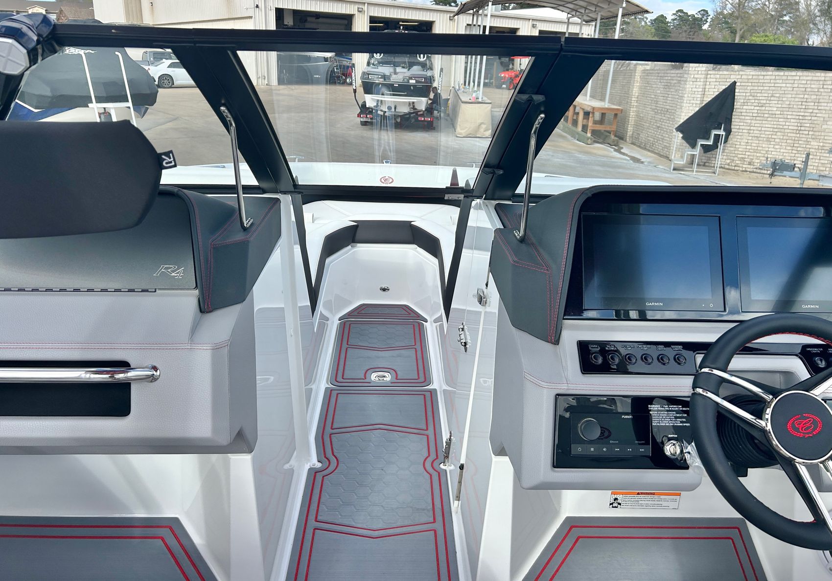 Inside the R4 Surf, discover where state-of-the-art becomes fine art. A family sized sport runabout that incorporates sleek lines, crisp handling from the dual Garmin Glass Cockpit touchscreens, and a range of options, the uniquely refined interior complements its unsurpassed watersports capability.