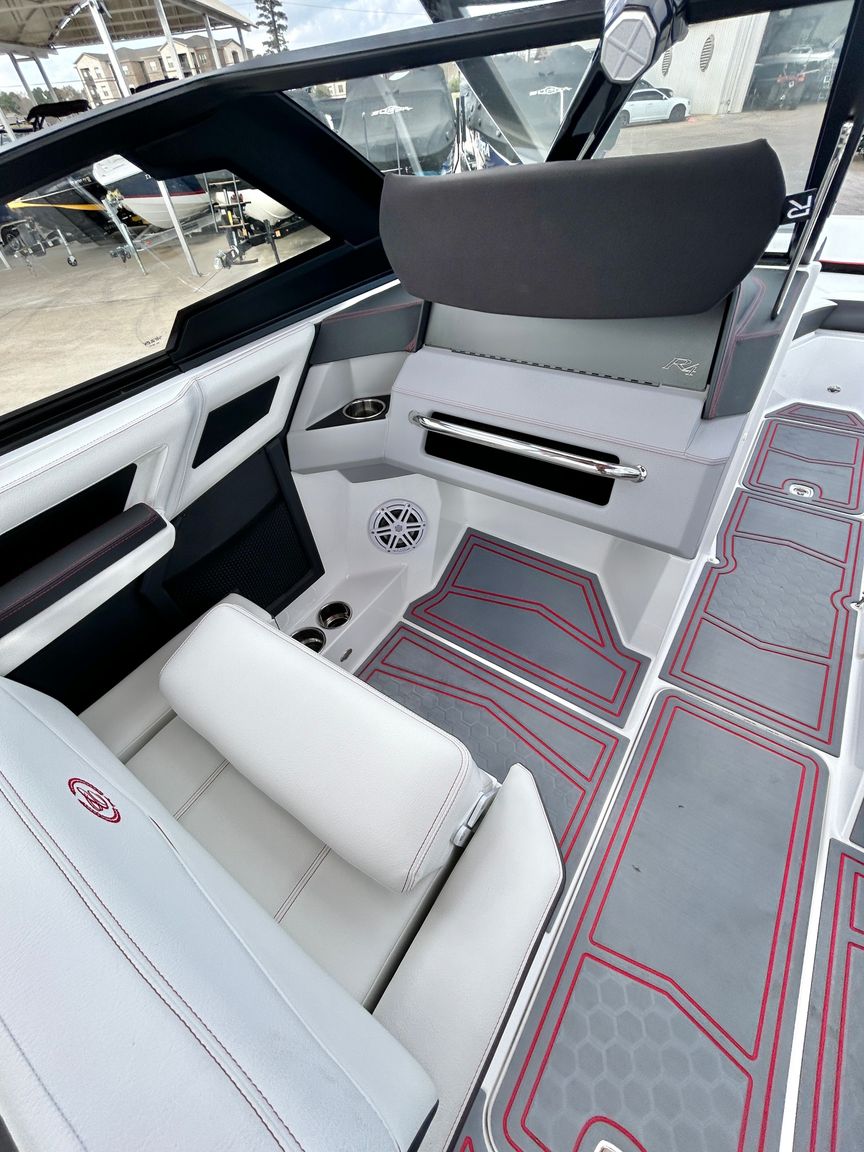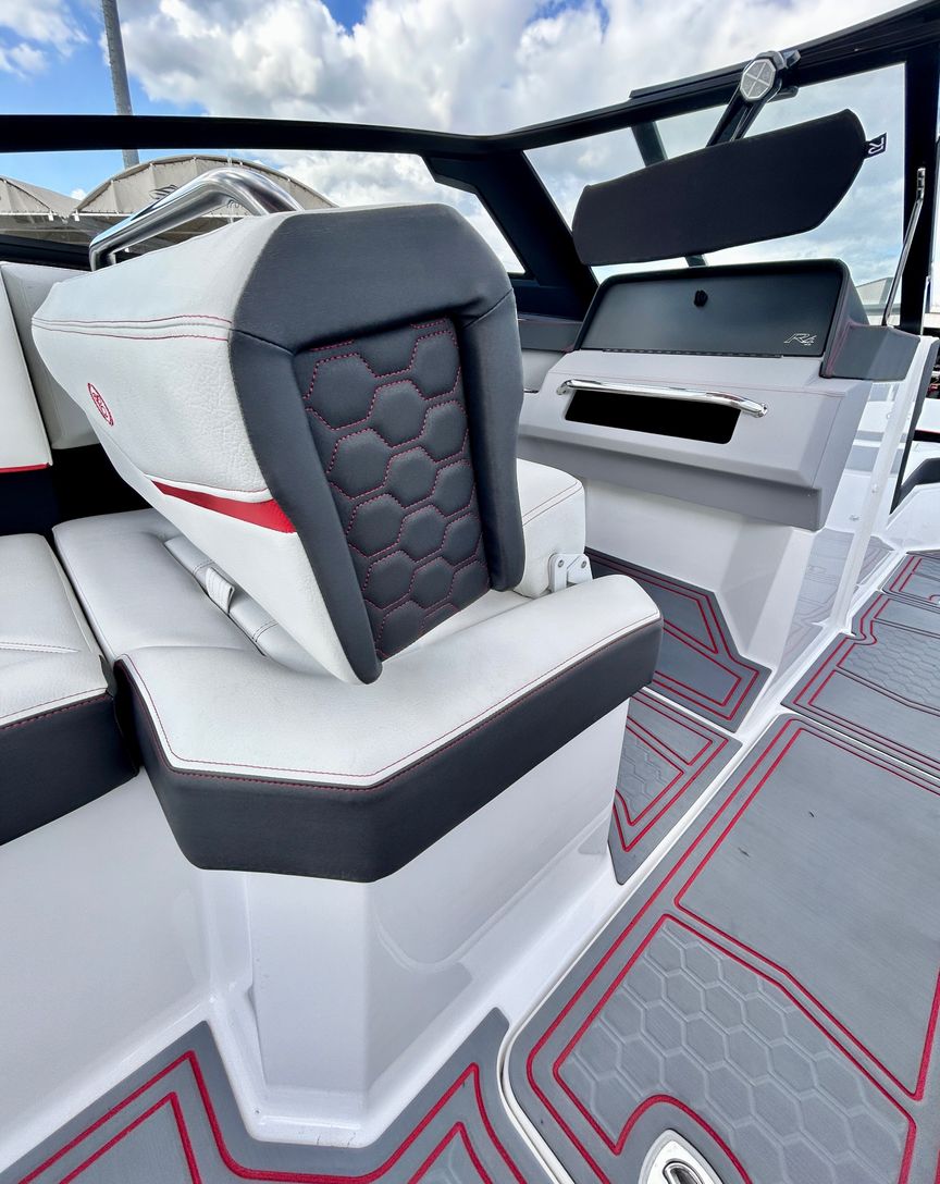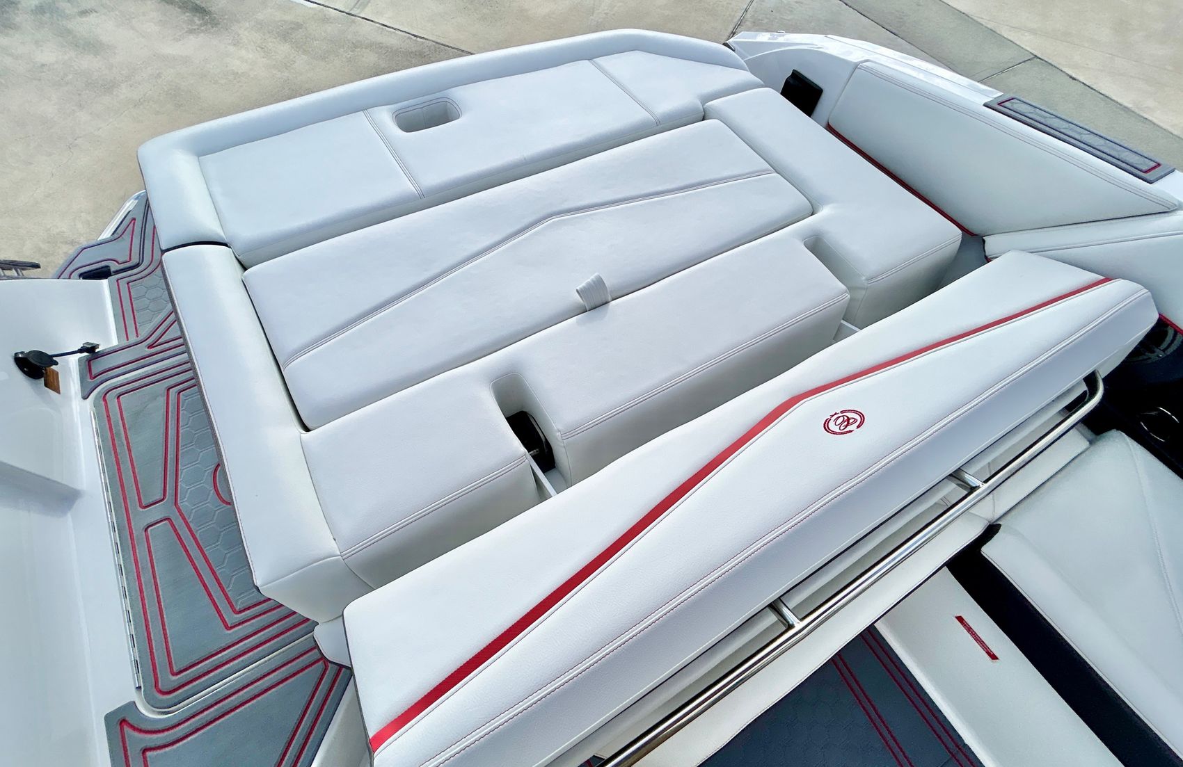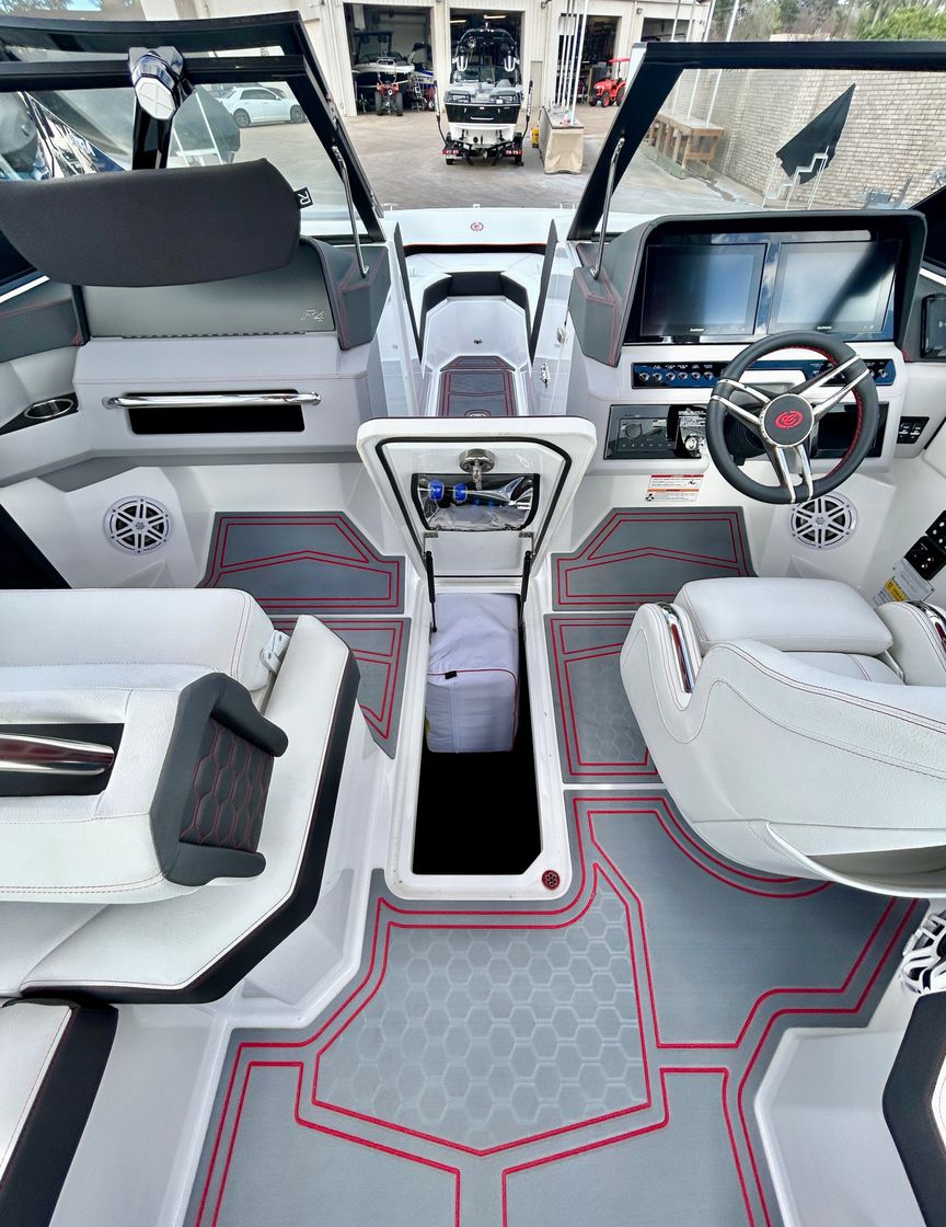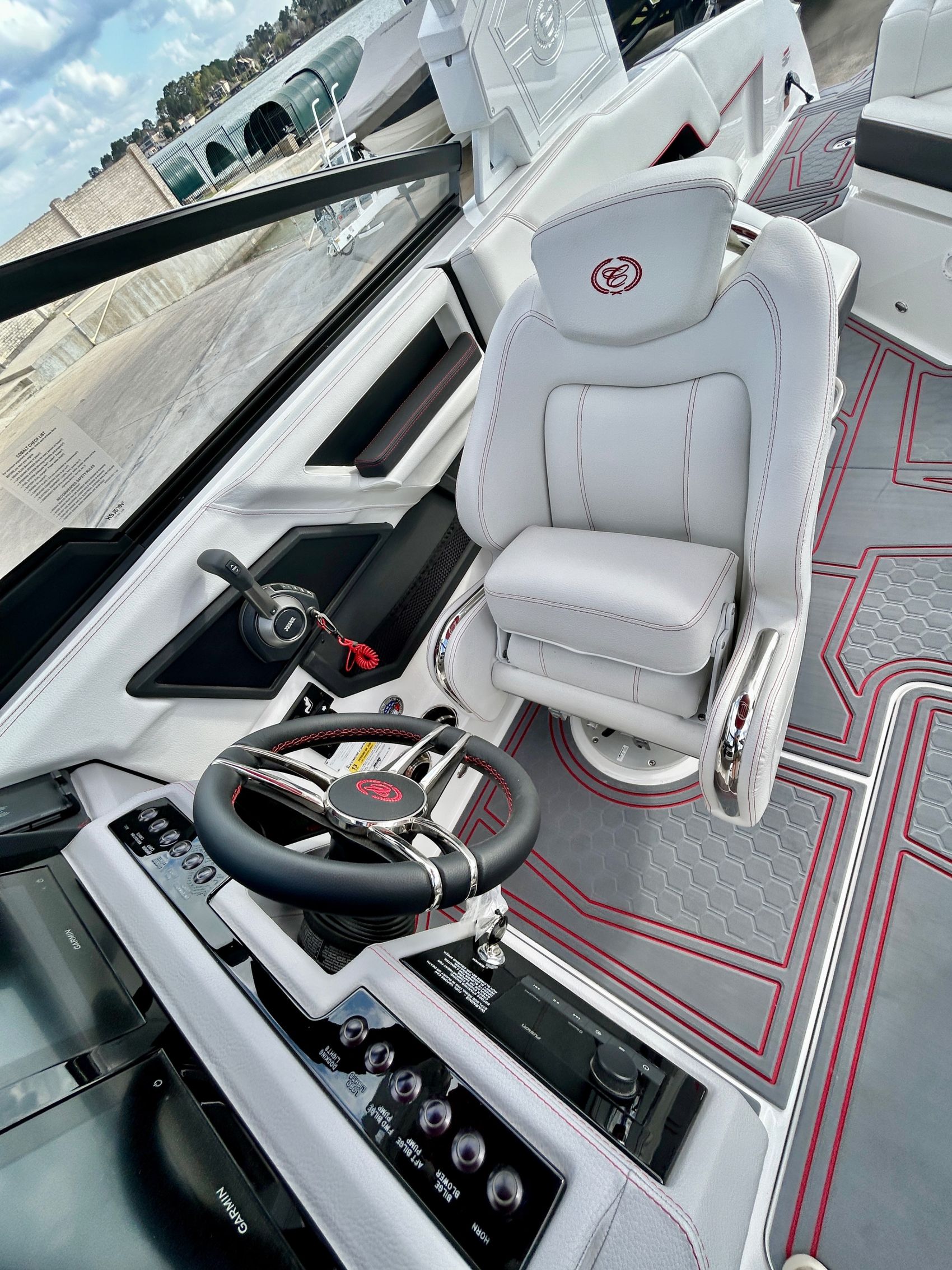 Inside the R4 Surf, discover where state-of-the-art becomes fine art. A family sized sport runabout that incorporates sleek lines, crisp handling from the dual Garmin Glass Cockpit touchscreens, and a range of options, the uniquely refined interior complements its unsurpassed watersports capability.