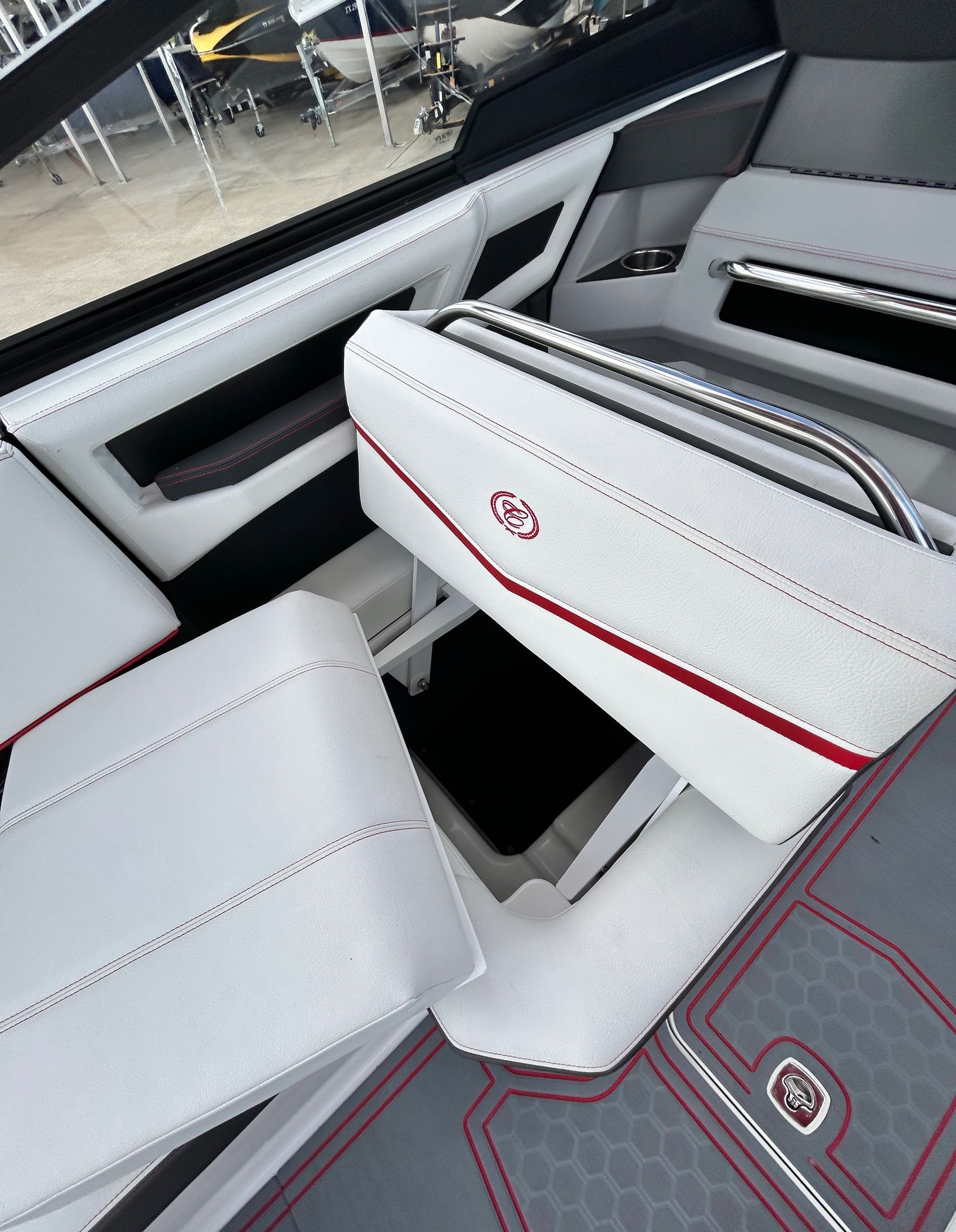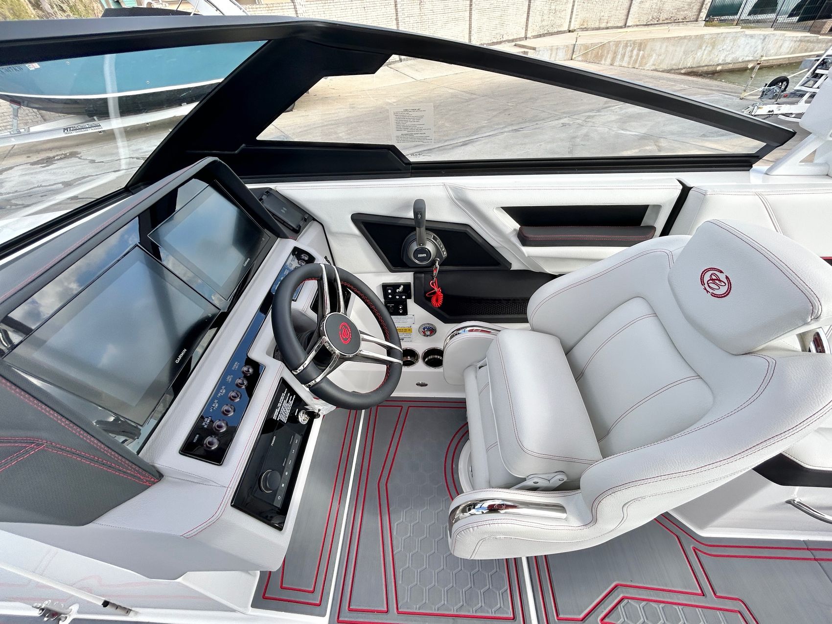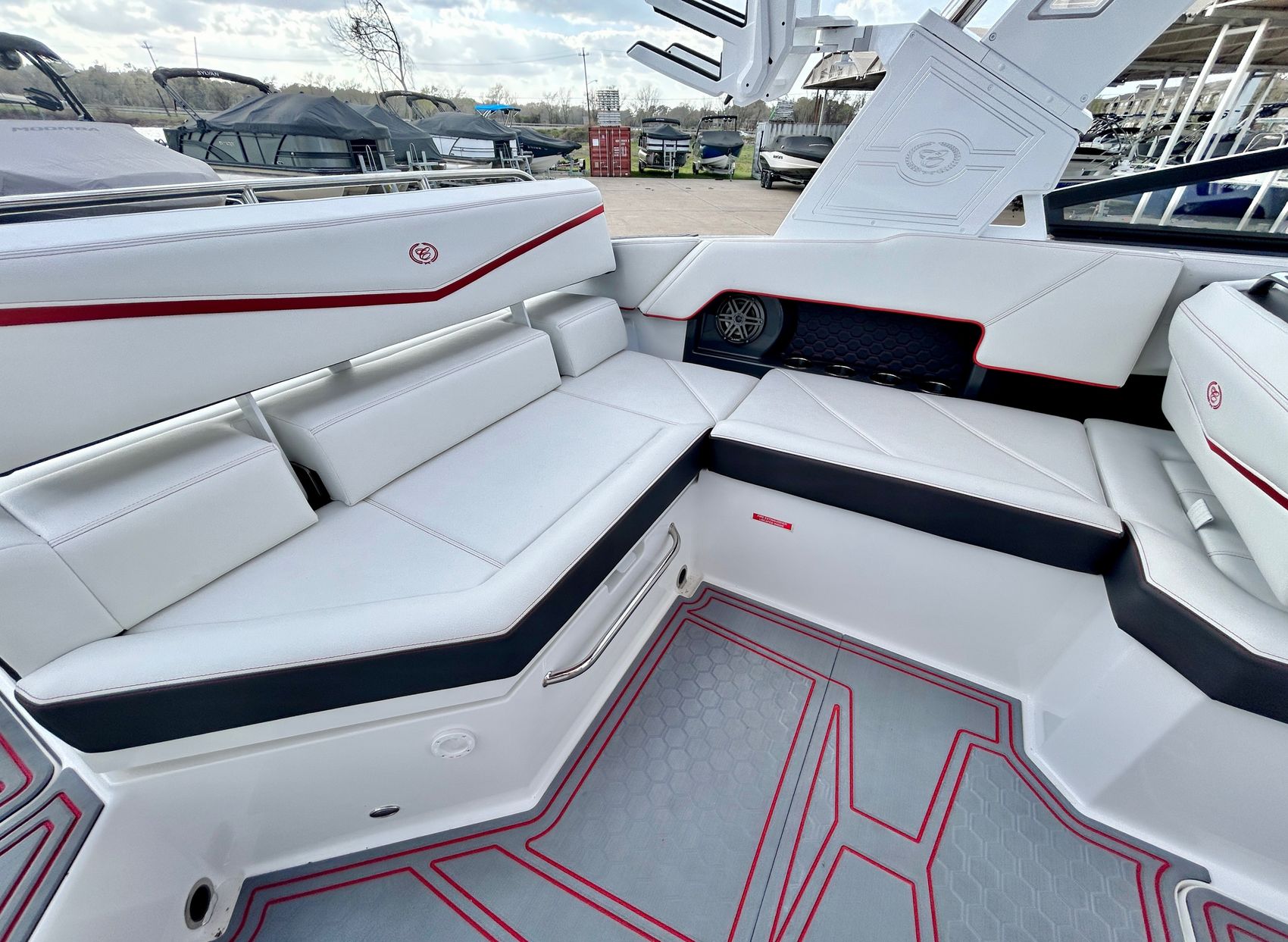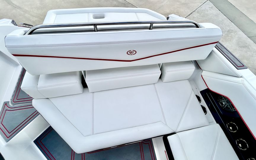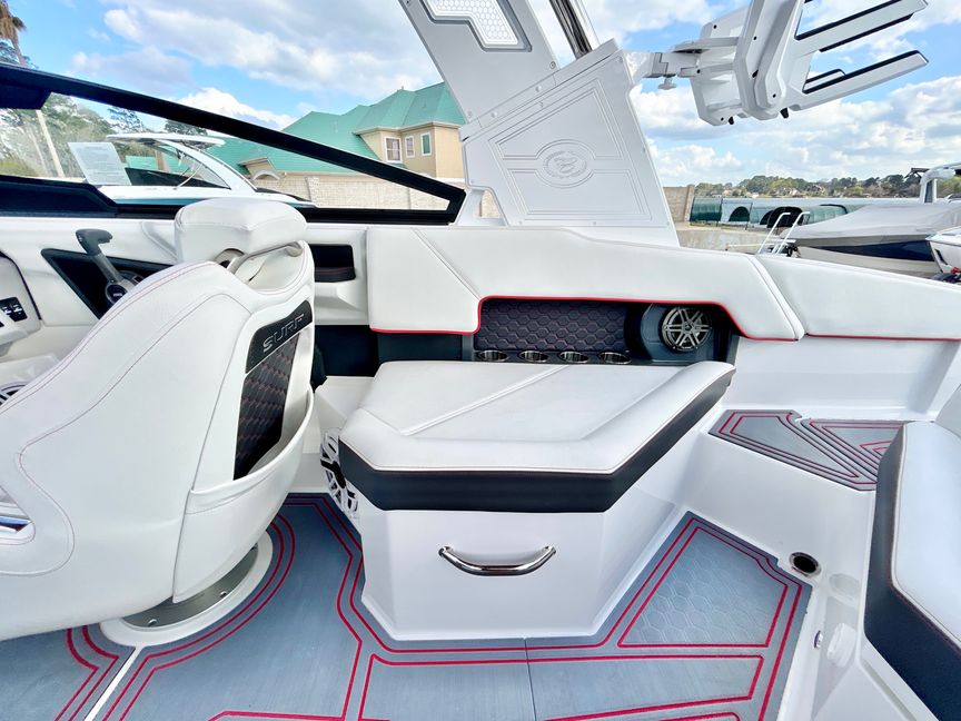 Inside the R4 Surf, discover where state-of-the-art becomes fine art. A family sized sport runabout that incorporates sleek lines, crisp handling from the dual Garmin Glass Cockpit touchscreens, and a range of options, the uniquely refined interior complements its unsurpassed watersports capability.