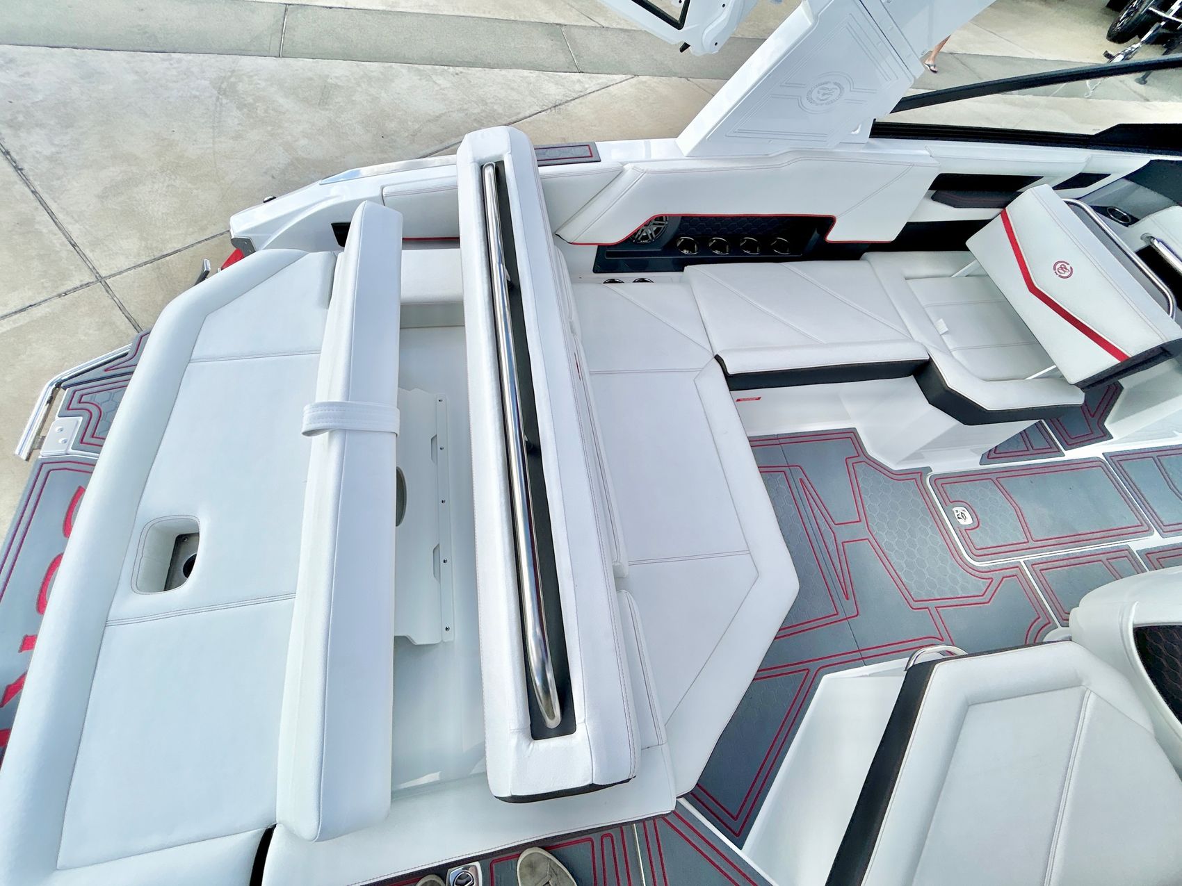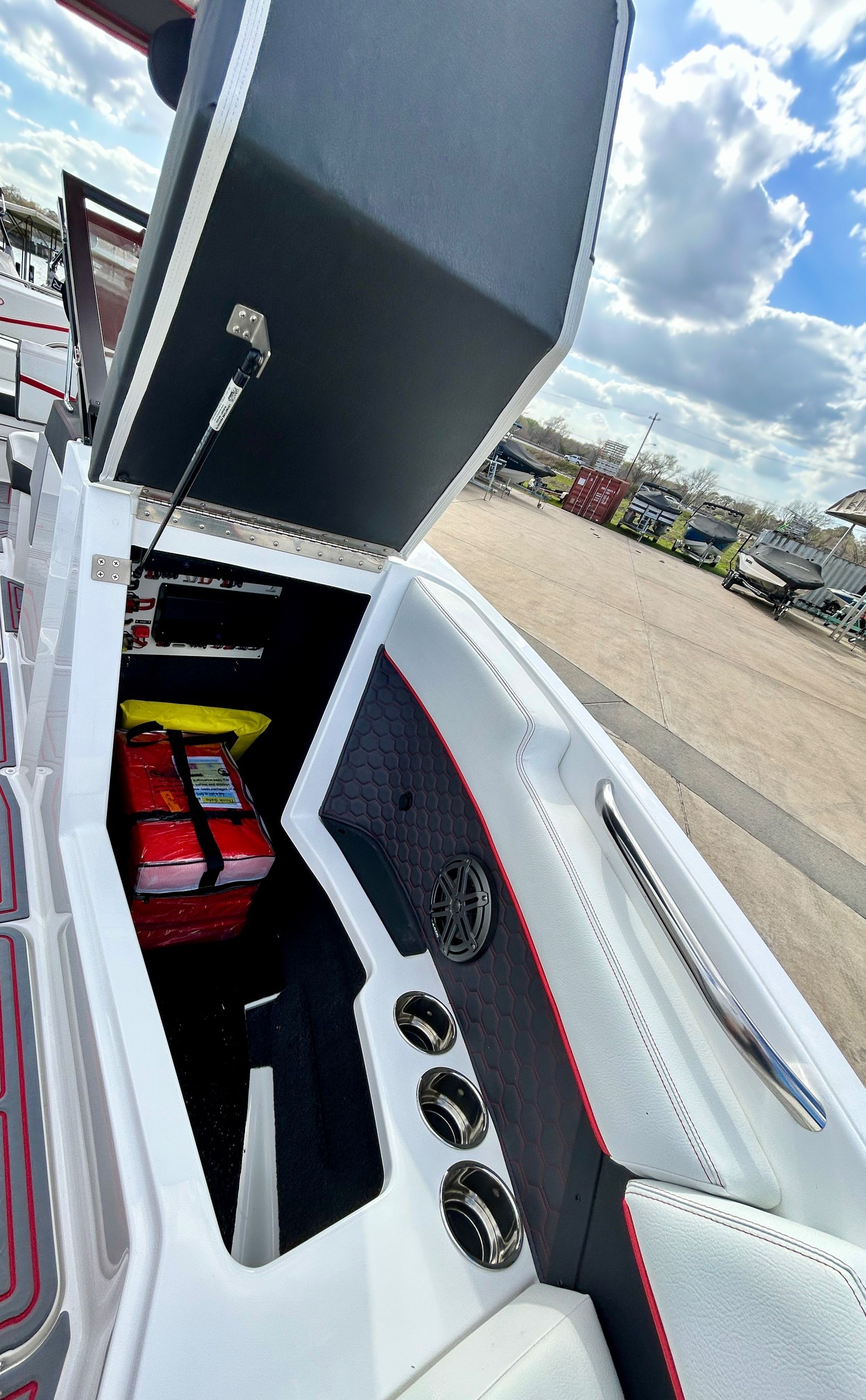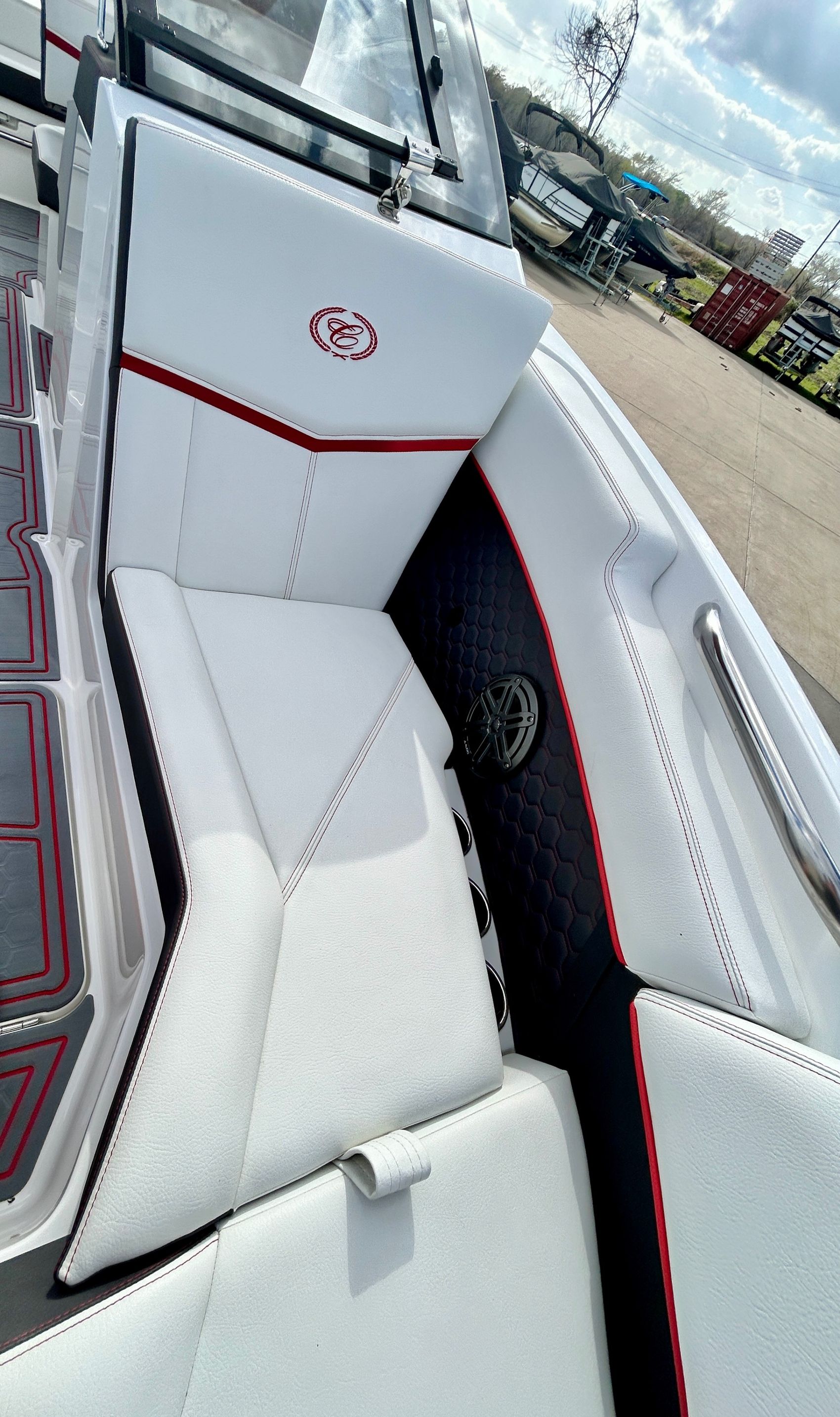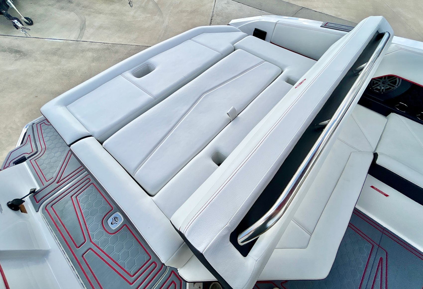 Inside the R4 Surf, discover where state-of-the-art becomes fine art. A family sized sport runabout that incorporates sleek lines, crisp handling from the dual Garmin Glass Cockpit touchscreens, and a range of options, the uniquely refined interior complements its unsurpassed watersports capability.