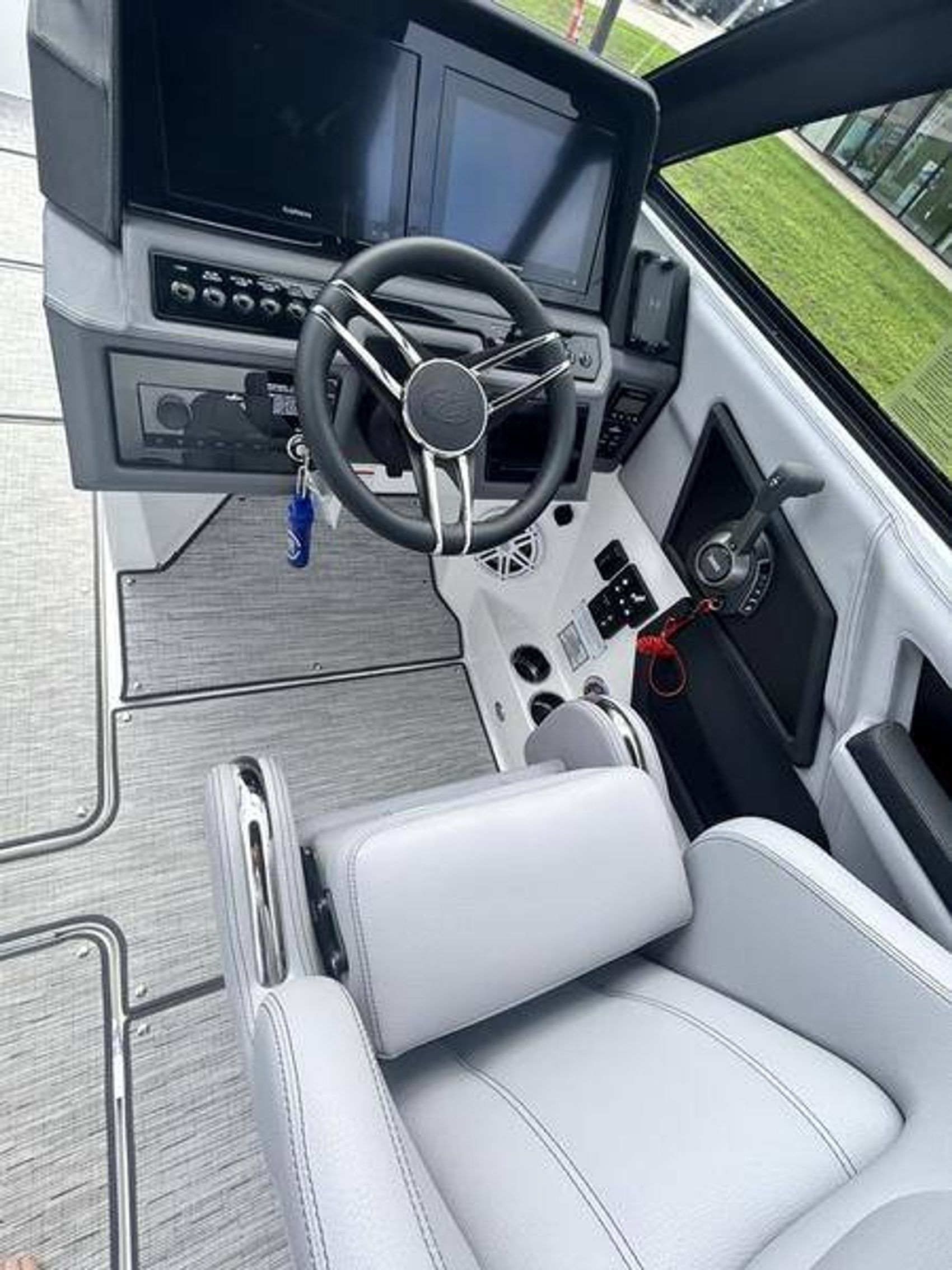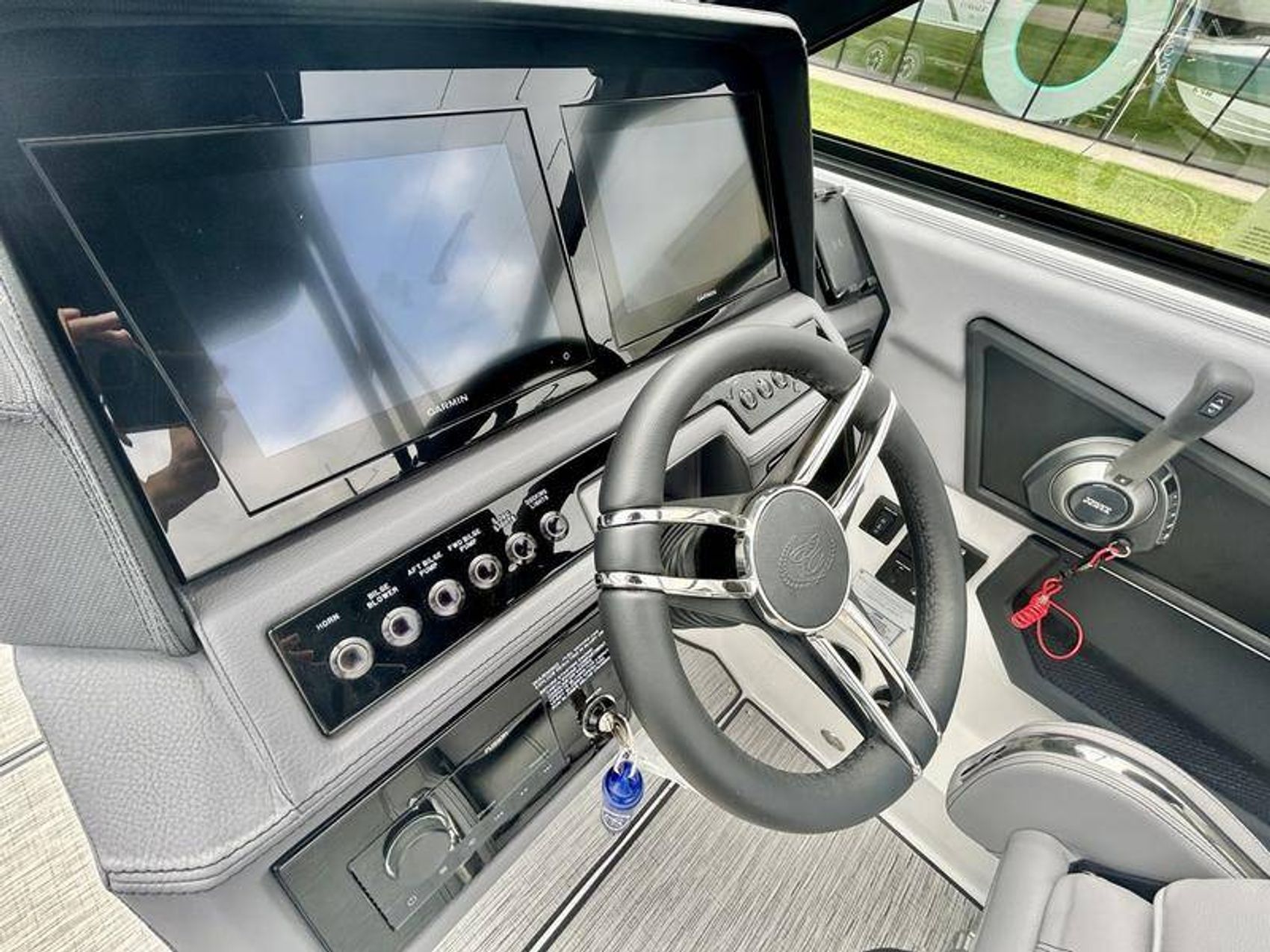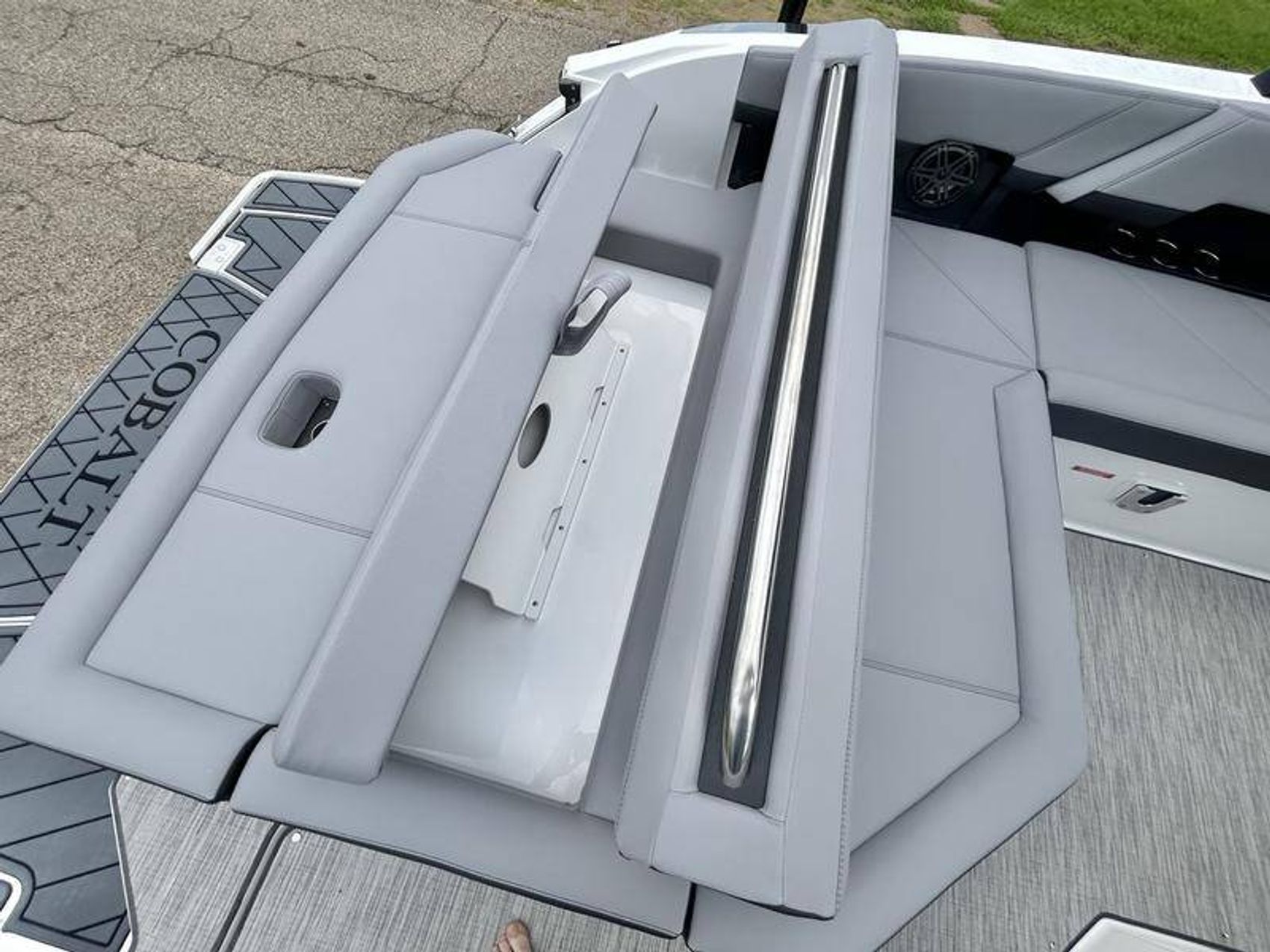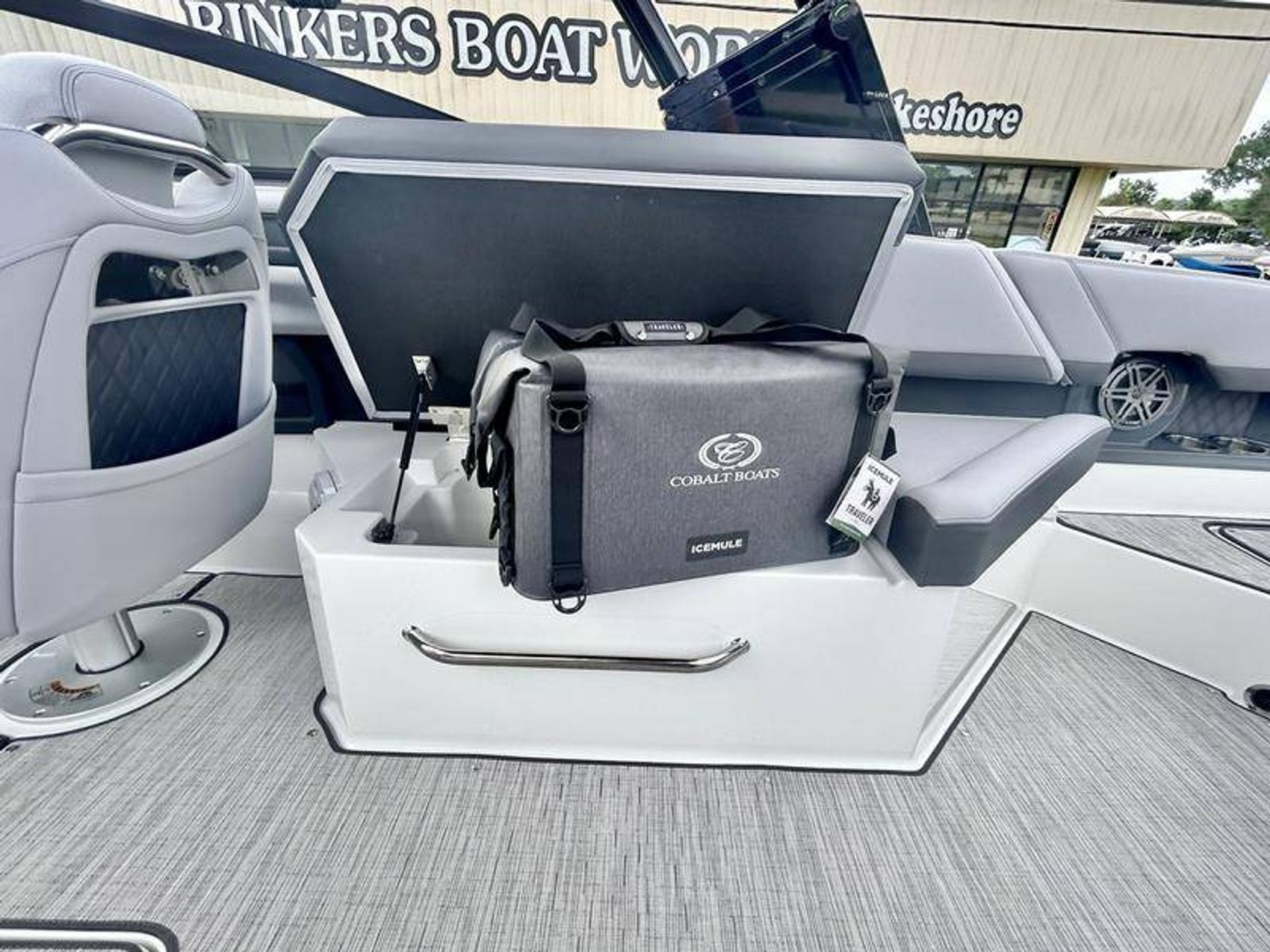 DescriptionIntroducing the 2025 Cobalt Boats R8: Luxury, Performance, and Innovation MergedImmaculate Design & Advanced Technology Experience the pinnacle of boating sophistication with the sleek and meticulously designed 2025 Cobalt Boats R8. This flagship model not only promises exquisite luxury and unmatched performance but delivers it, pushing the boundaries of marine innovation. Powerful Performance On The Waves Underneath its elegant exterior, the R8 is a powerhouse complete with a responsive engine that provides a thrilling and smooth ride. This model transcends standard performance metrics, making every trip on water an exhilarating adventure. Luxury That Inspires The interior is as impressive as the exterior with luxury finishes, ergonomically designed seats for maximum comfort, and a spacious layout. Convenience and luxury have been blended to perfection to deliver a boating experience like no other. Marine Innovation at its Best The 2025 Cobalt Boats R8 represents the epitome of marine technology, boasting state-of-the-art navigation systems, advanced safety features, and high-quality entertainment setups. With this model, every sailing journey becomes a technological marvel. Features include: Dash & Instrumentation - Steering Wheel, Black Leather/Stainless Steel