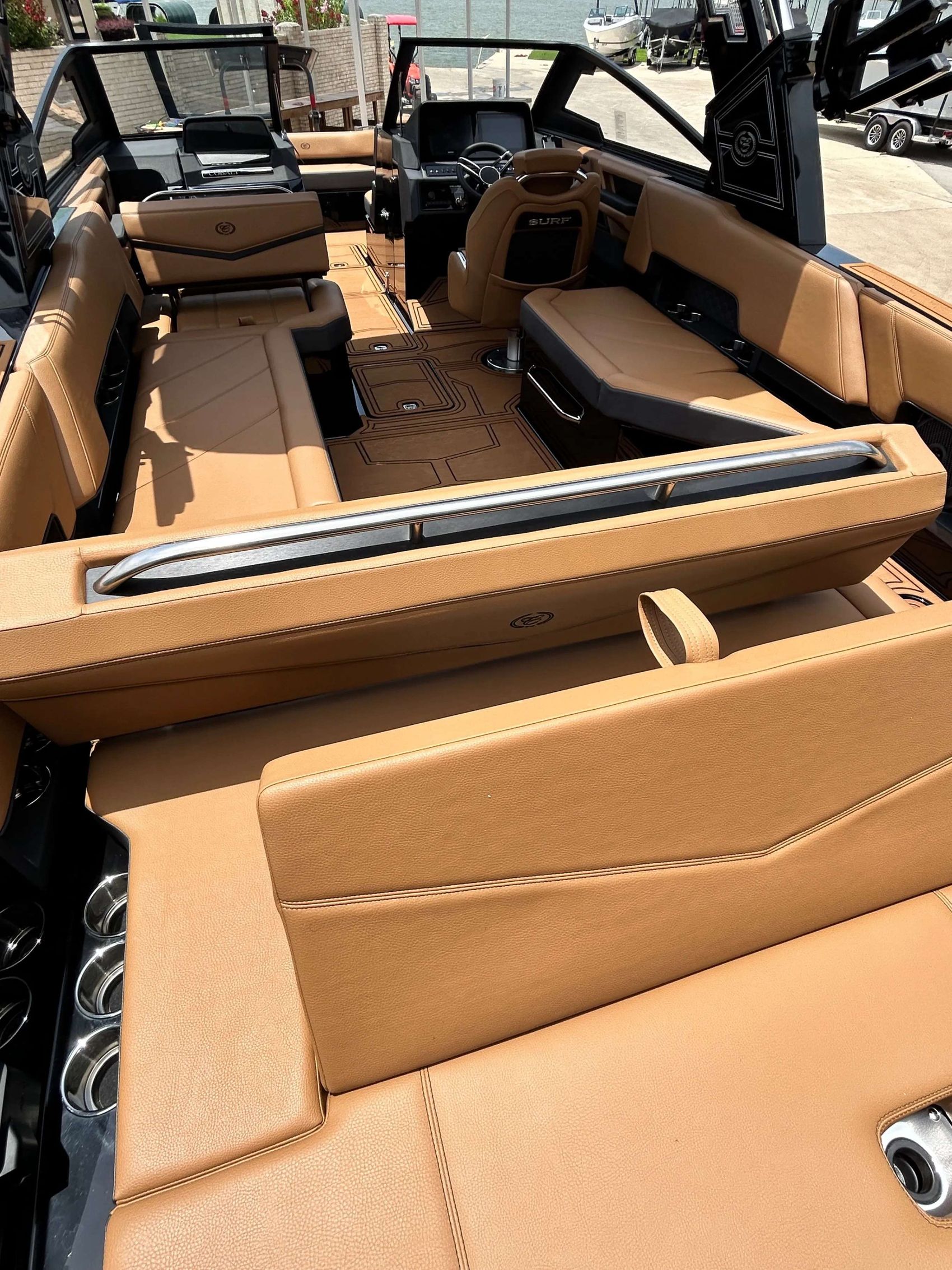 The 2025 Cobalt Boat R8 SURF sports a sleek, contemporary design that captures the essence of sophistication. With its unparalleled craftsmanship, there is an exceptional attention to detail, inside and out. The interior is spacious and luxurious, offering ample seating and storage capabilities for a perfect day out on the water.
