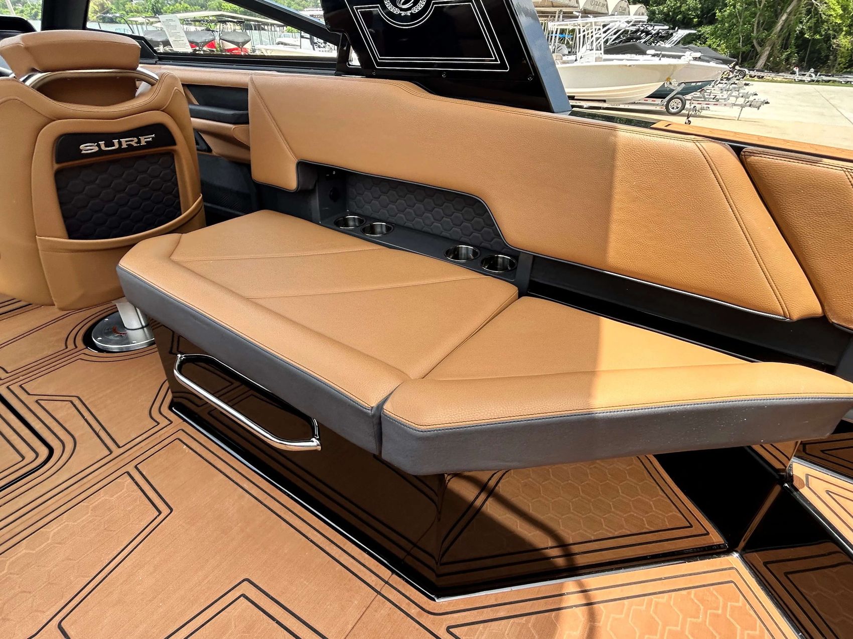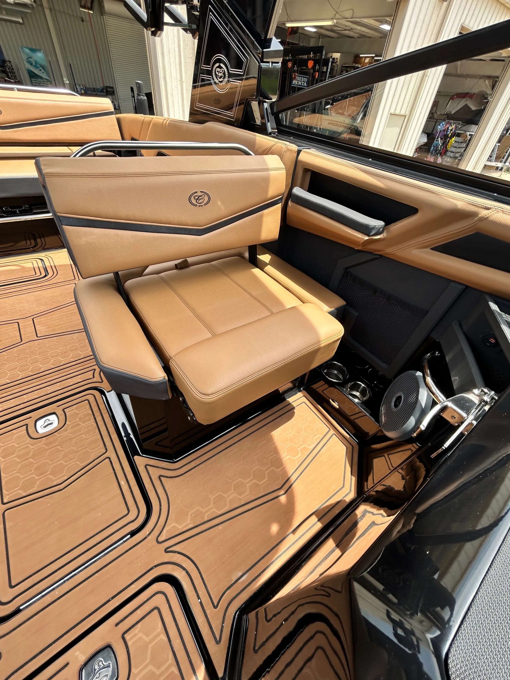 Step aboard the 2025 Cobalt Boat R8 SURF, a masterfully designed and crafted boat that redefines luxury and performance. This boat not only provides a smooth, comfortable ride but is also equipped with state-of-the-art surfing features, setting a new standard in the boating industry. A classic, eye-catching full ebony interior fiberglass / gelcoat upgrade, takes this boat to the next level of luxury!