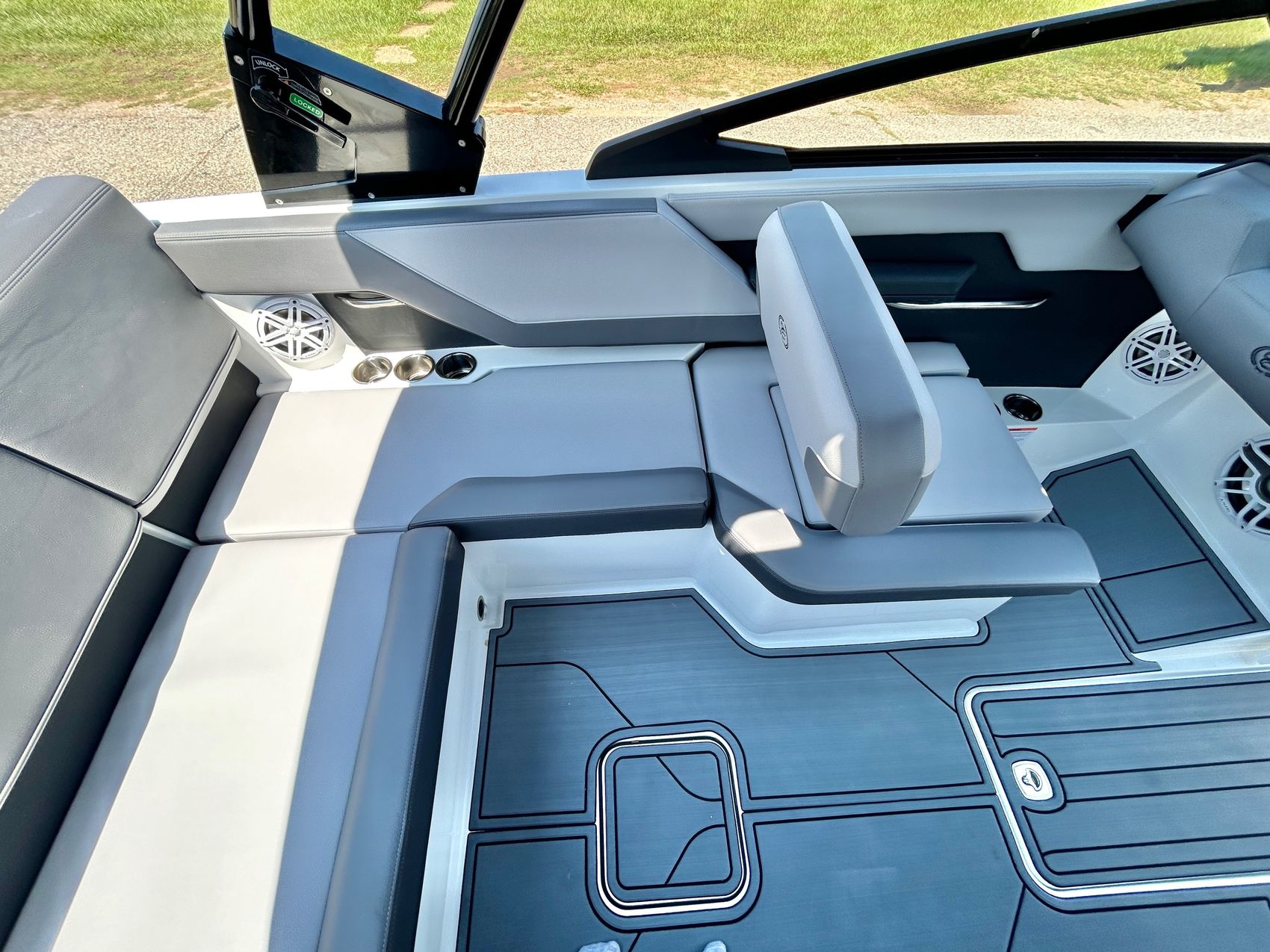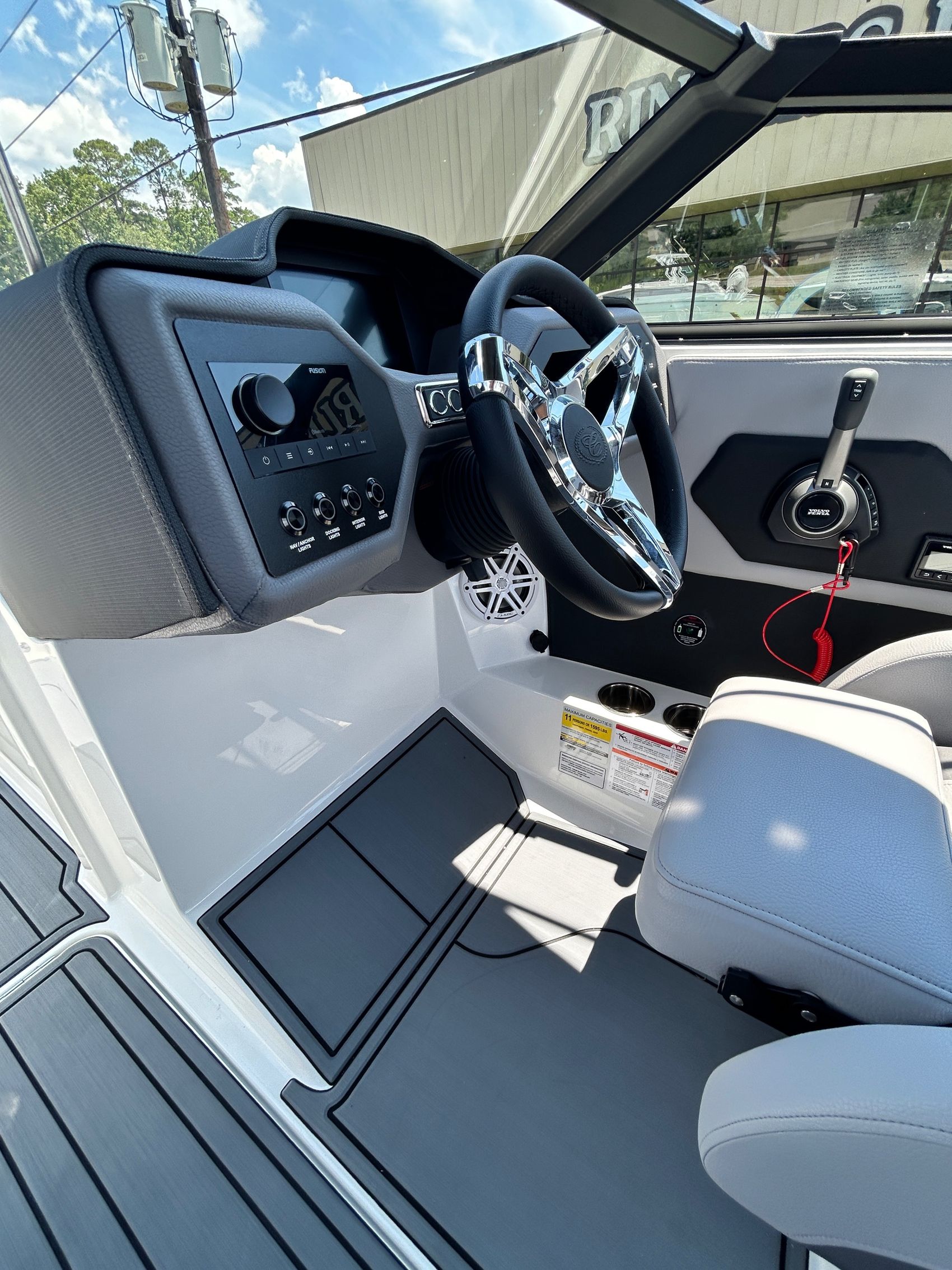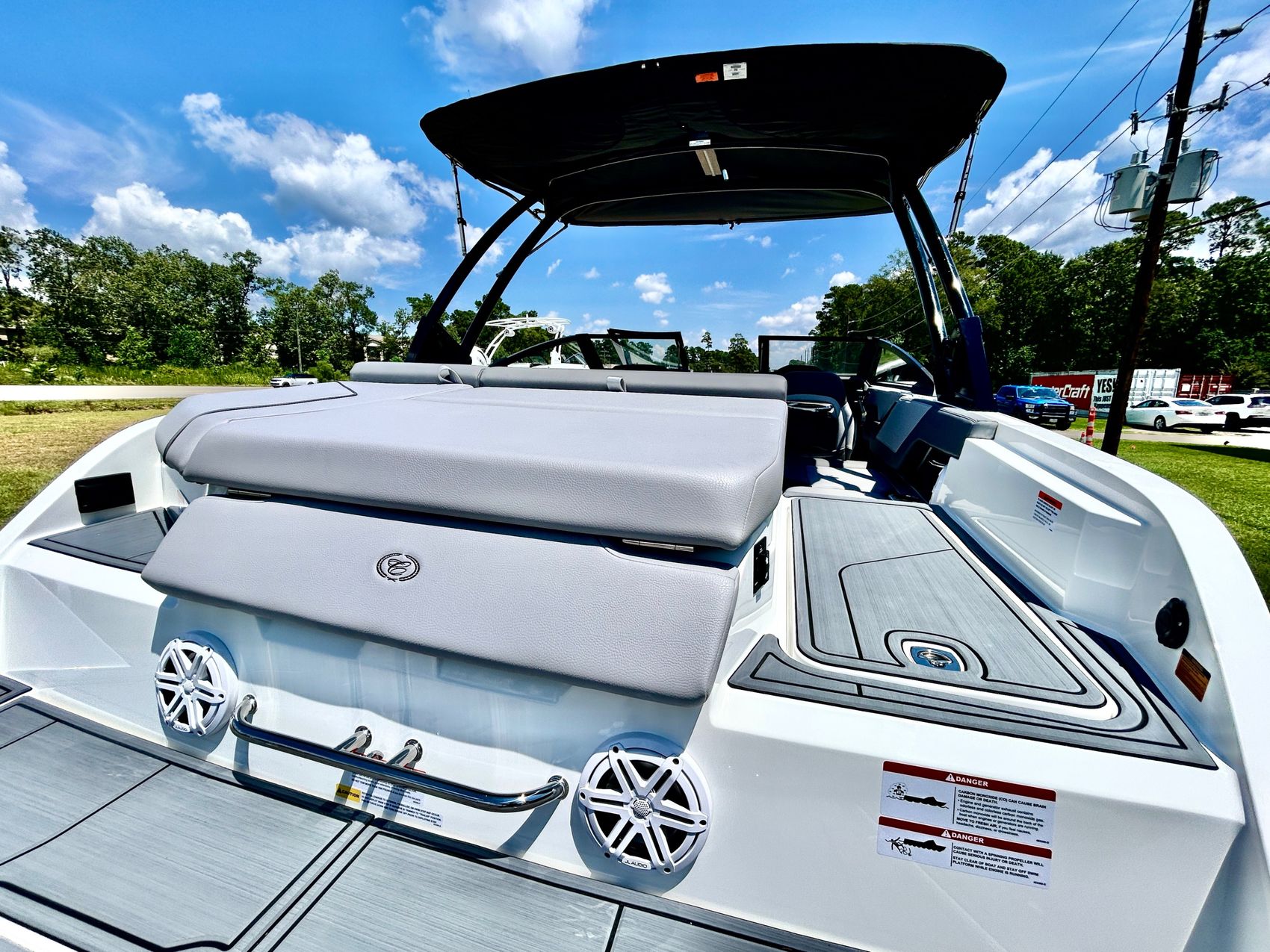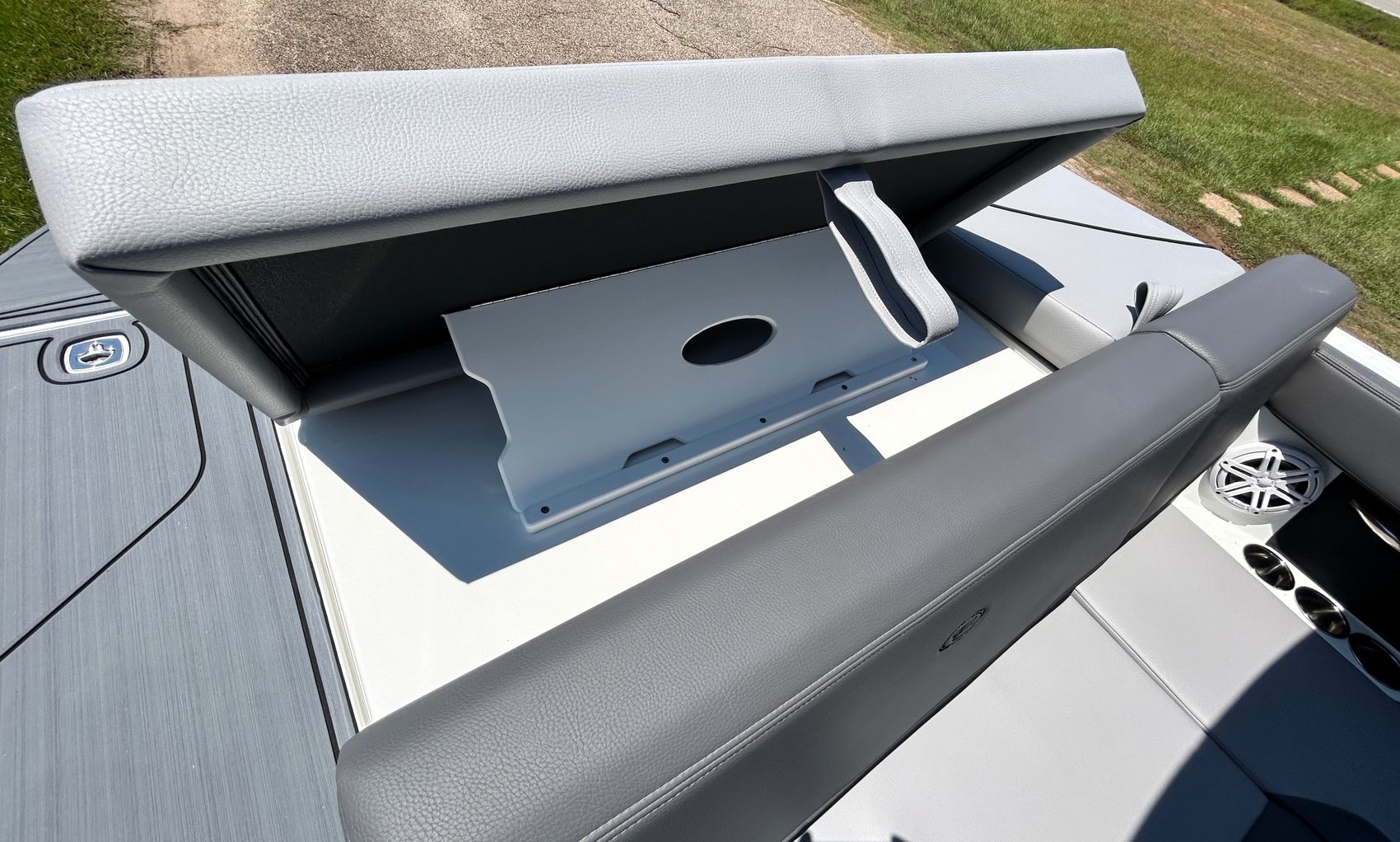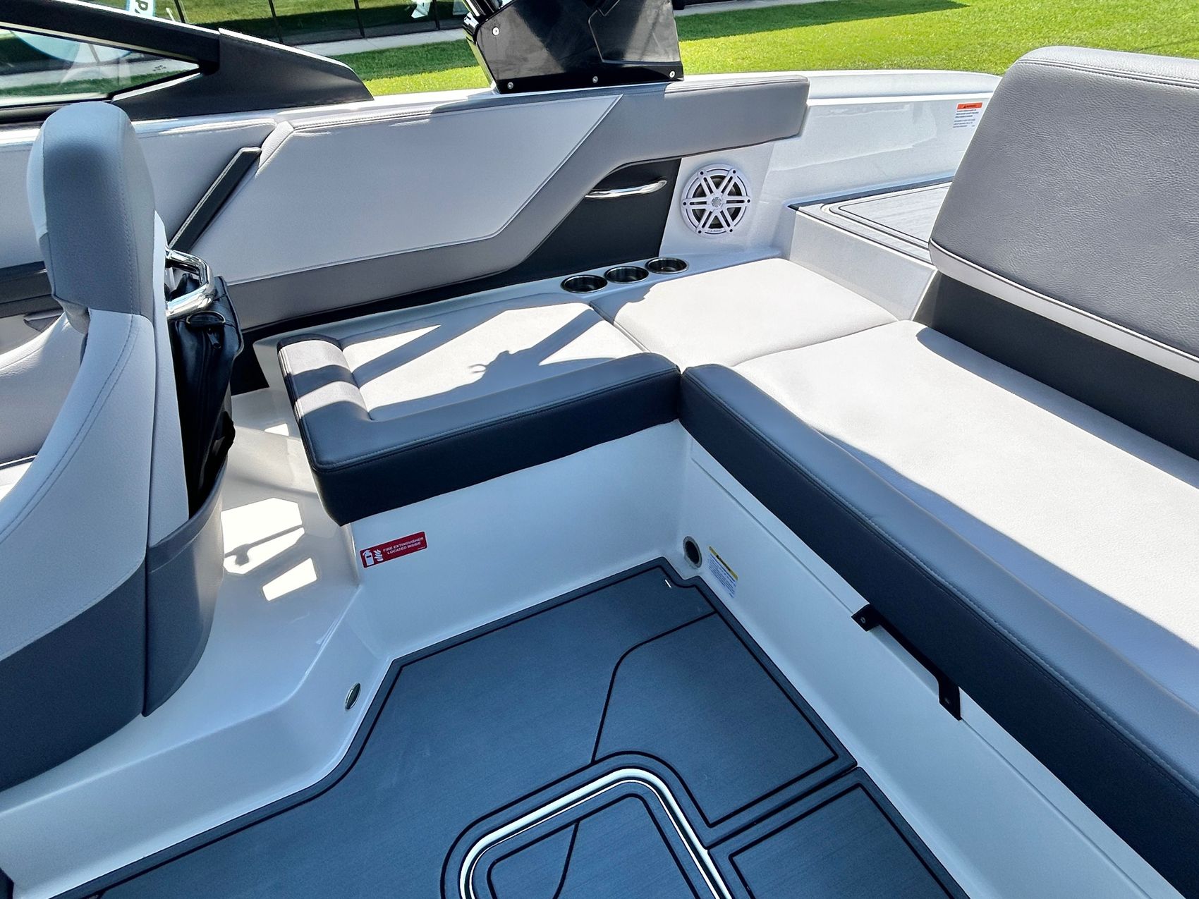 Added Features: SOF-TRAC Mat Flooring (Grey/Ebony), Fire Extinguisher (STD), Custom Mooring Cover, LED Interior Accent Lighting (R/G/B), Battery Charger and 10/5/3 Year Warranty Protection