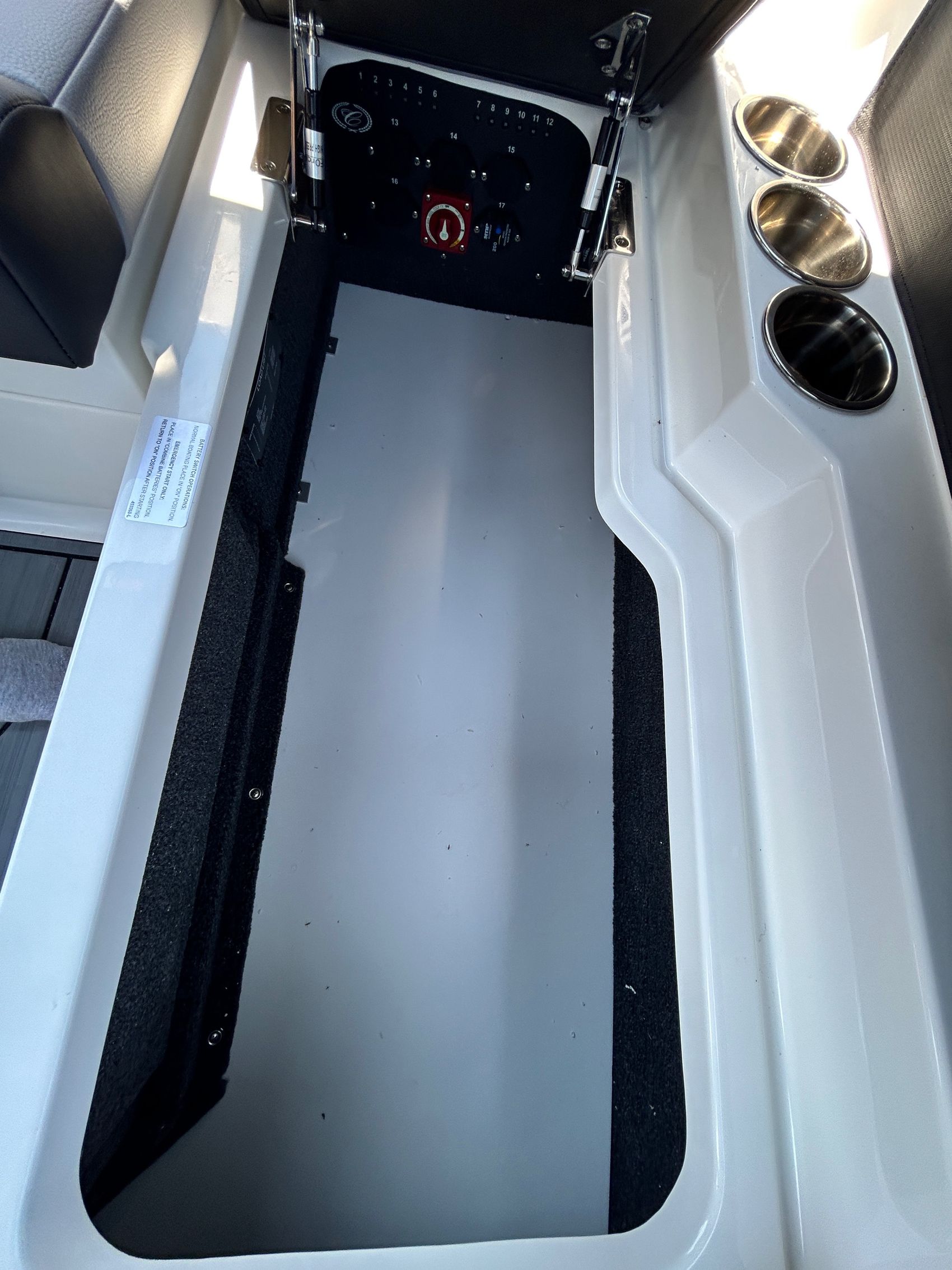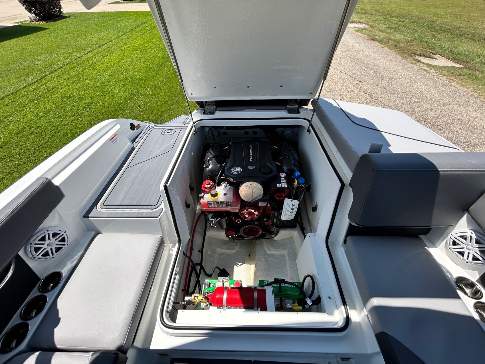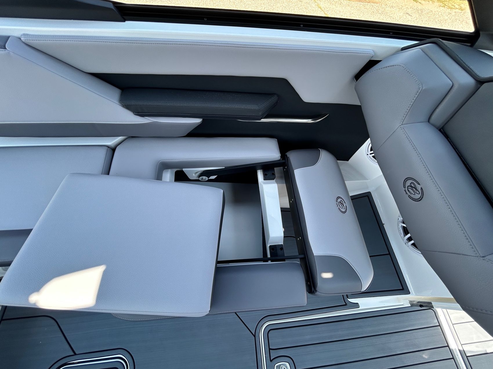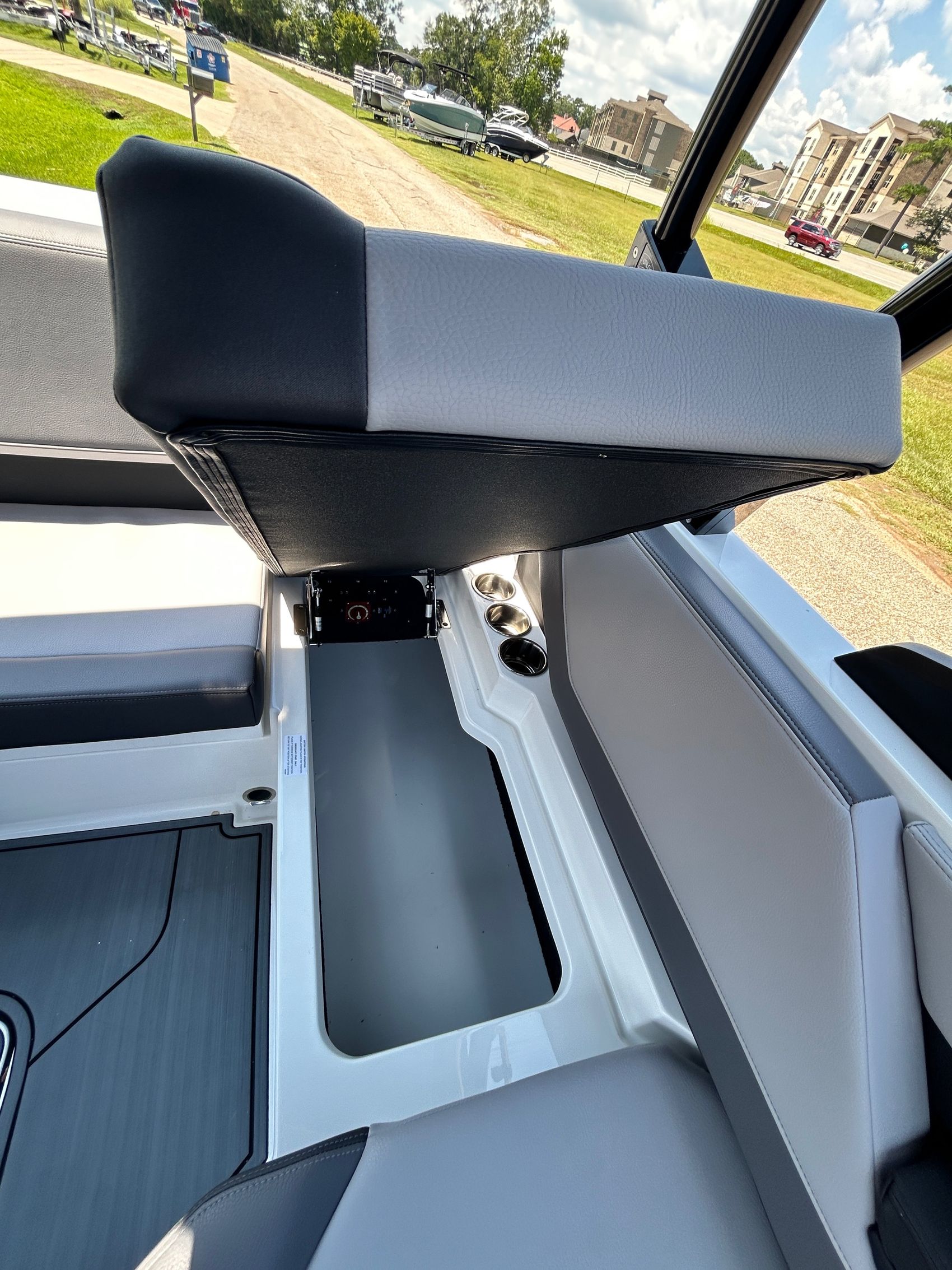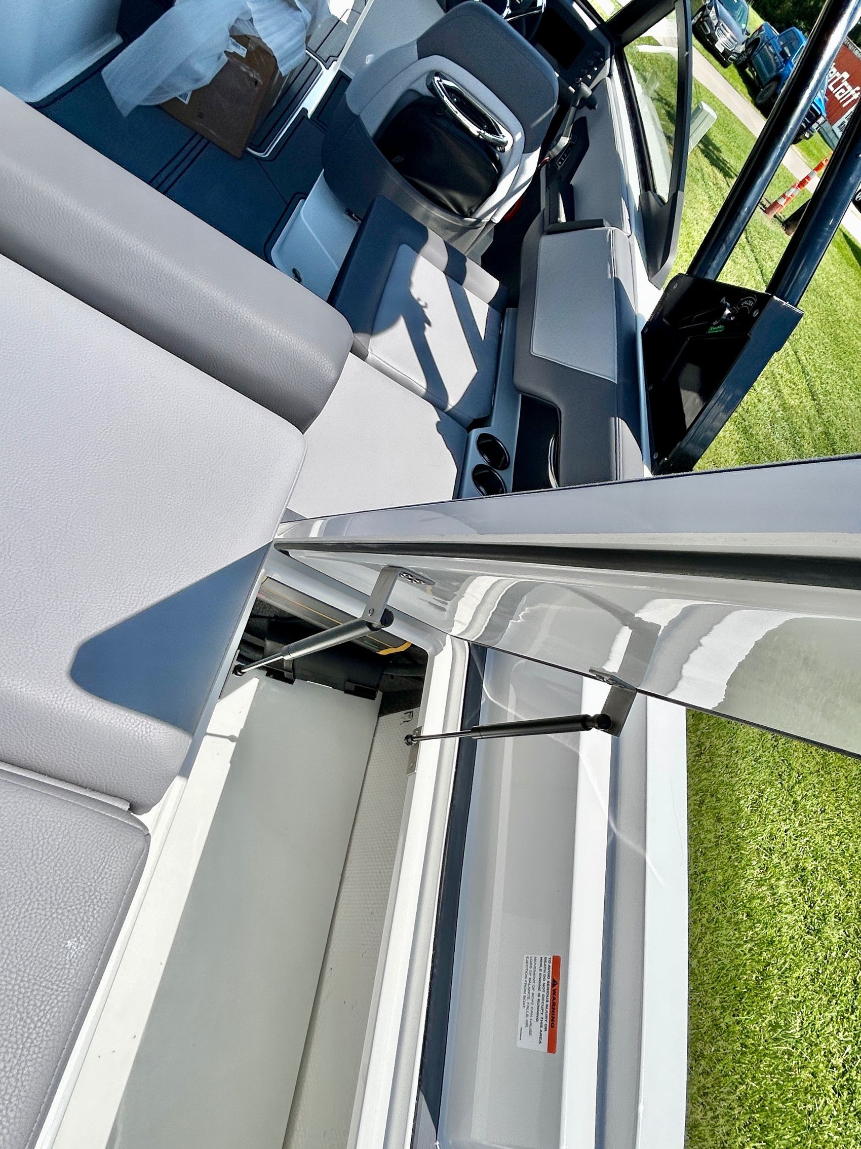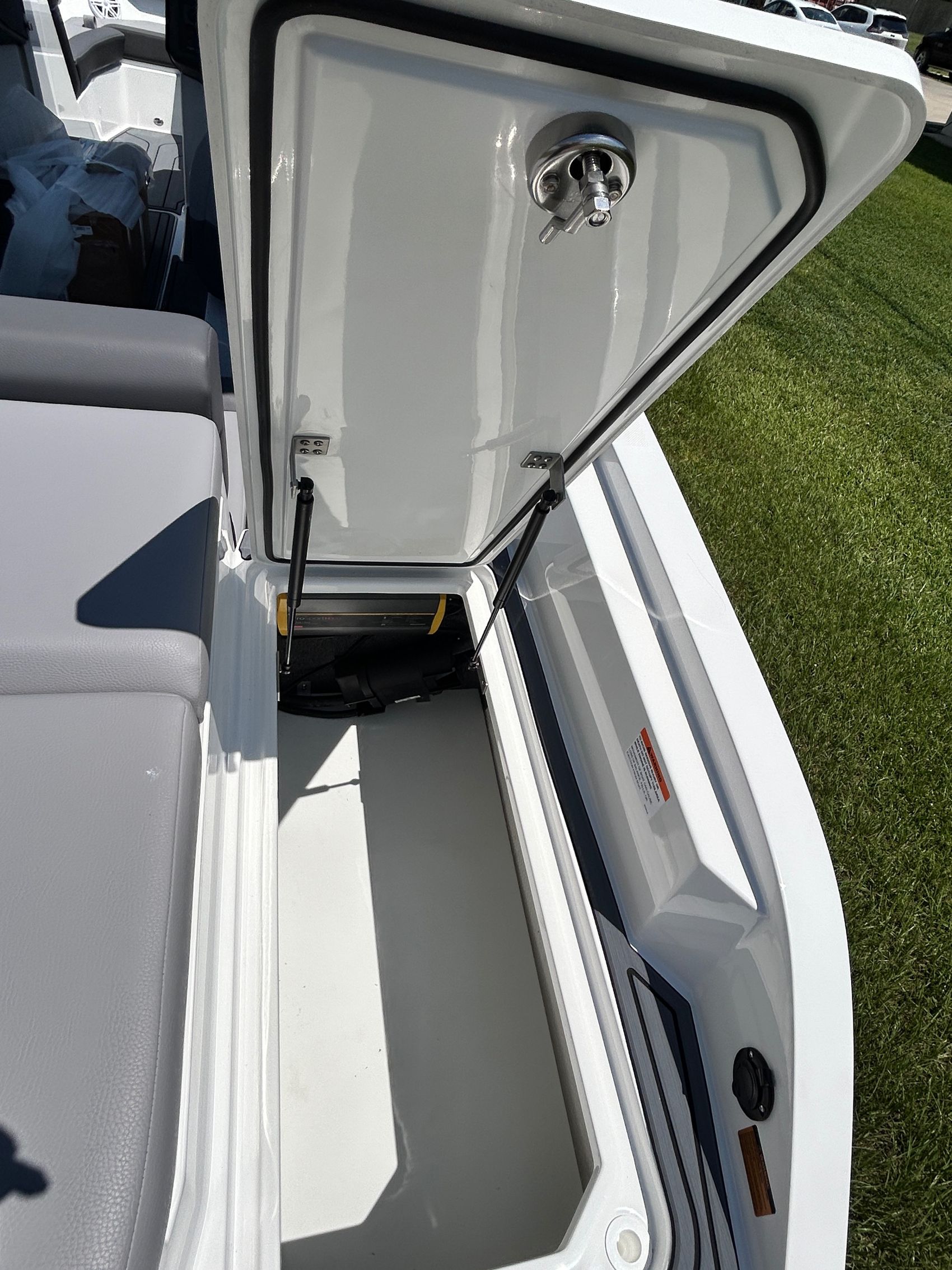 Added Features: SOF-TRAC Mat Flooring (Grey/Ebony), Fire Extinguisher (STD), Custom Mooring Cover, LED Interior Accent Lighting (R/G/B), Battery Charger and 10/5/3 Year Warranty Protection