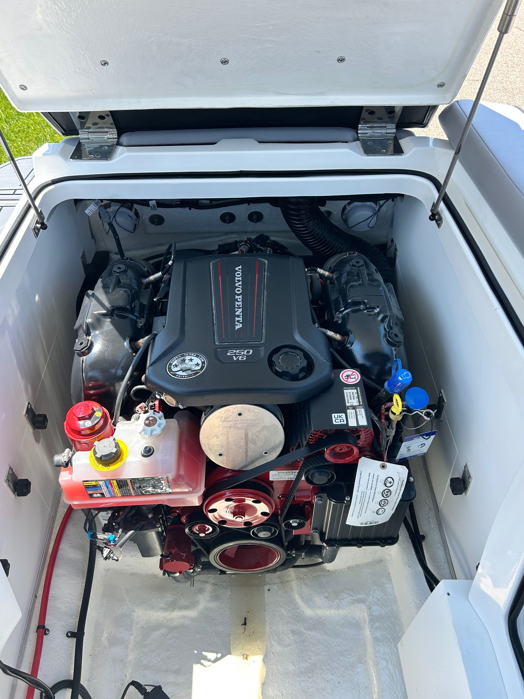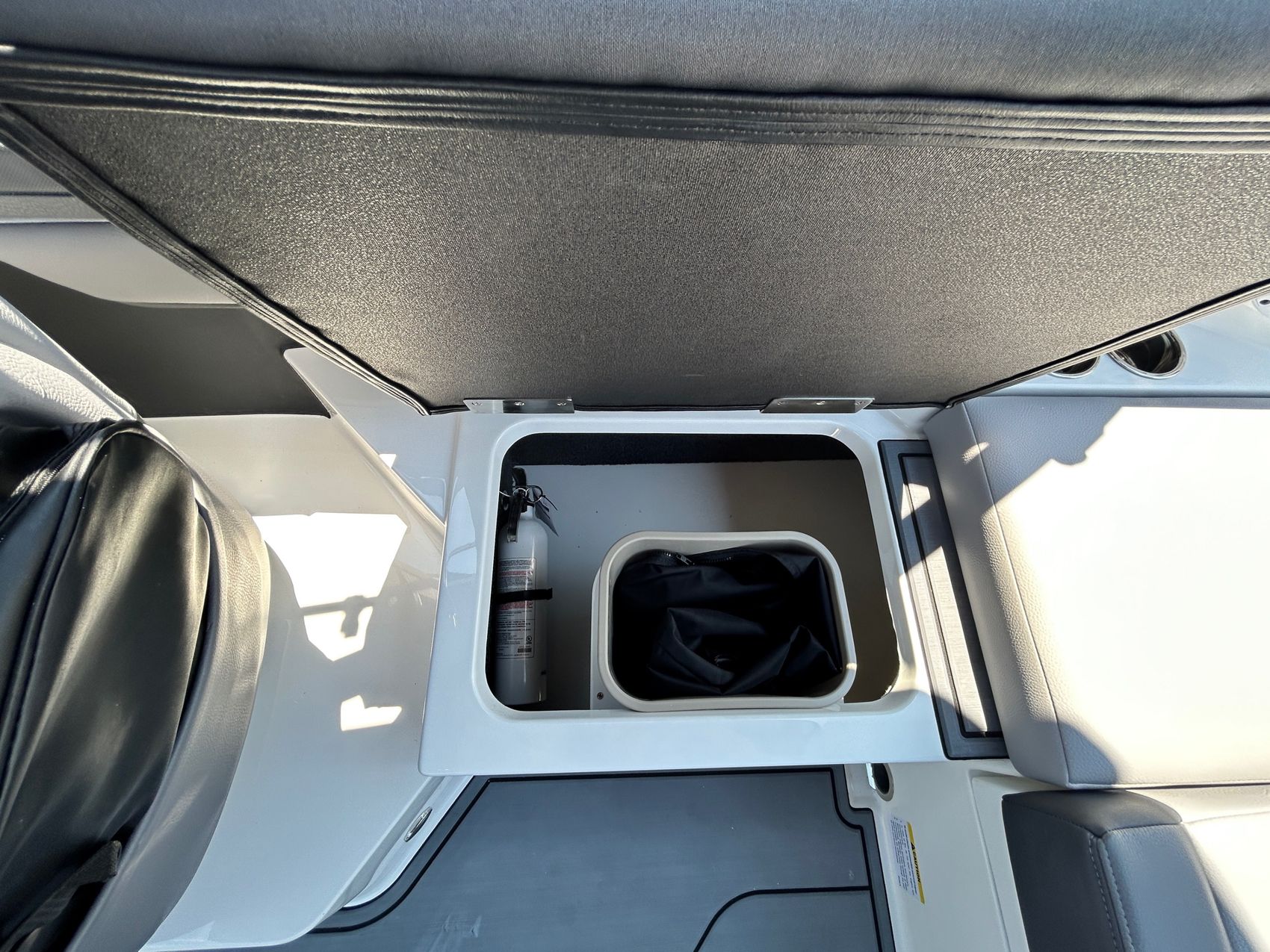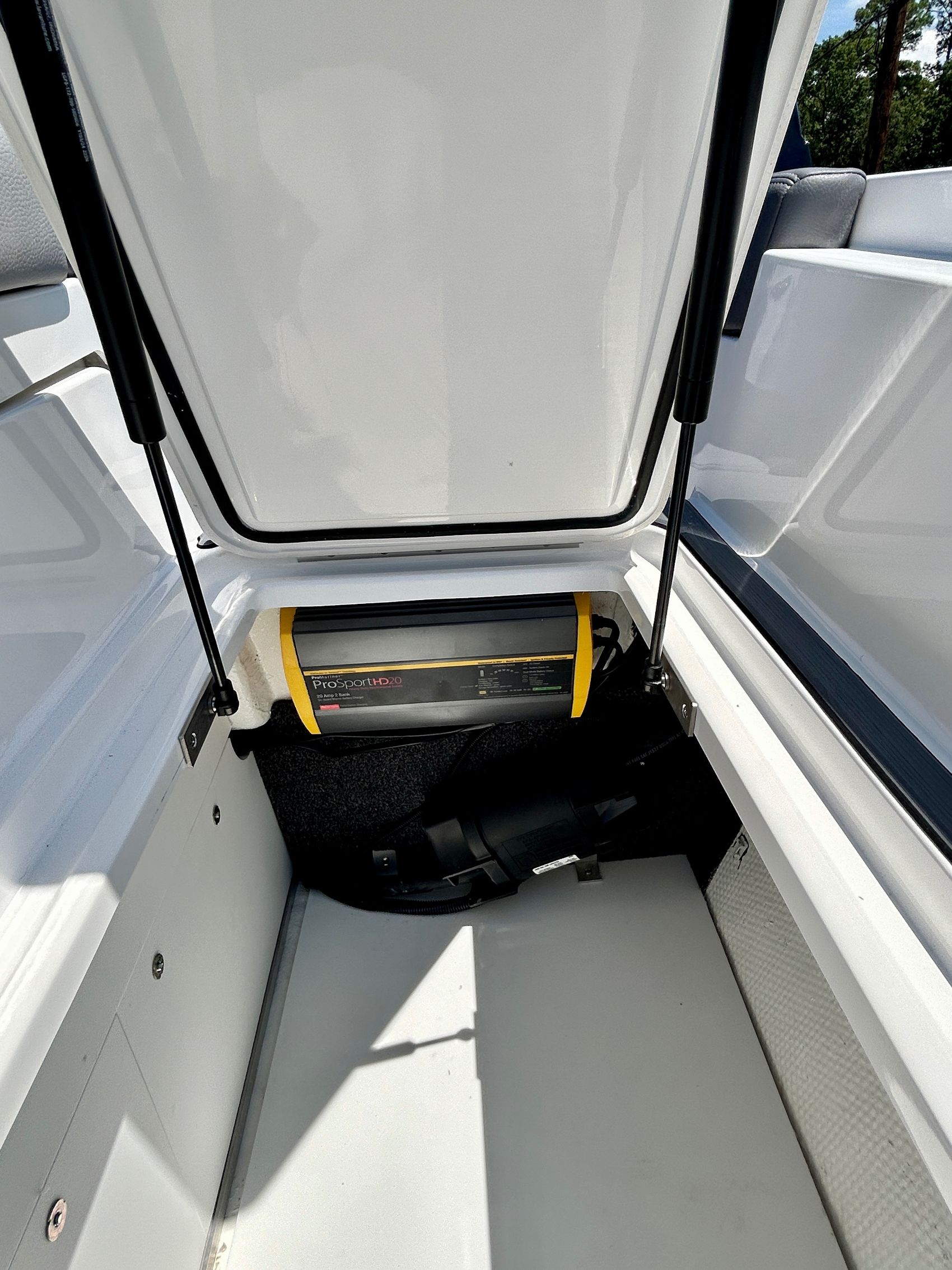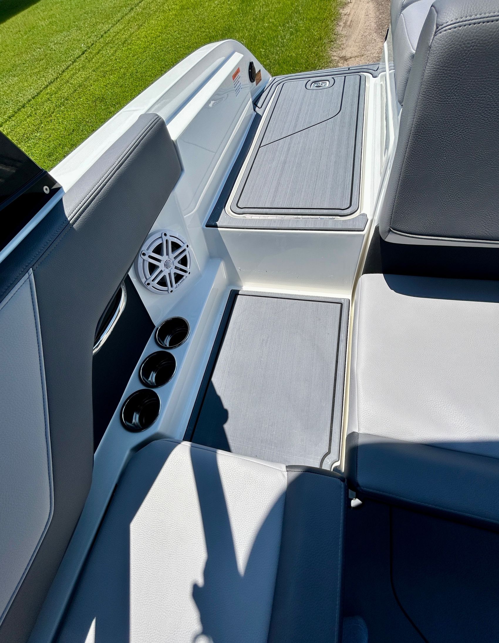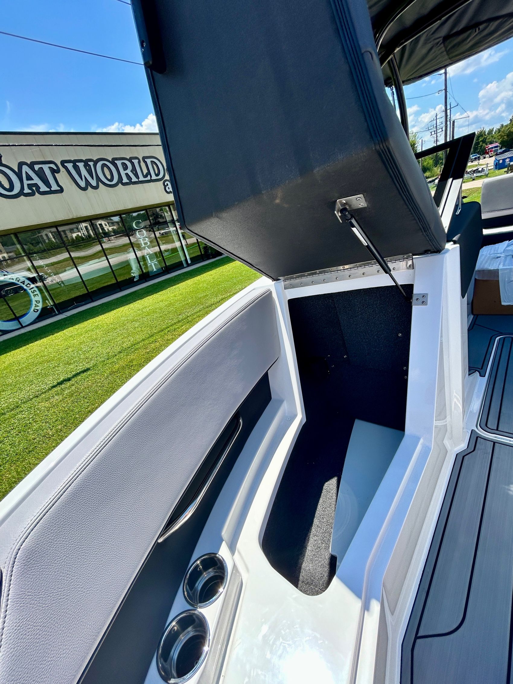Added Features: SOF-TRAC Mat Flooring (Grey/Ebony), Fire Extinguisher (STD), Custom Mooring Cover, LED Interior Accent Lighting (R/G/B), Battery Charger and 10/5/3 Year Warranty Protection