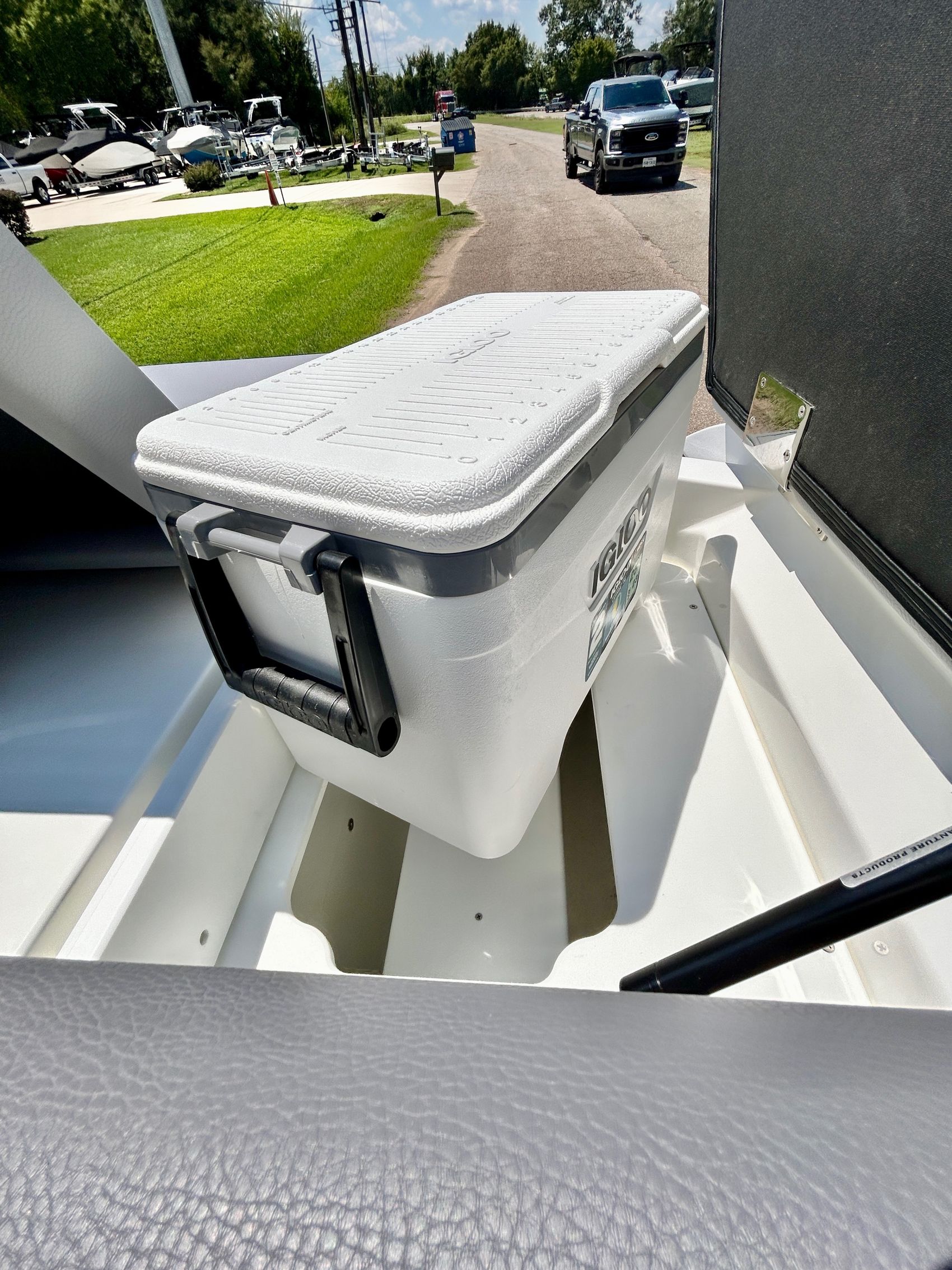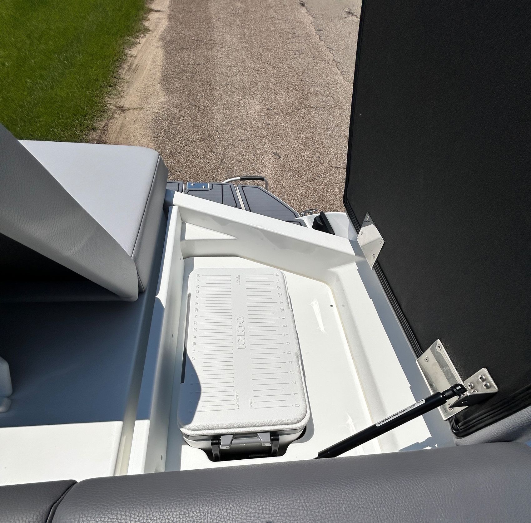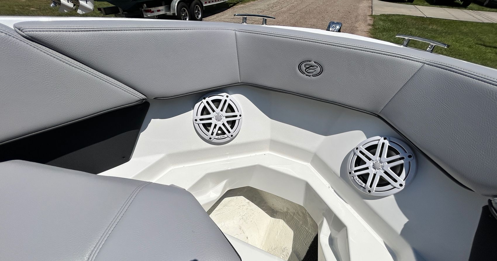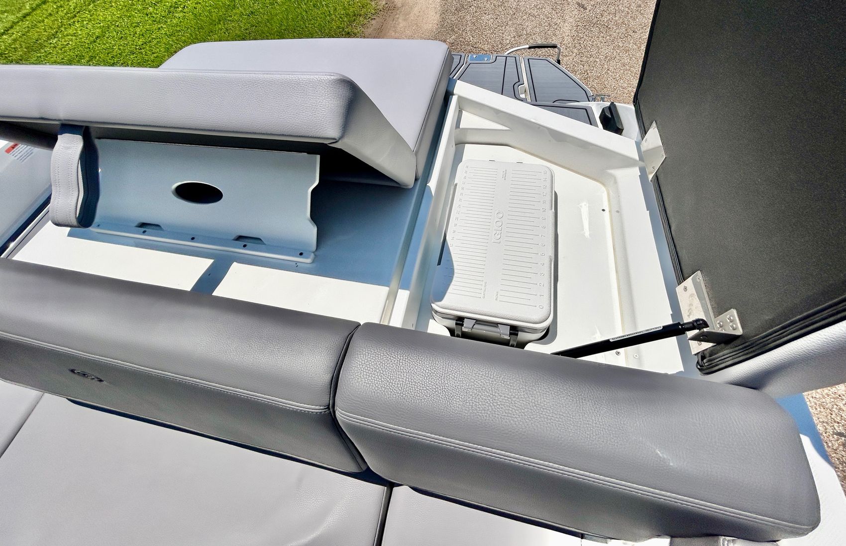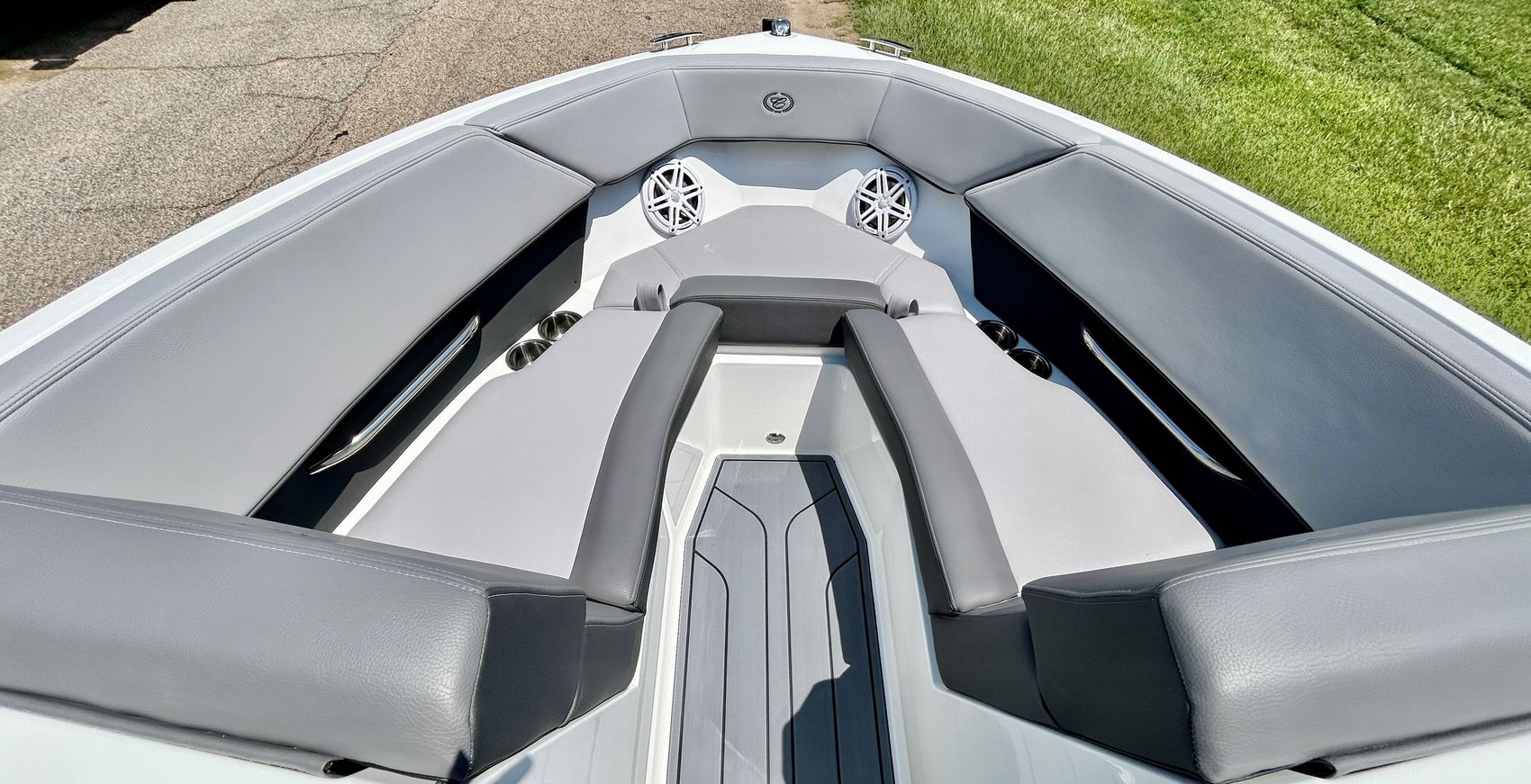Added Features: SOF-TRAC Mat Flooring (Grey/Ebony), Fire Extinguisher (STD), Custom Mooring Cover, LED Interior Accent Lighting (R/G/B), Battery Charger and 10/5/3 Year Warranty Protection
