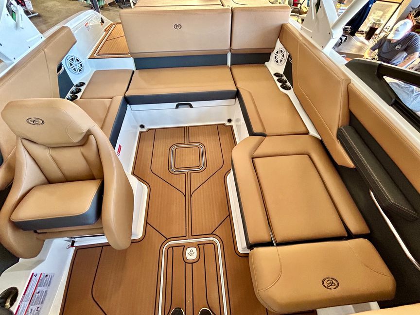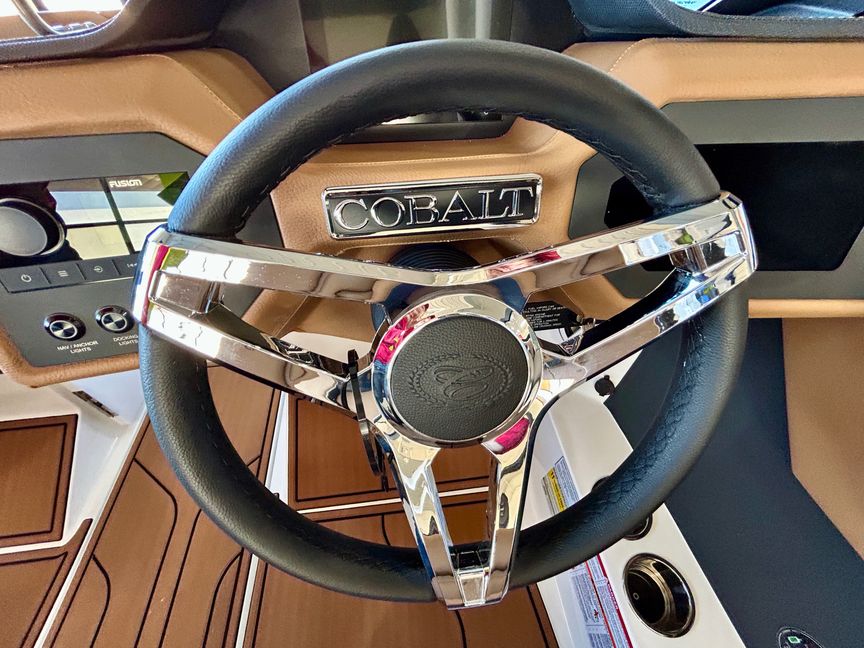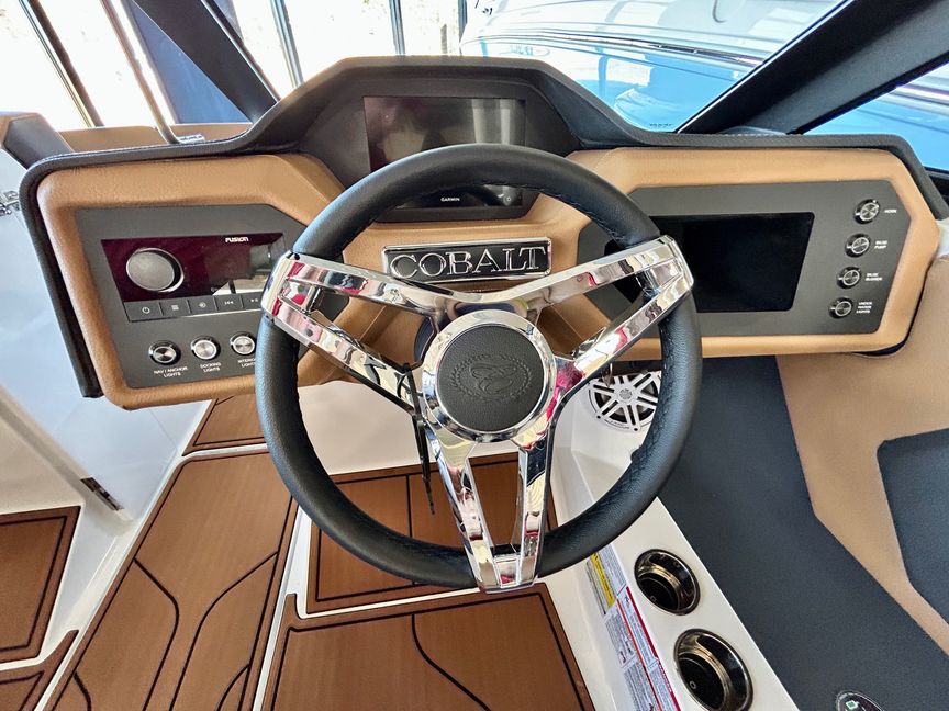 This is a true showcase of the NEW Cobalt Boats design—classic heritage blended with sleek, modern lines—delivering sporty performance, undeniable luxury that turns heads wherever it goes on the water.