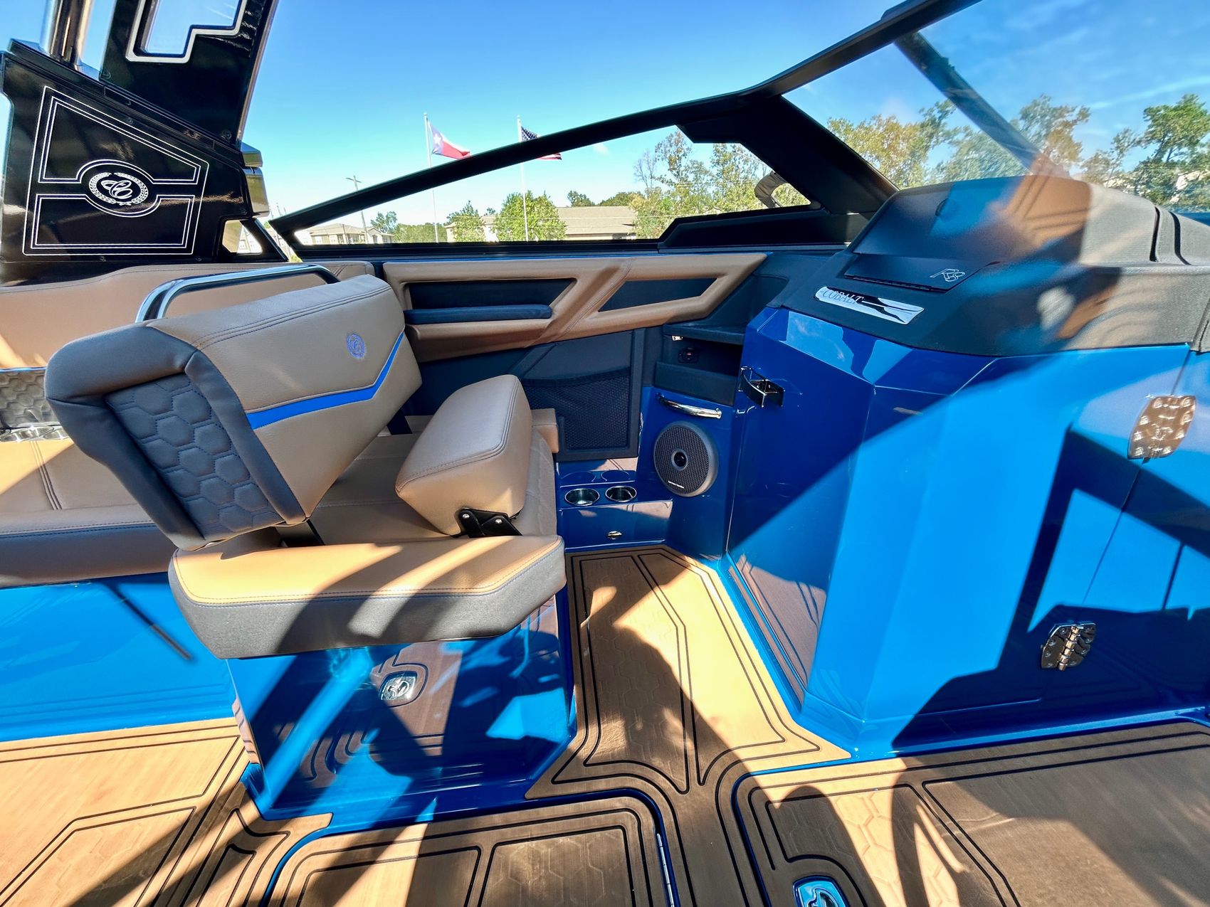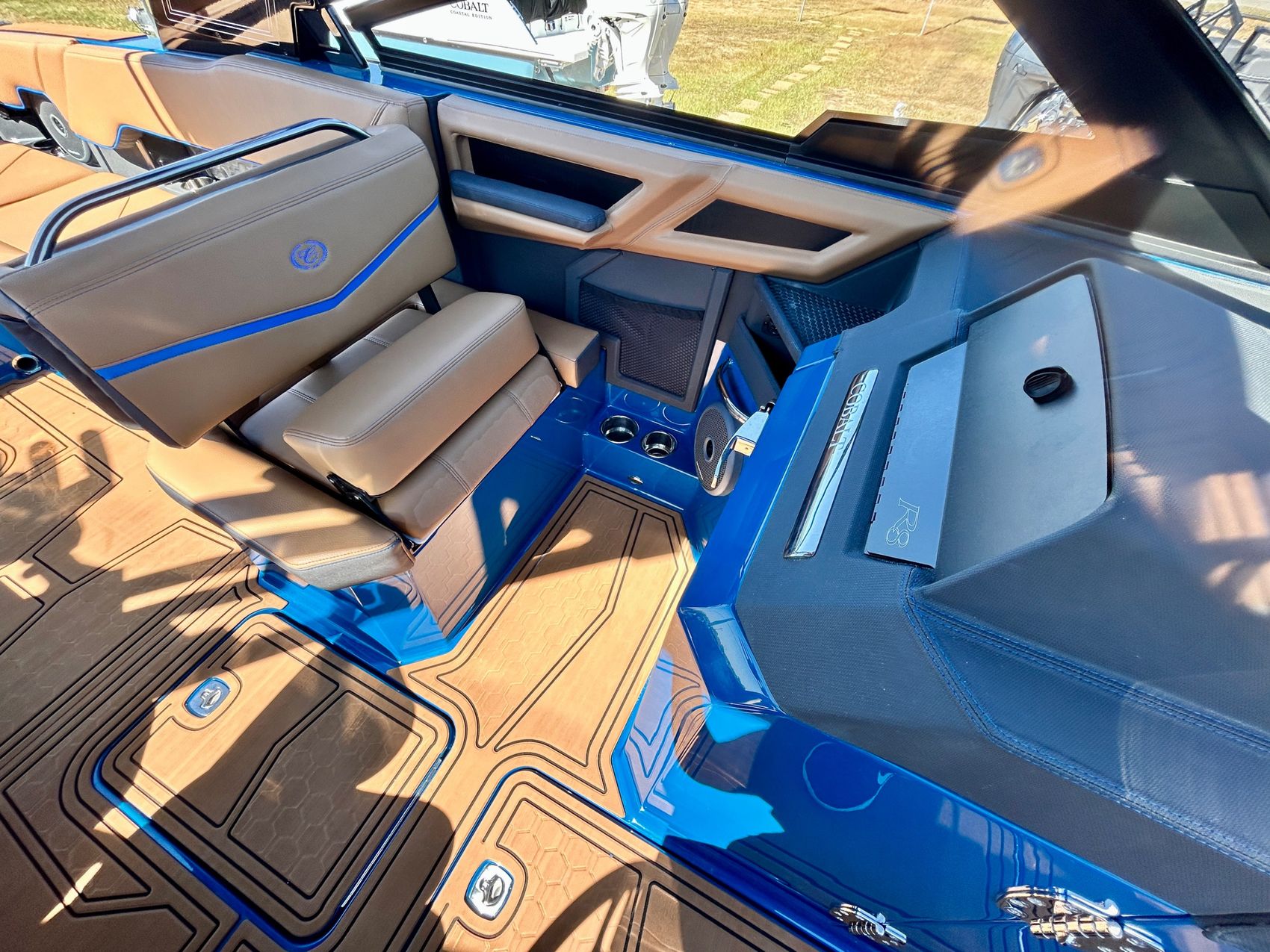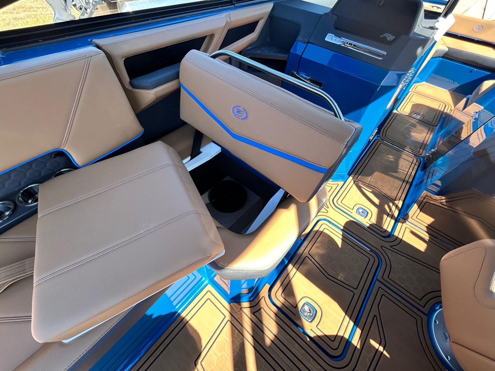 Step aboard the 2026 Cobalt Boat R8 SURF, a masterfully designed and crafted boat that redefines luxury and performance. This boat not only provides a smooth, comfortable ride but is also equipped with state-of-the-art surfing features, setting a new standard in the boating industry. A classic, eye-catching full pacific blue interior fiberglass / gelcoat upgrade, takes this boat to the next level of luxury!