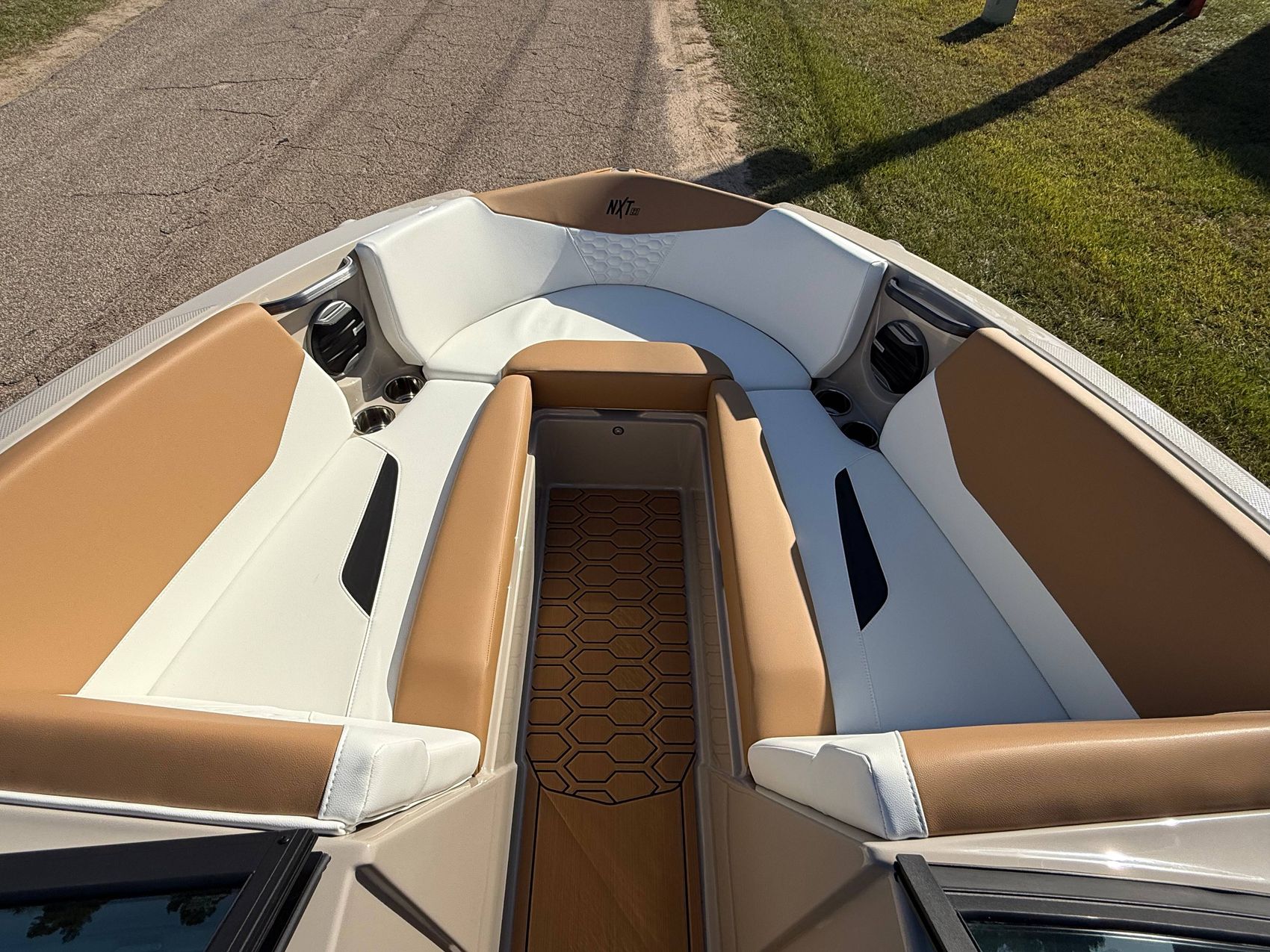 True to MasterCraft's commitment to comfort, the NXT23 is filled with ample seating and luxury features to keep you and your company comfortable during all your aquatic adventures. The spacious layout allows for a smooth flow of movement, ensuring a relaxed experience no matter where you're seated.