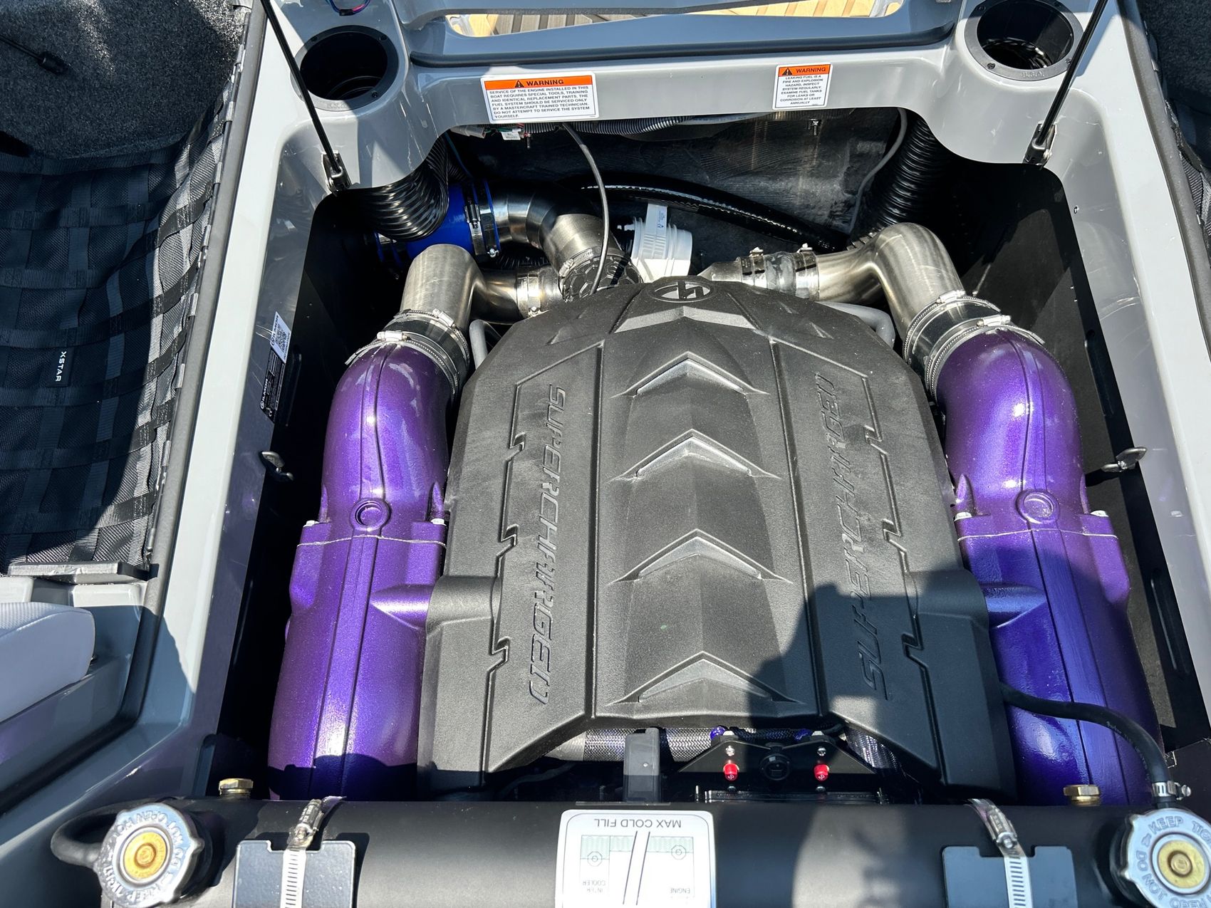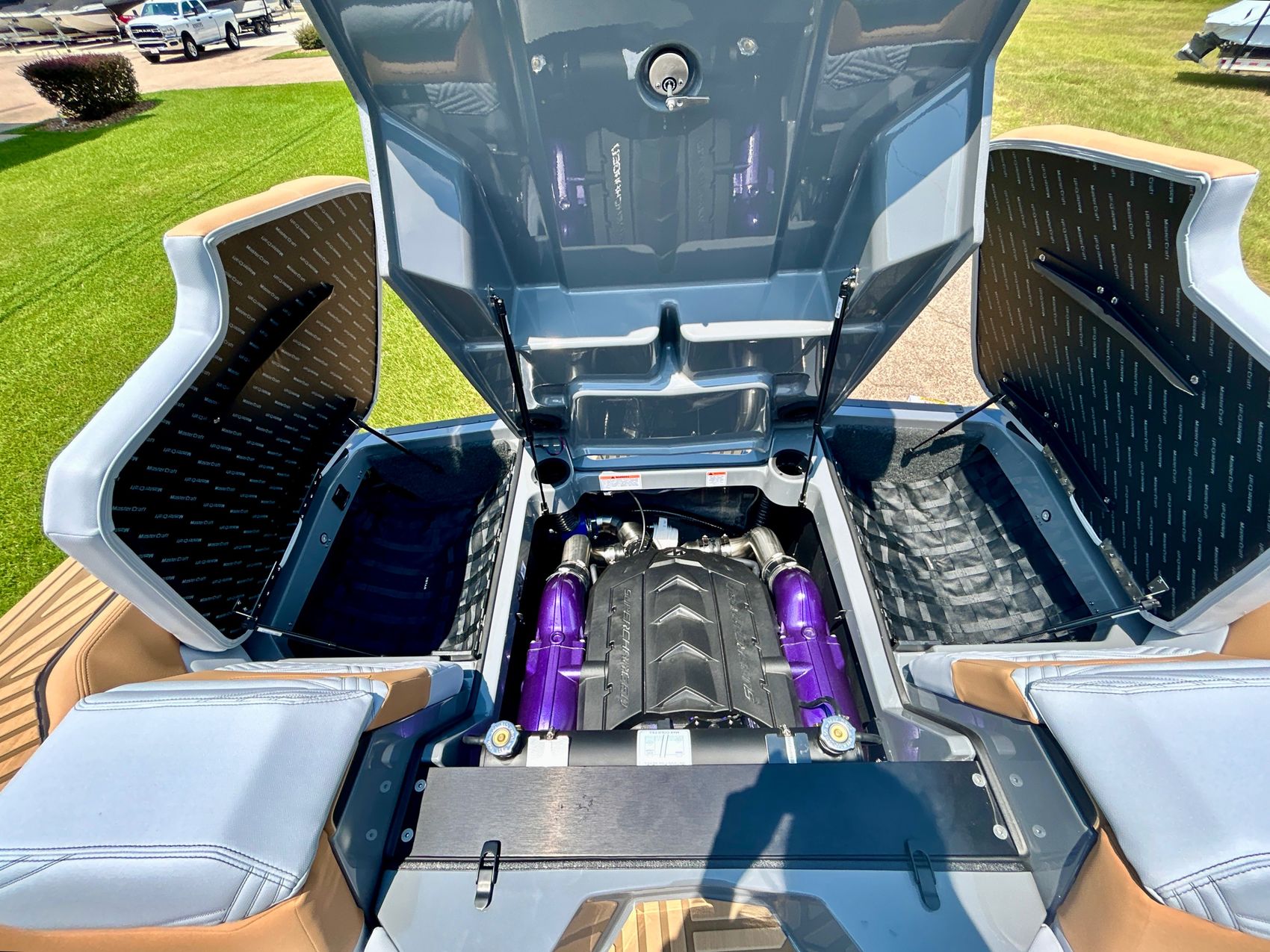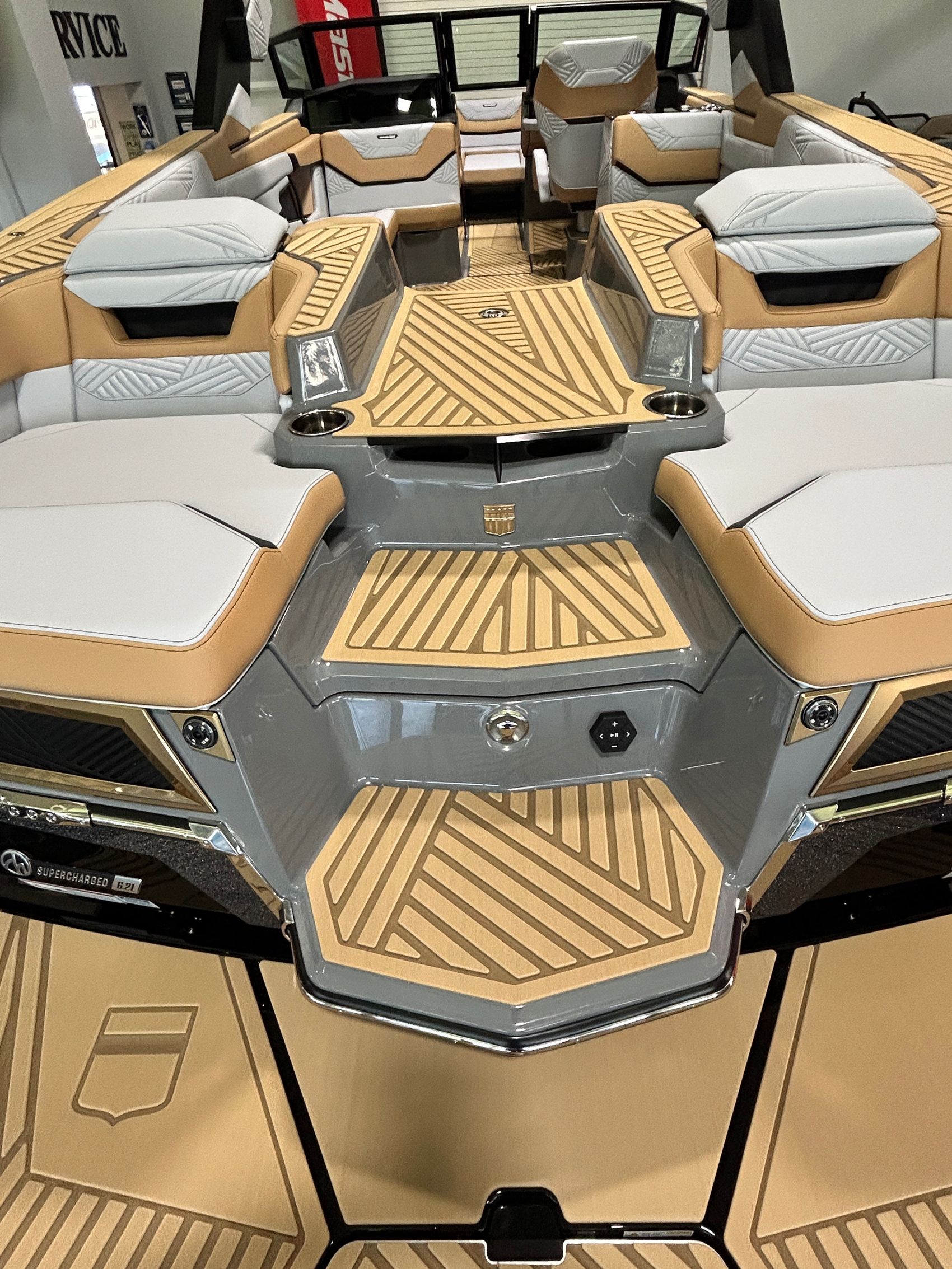 Super charge engine. 630 HP, 665 ft lb Torque, Ballast 4,050 lbs. Unrivaled performance. Groundbreaking industry firsts. This vessel comes packed with state-of-the-art features that enhance functionality and comfort. Not only is it powered by a highly efficient engine that guarantees robust performance, but it's also built using cutting-edge technology that ensures its durability and resilience. Expect an unrivaled boating experience as you manoeuvre through the waters with ease due to the superior handling this model offers.