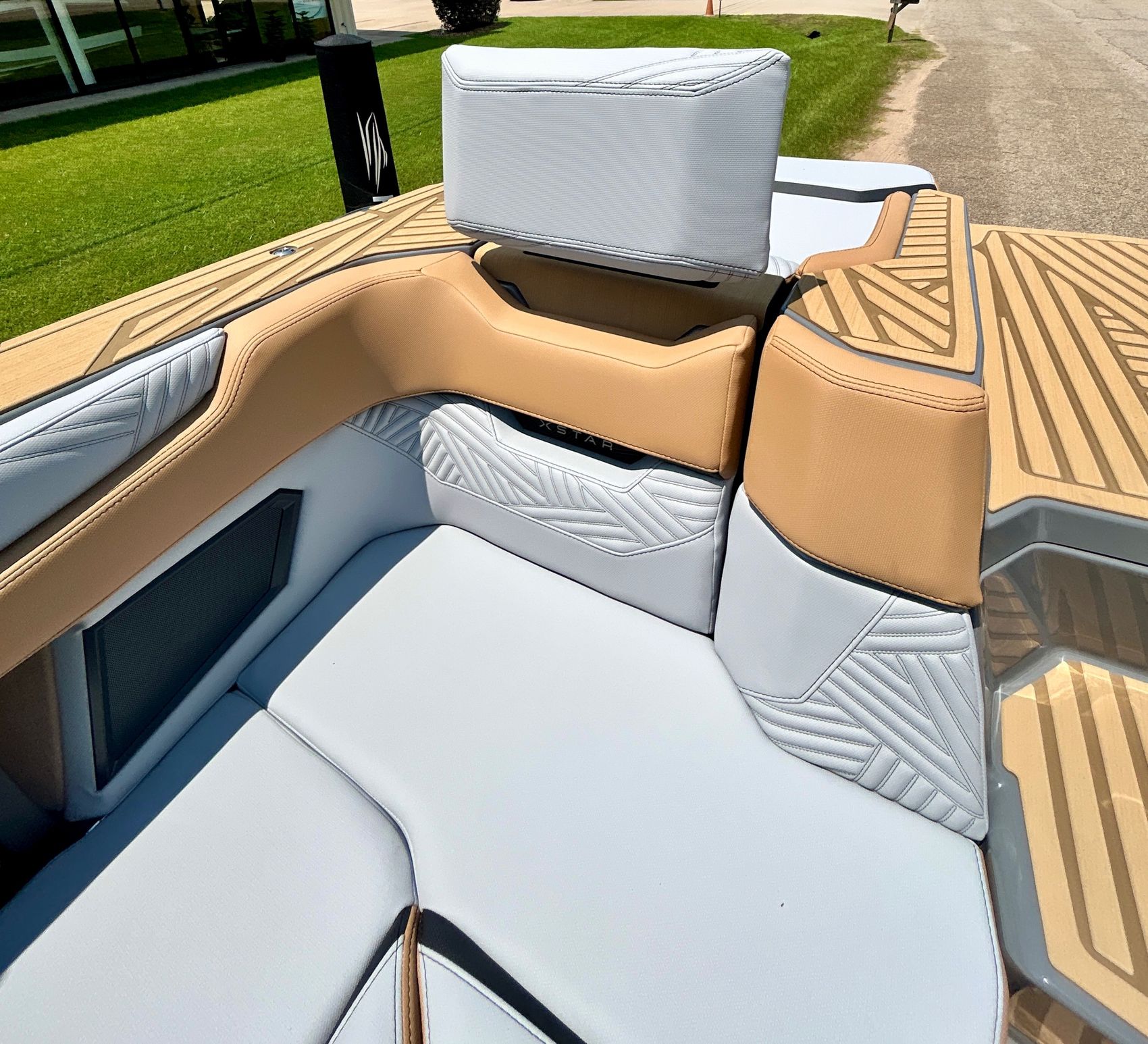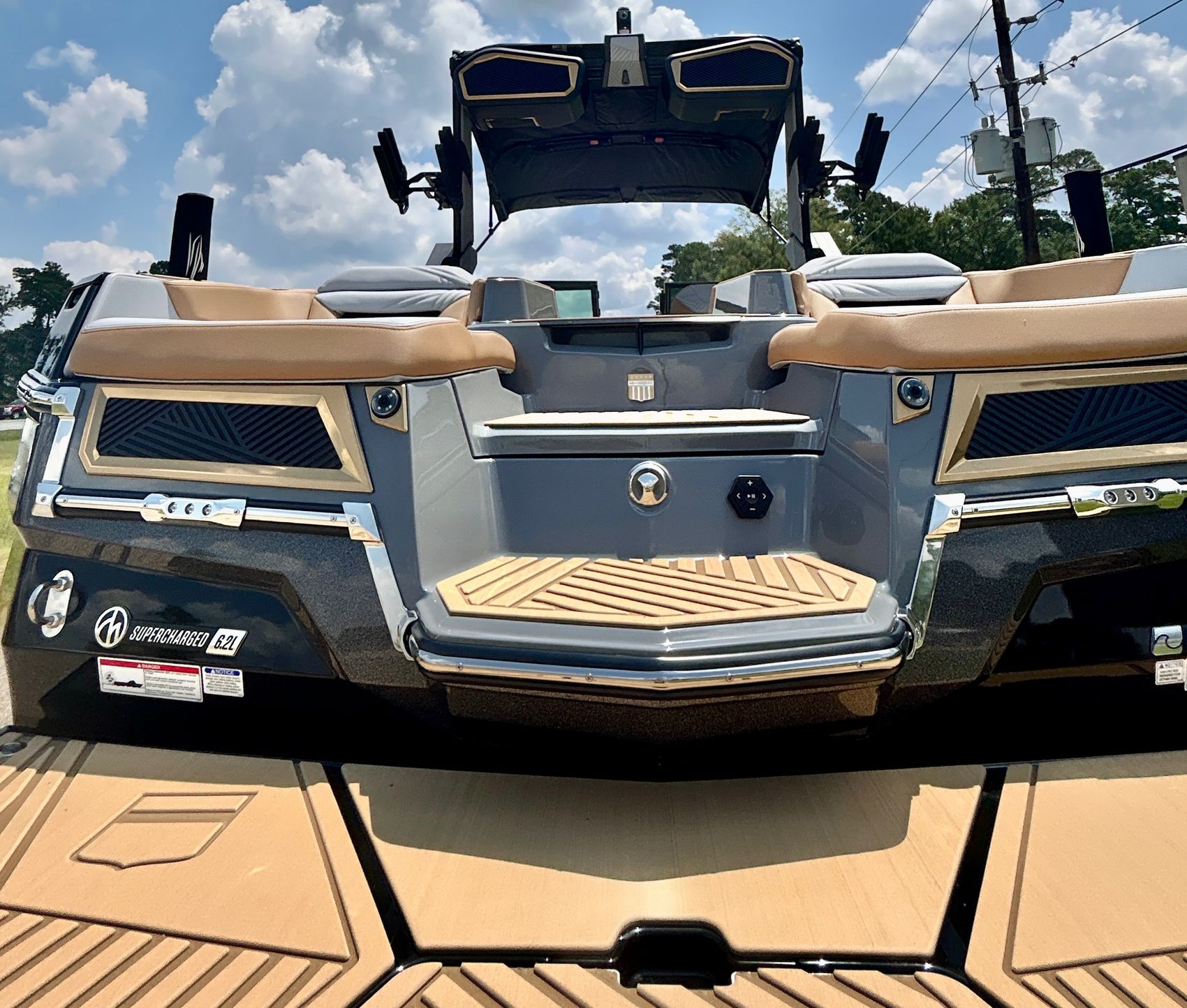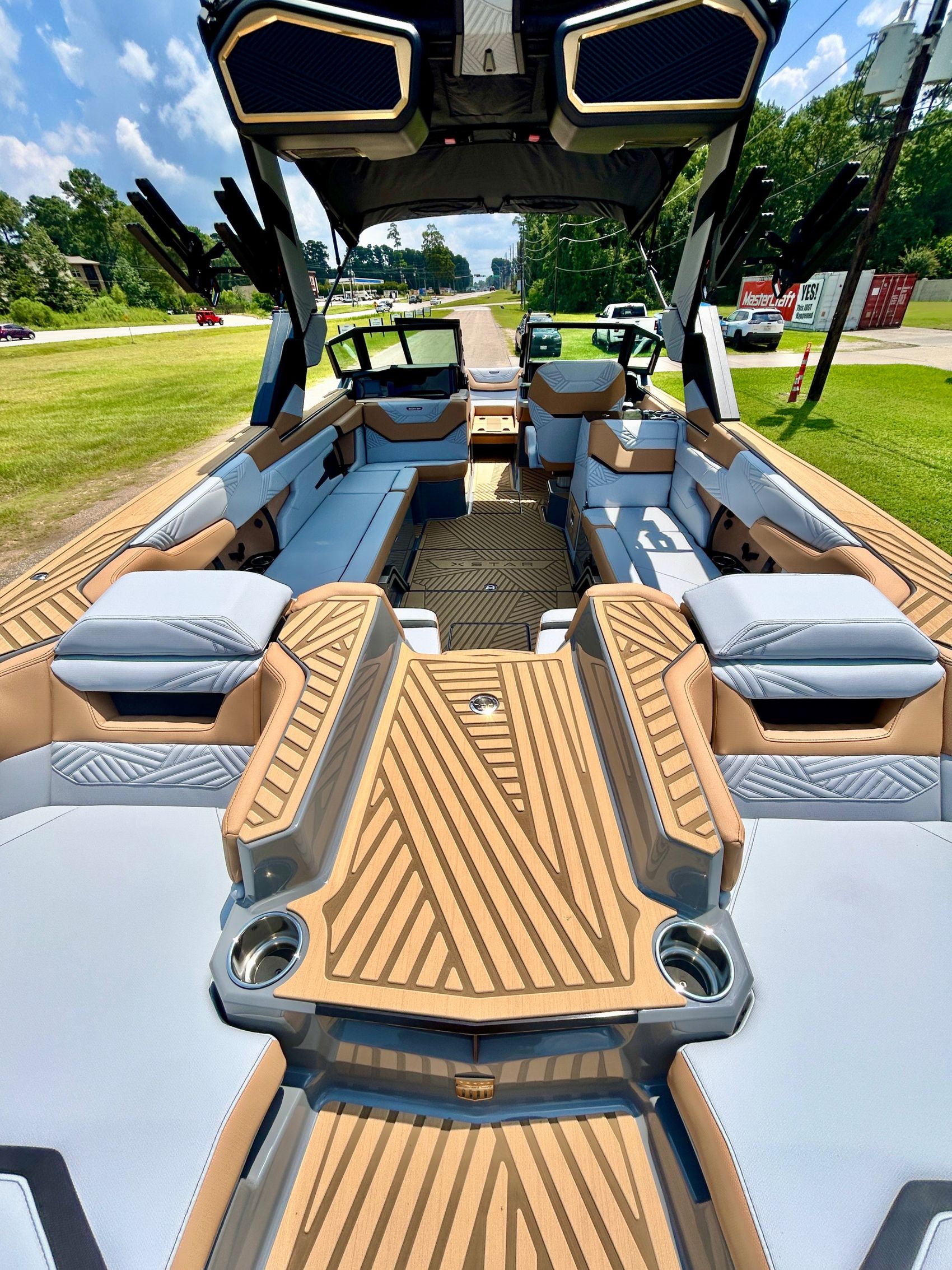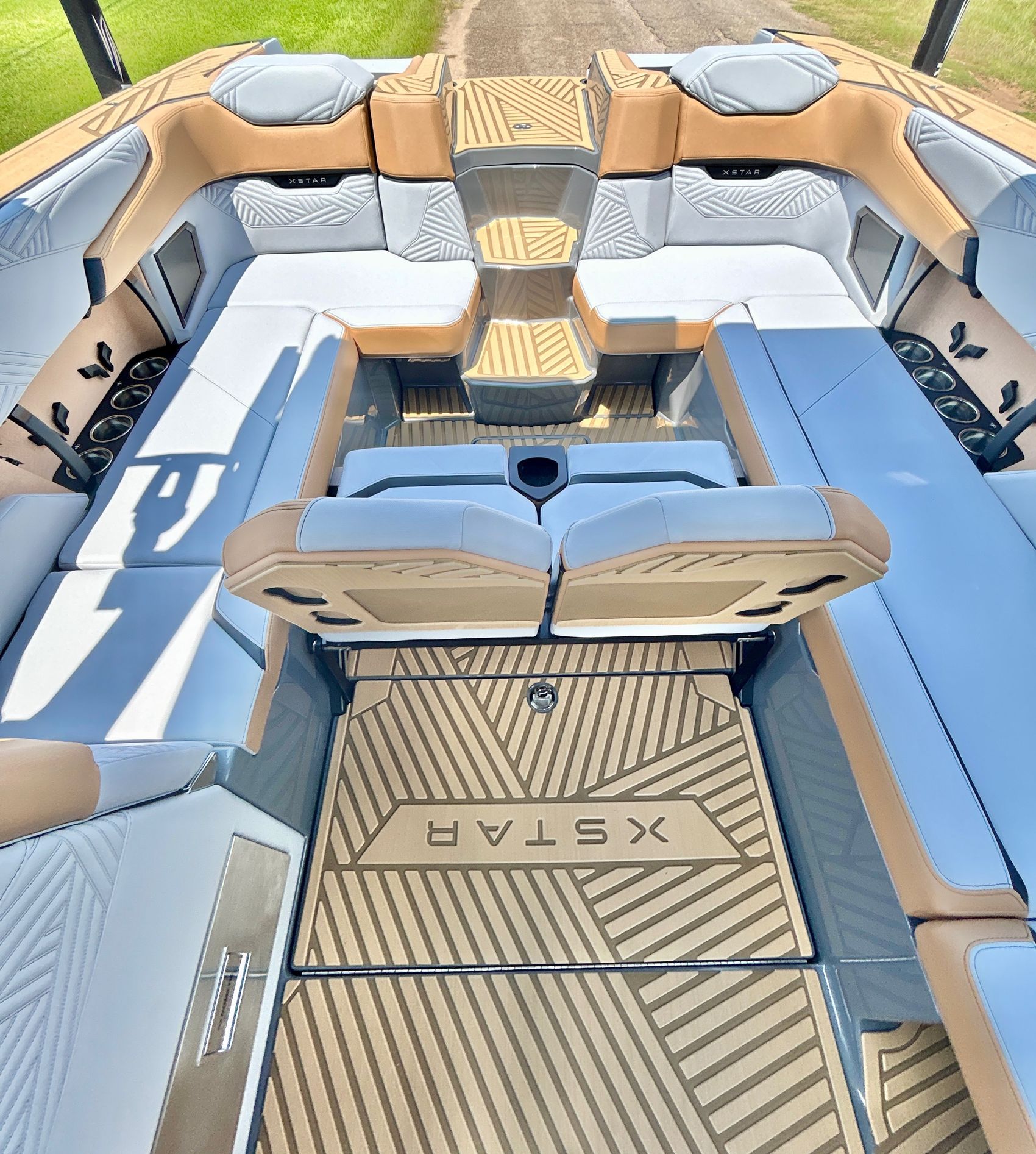 It screams AUDIO, MAX AUDIO, MasterCraft's aft audio experience. First ever full transom sound system delivering premium audio directly to your surfers. In total 6 subwoofers, 10 cockpit speakers, 4 on the tower and 6 transom speakers. That's 26 speakers on your XStar delivering 4,700 watts of pure power. Loud, but studio level clear (7 customizable zones).