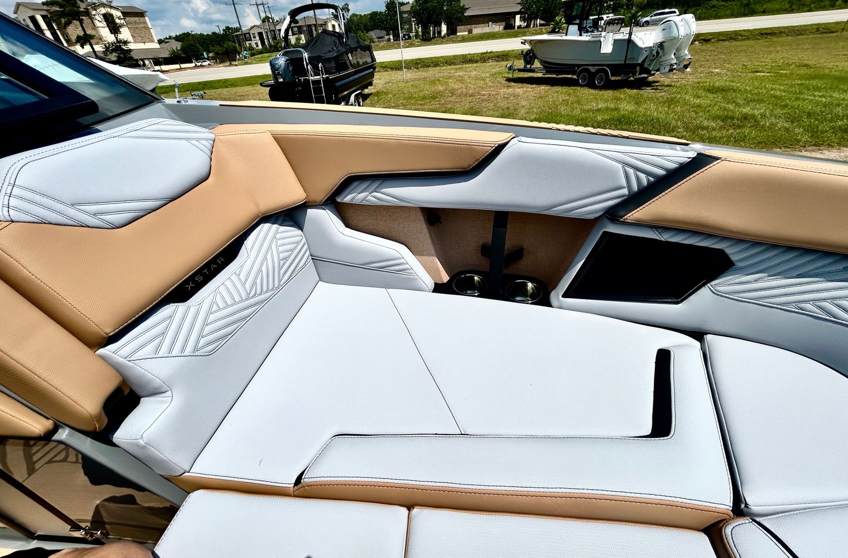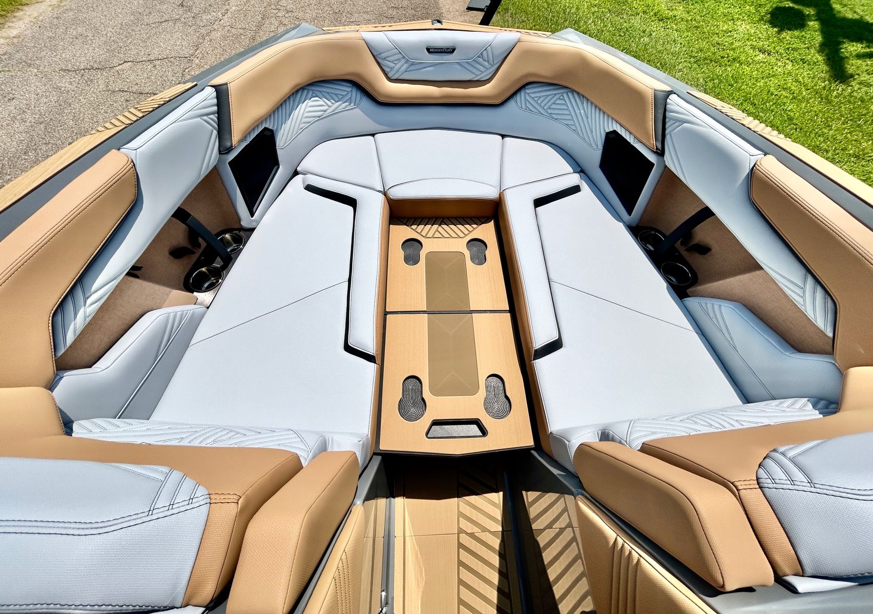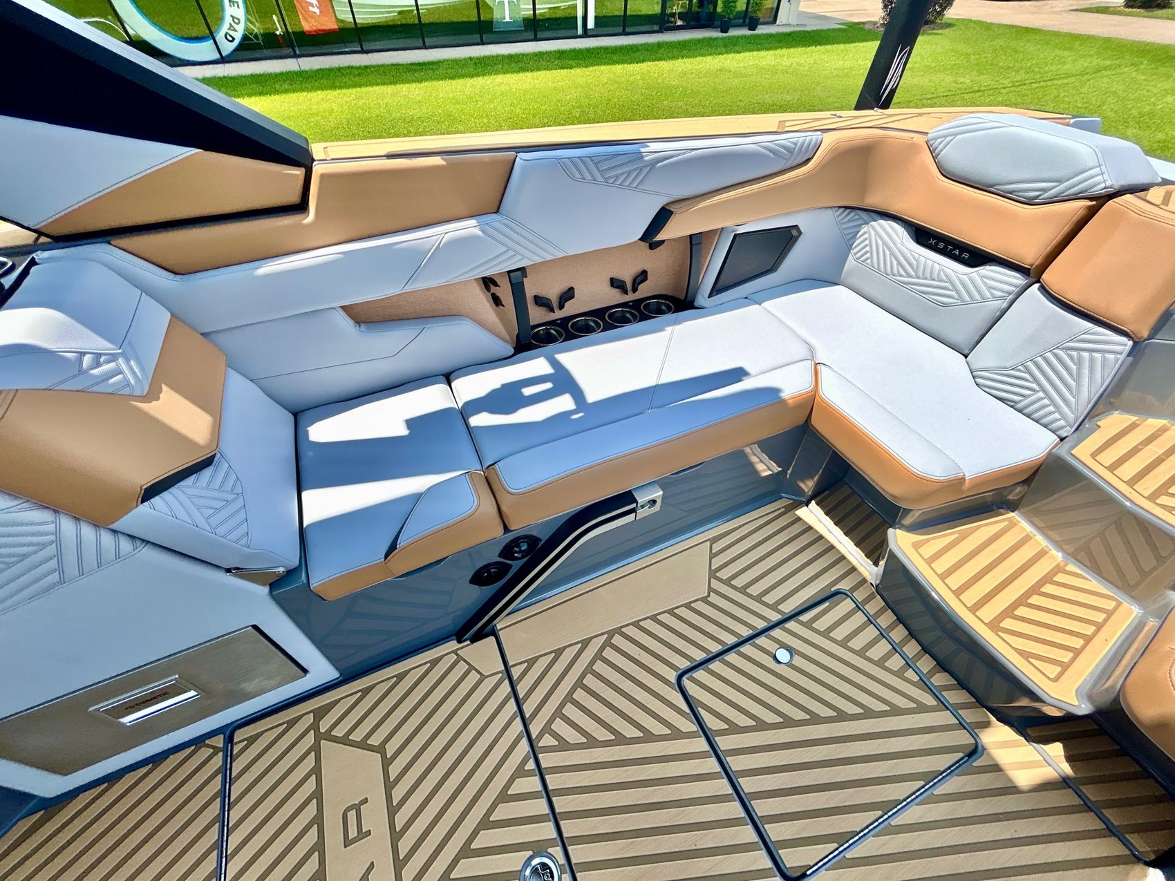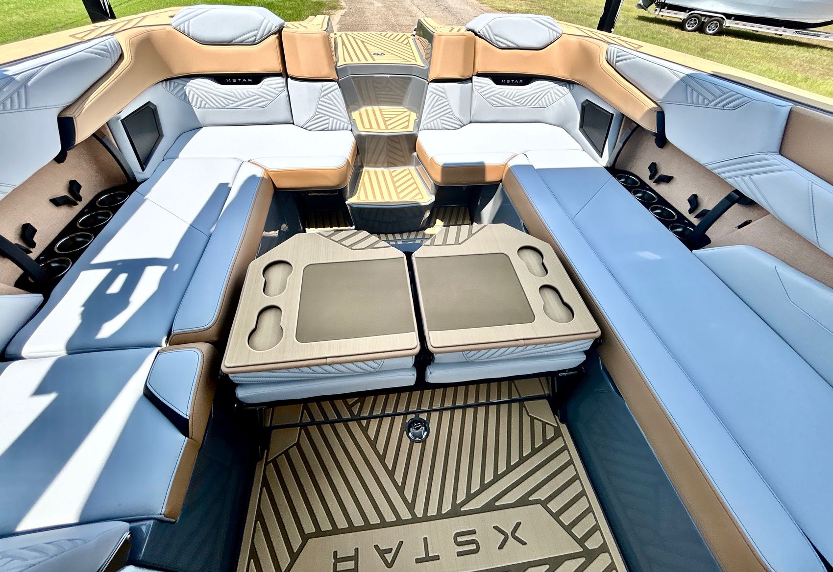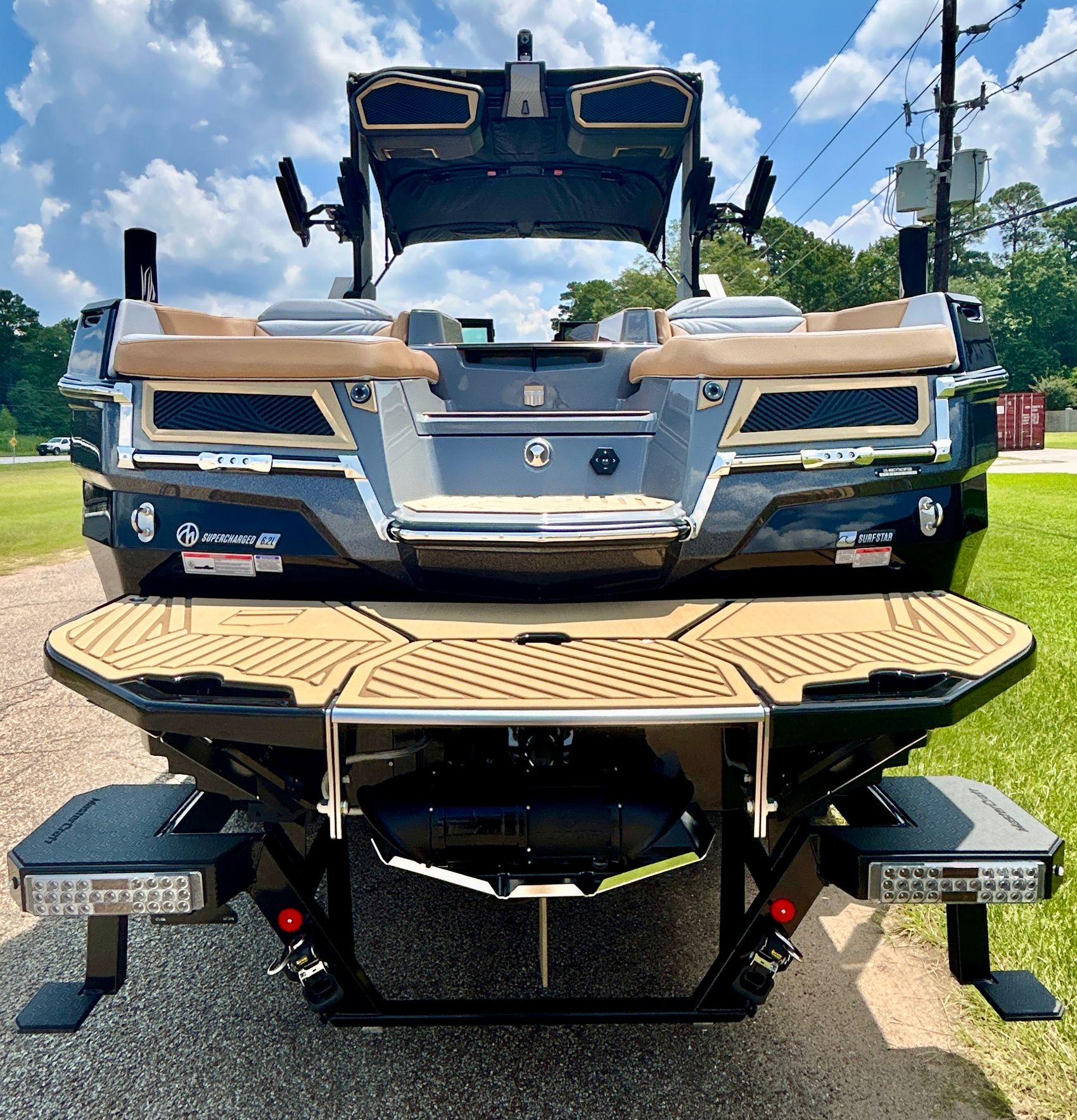 It screams AUDIO, MAX AUDIO, MasterCraft's aft audio experience. First ever full transom sound system delivering premium audio directly to your surfers. In total 6 subwoofers, 10 cockpit speakers, 4 on the tower and 6 transom speakers. That's 26 speakers on your XStar delivering 4,700 watts of pure power. Loud, but studio level clear (7 customizable zones).