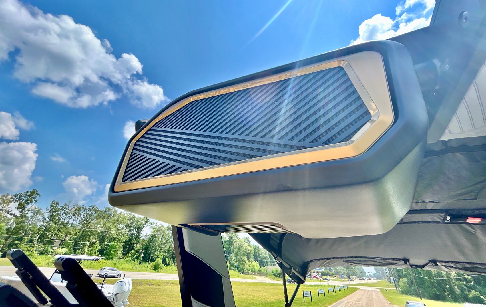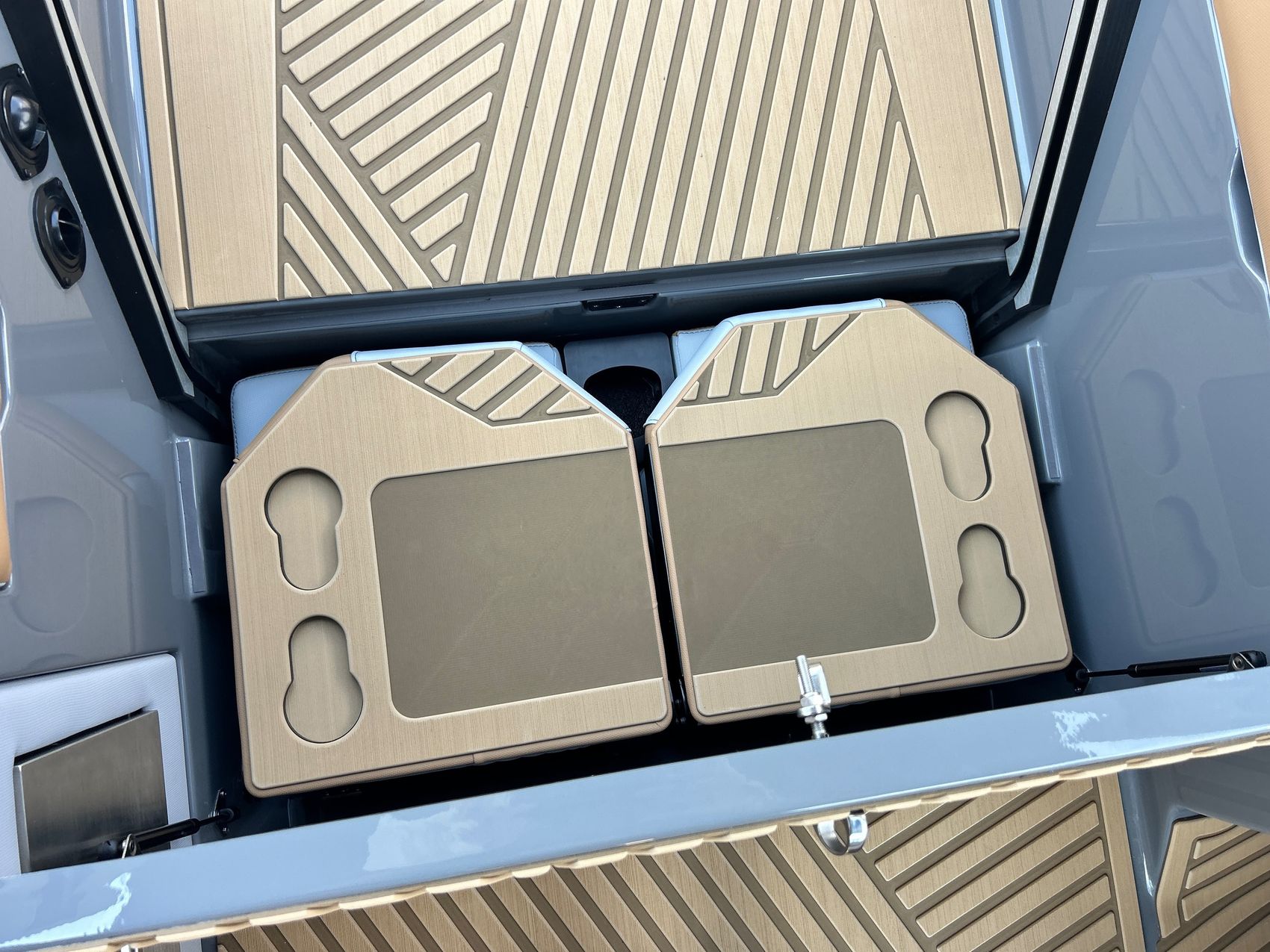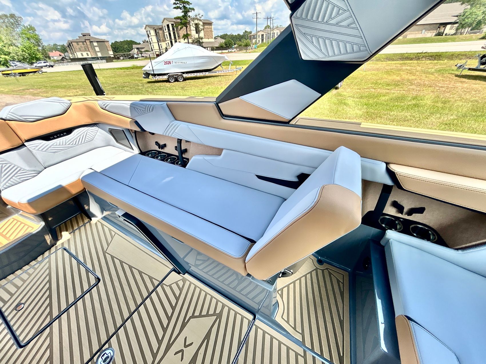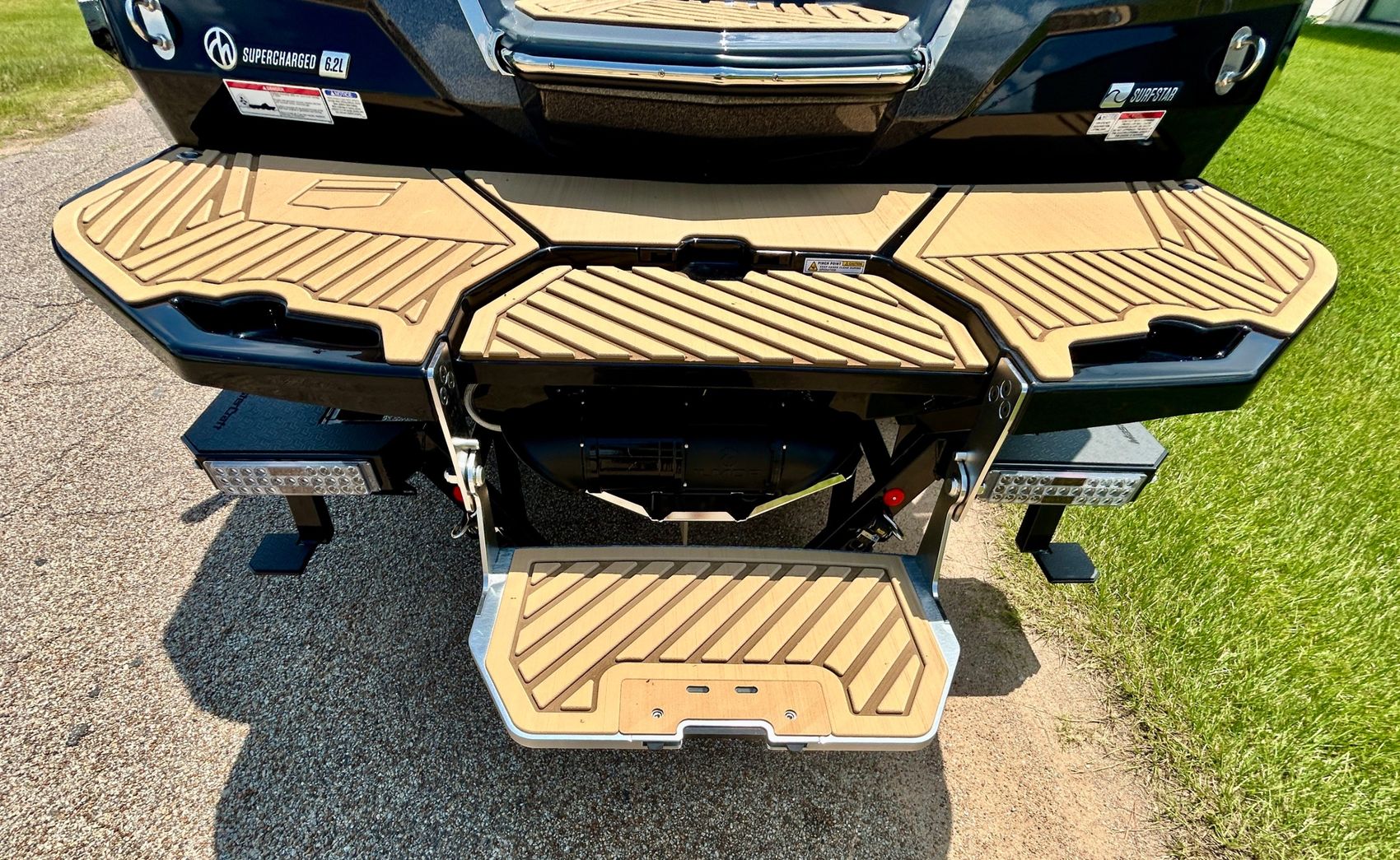 It screams AUDIO, MAX AUDIO, MasterCraft's aft audio experience. First ever full transom sound system delivering premium audio directly to your surfers. In total 6 subwoofers, 10 cockpit speakers, 4 on the tower and 6 transom speakers. That's 26 speakers on your XStar delivering 4,700 watts of pure power. Loud, but studio level clear (7 customizable zones).