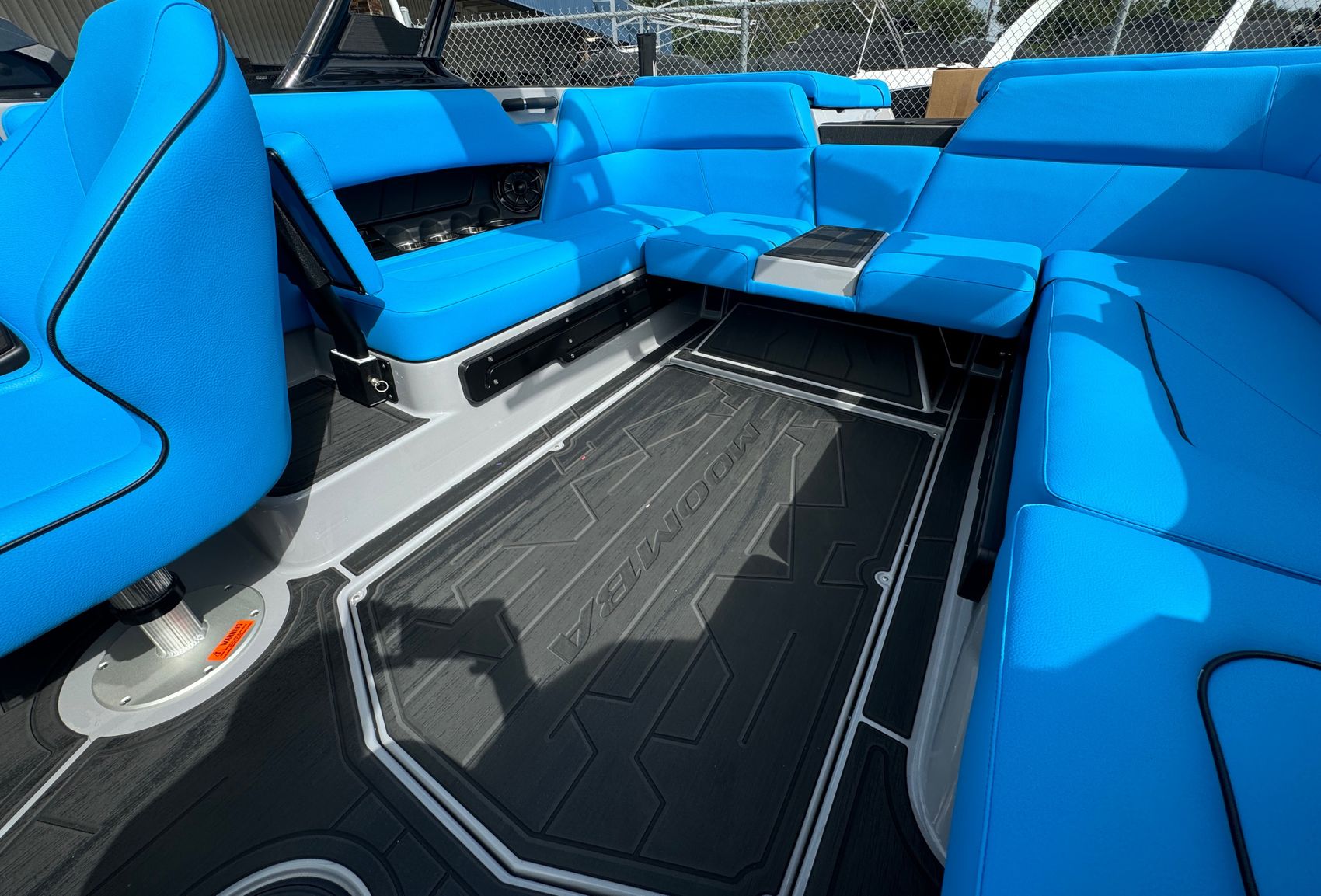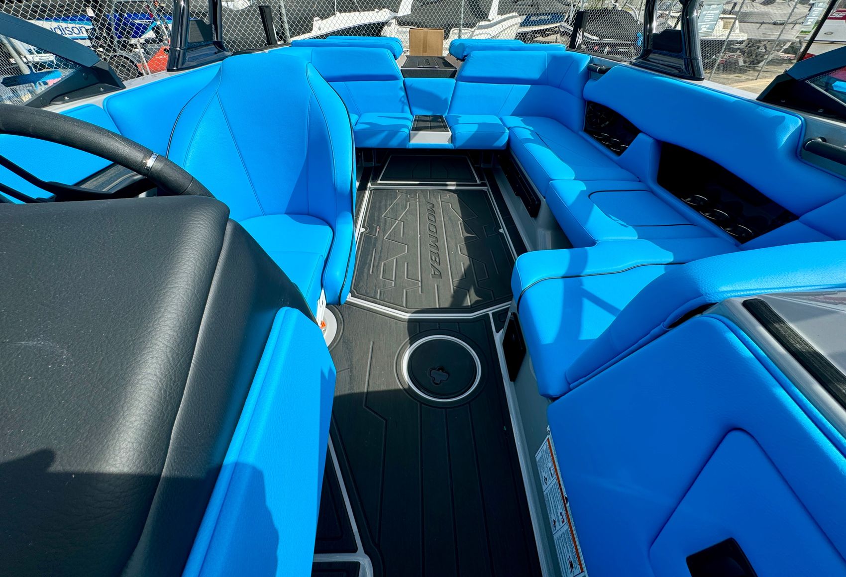 The 2025 Moomba Craz Boat sports an eye-catching, sleek design that seamlessly integrates functionality and style. Its modern look and clean lines are sure to turn heads wherever you go. Available in a range of vibrant colors, it is the perfect blend of aesthetics and state-of-the-art craftsmanship.