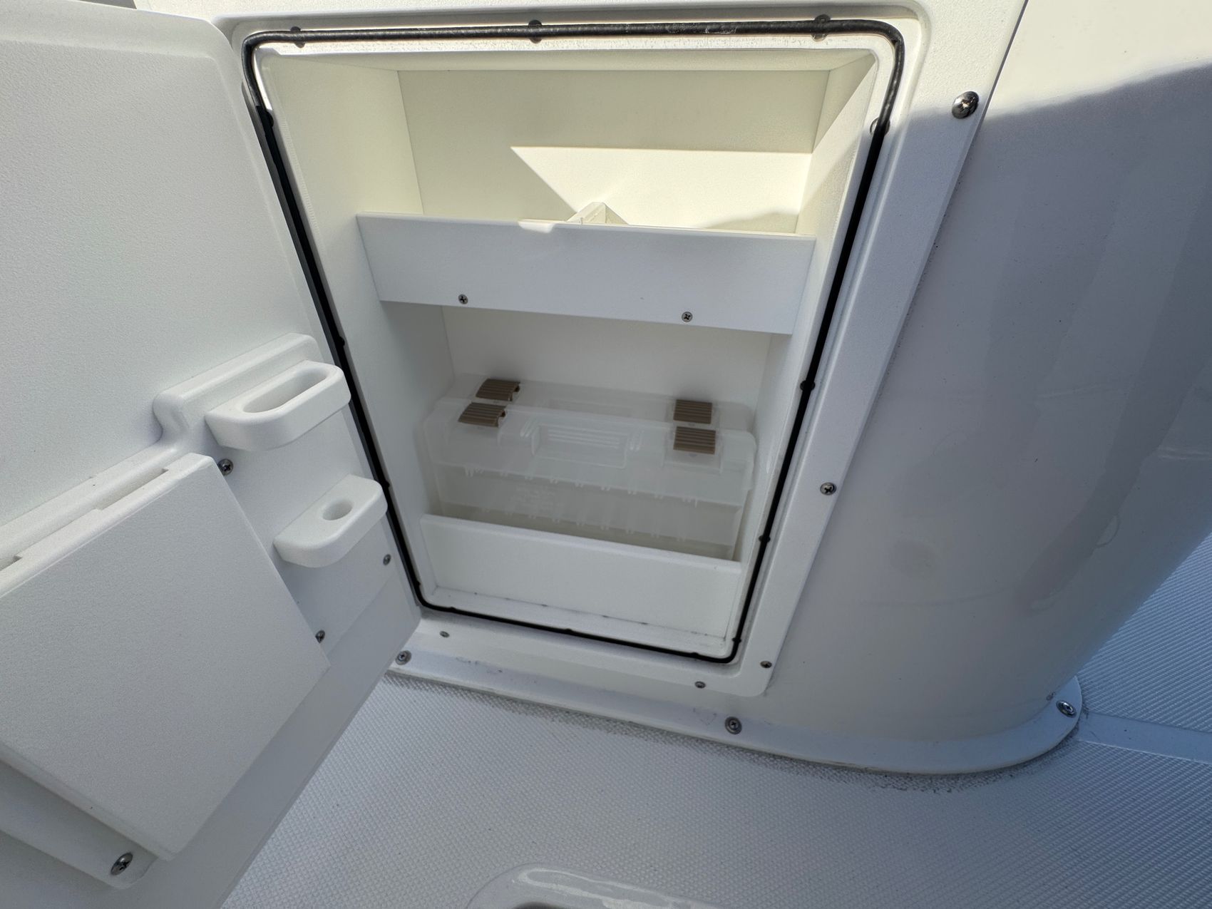 Upon stepping on board, you will immediately notice the spacious deck, immaculate finishes, and comfortable seating arrangements. This layout allows for easy movement around the boat, making it a versatile choice for various water activities. With ample storage for fishing gear and personal items, the Gamefish 27 CB leaves nothing to be desired.