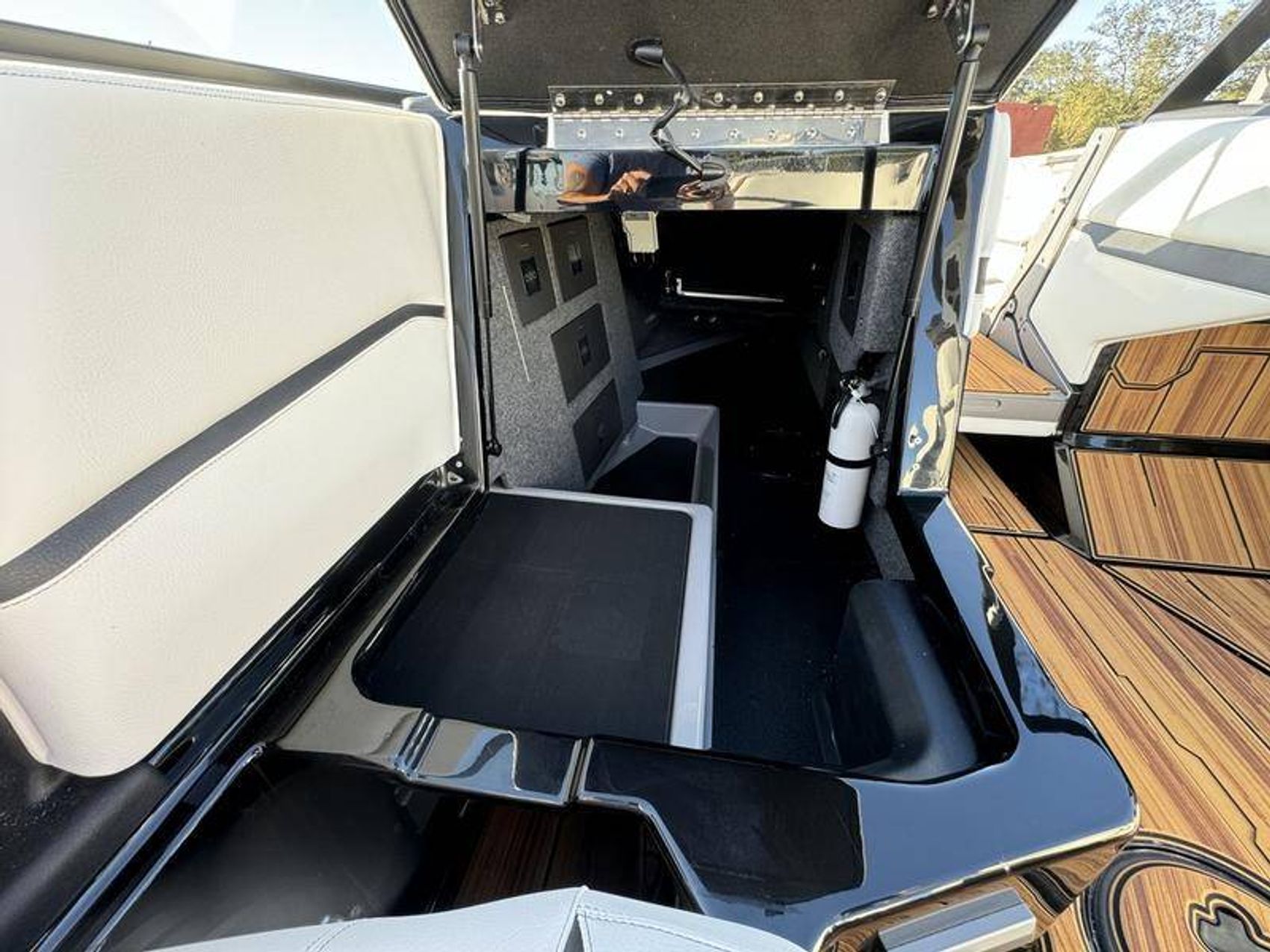 Designed with meticulous attention to detail, this tower represents superior engineering, offering enhanced functionality and style. It comes equipped standard with new ClampForceTM board racks, providing convenient and secure storage for your wakeboards. Bimini storage has been improved for easy access and a cleaner look.