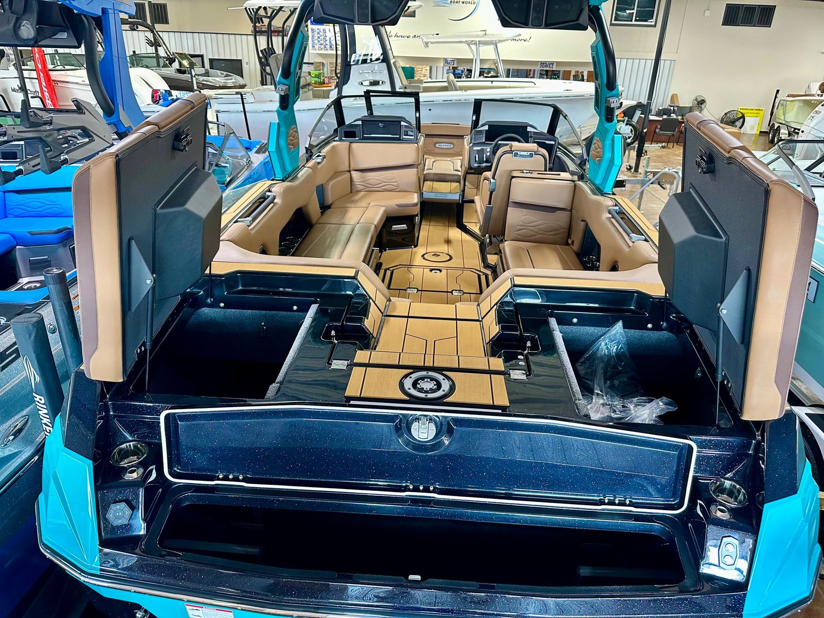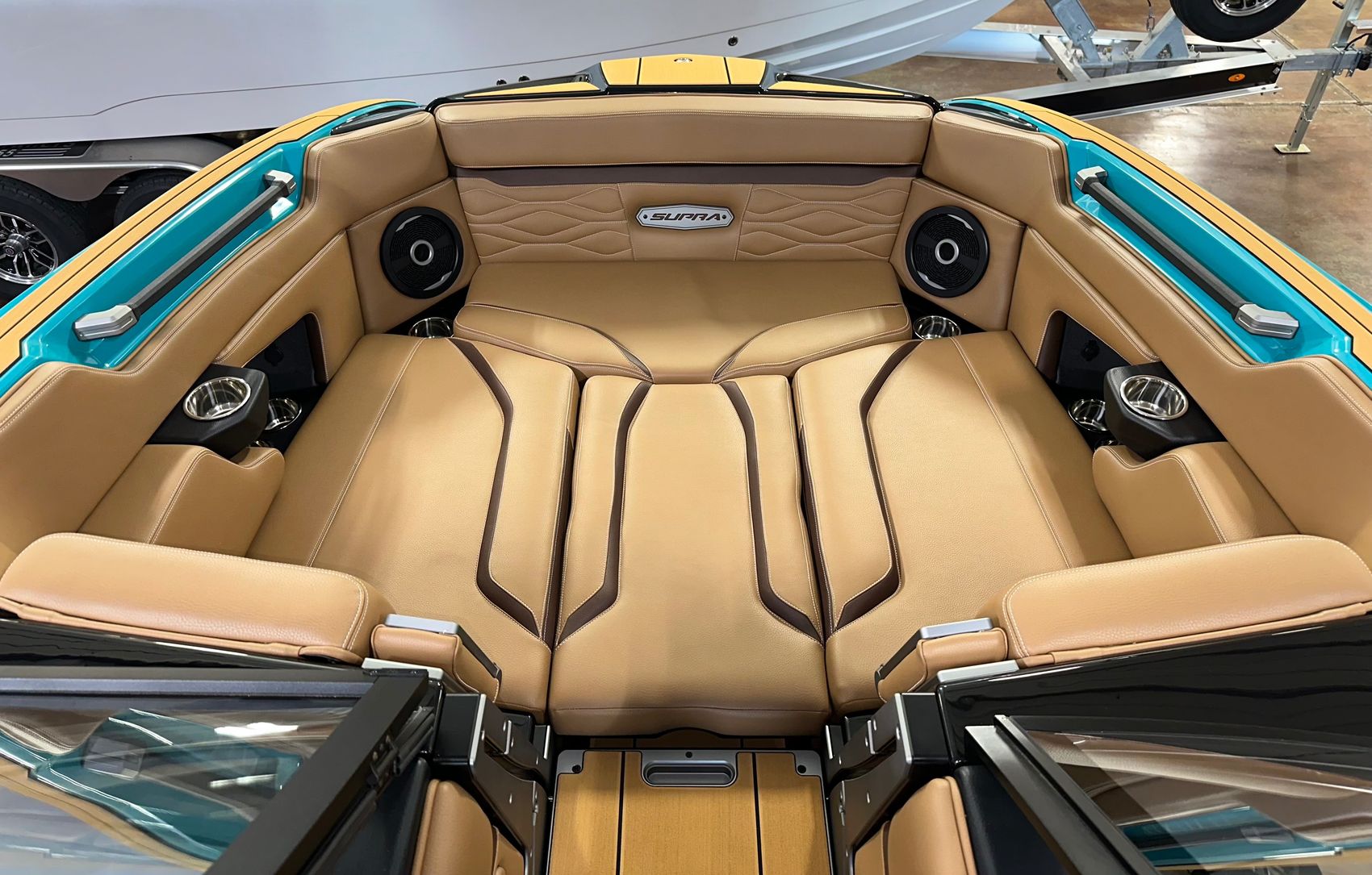 This boat is set to provide an optimum water sports experience. Whether wakeboarding or water skiing, the Supra SE 450 has specialized features like perfect pass cruise control, auto wake, and surf system, ensuring exceptional performance and a memorable day for riders.