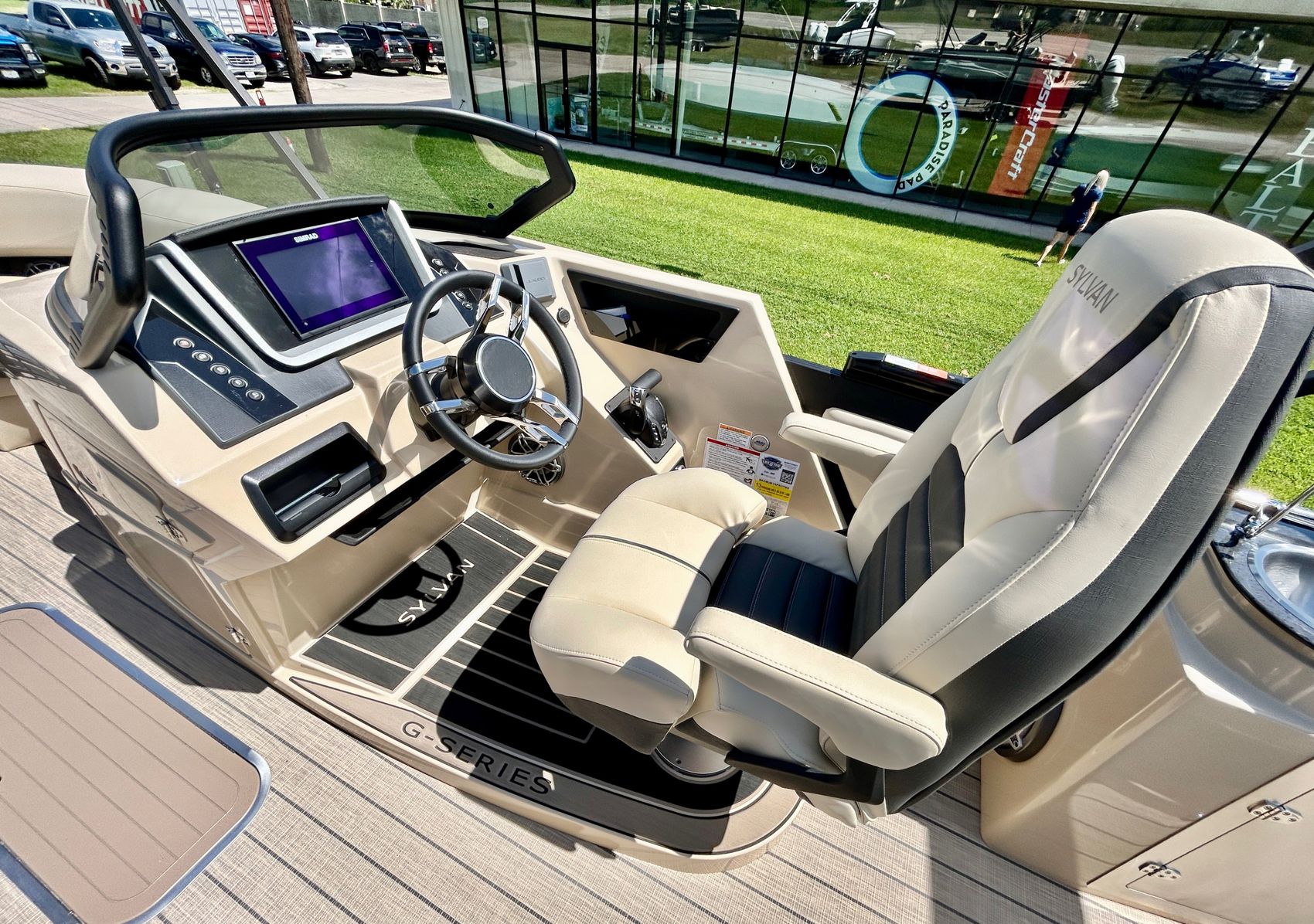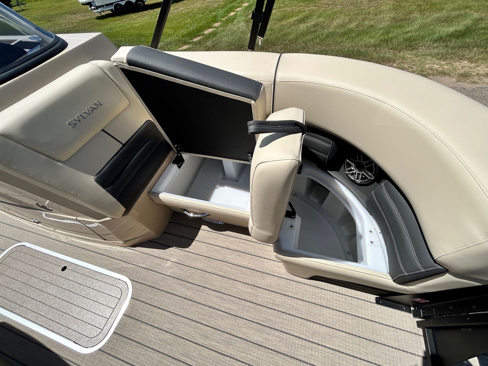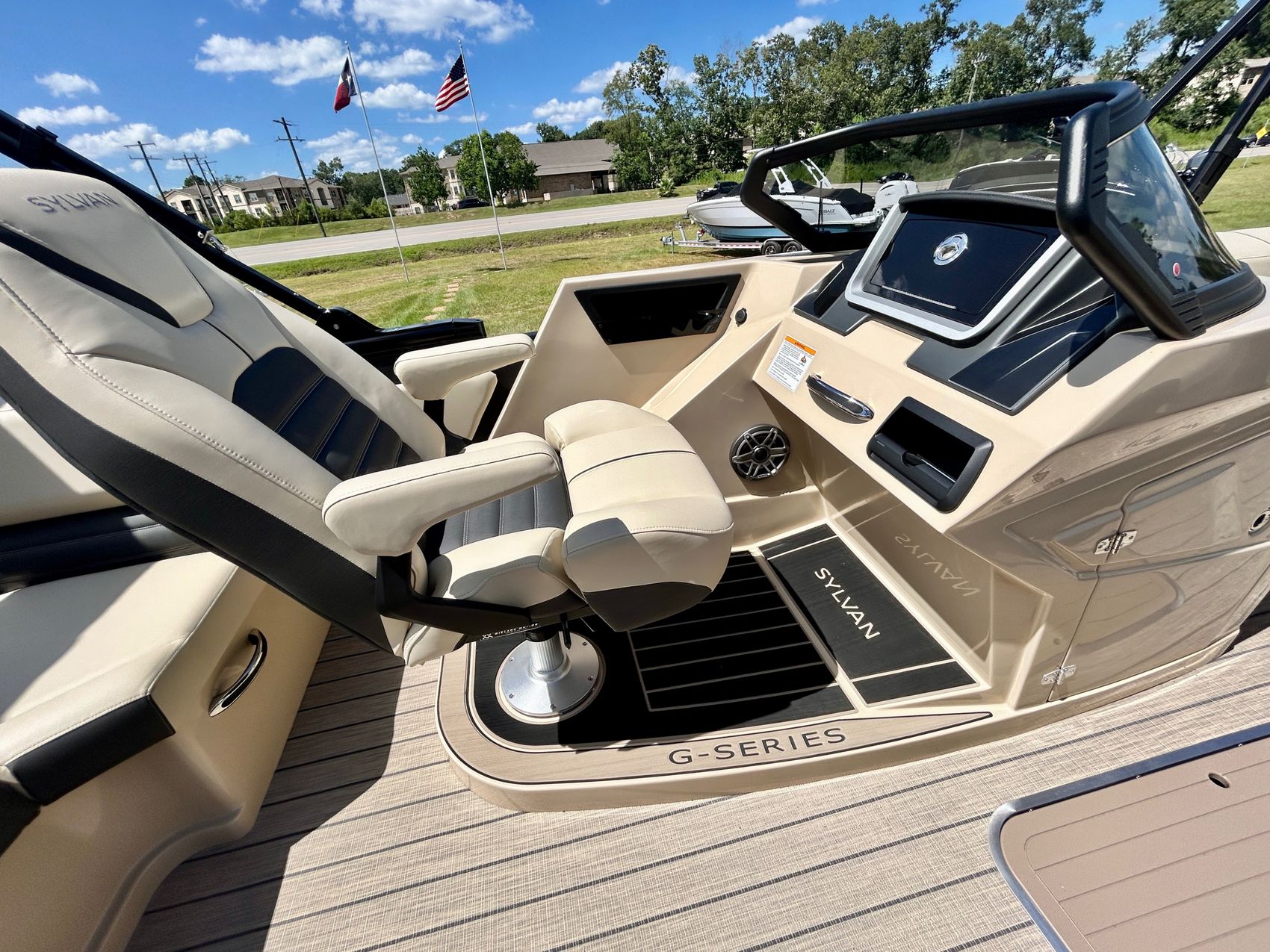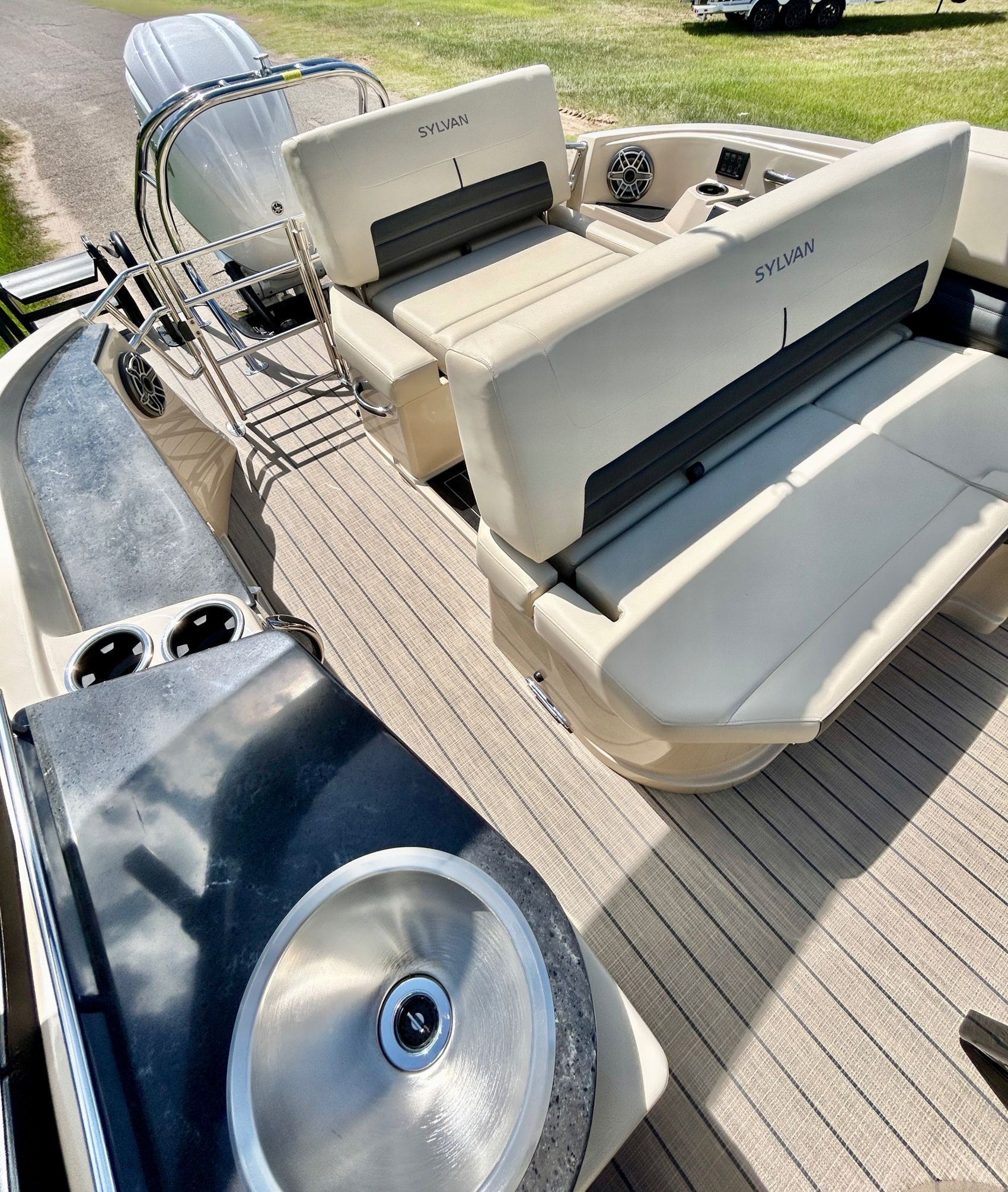 The Sylvan G3 DLZ DC boat showcases a stylish design that catches the eye instantly. With its sleek lines and modern aesthetic, this boat stands out not just for its performance but its visual appeal as well.