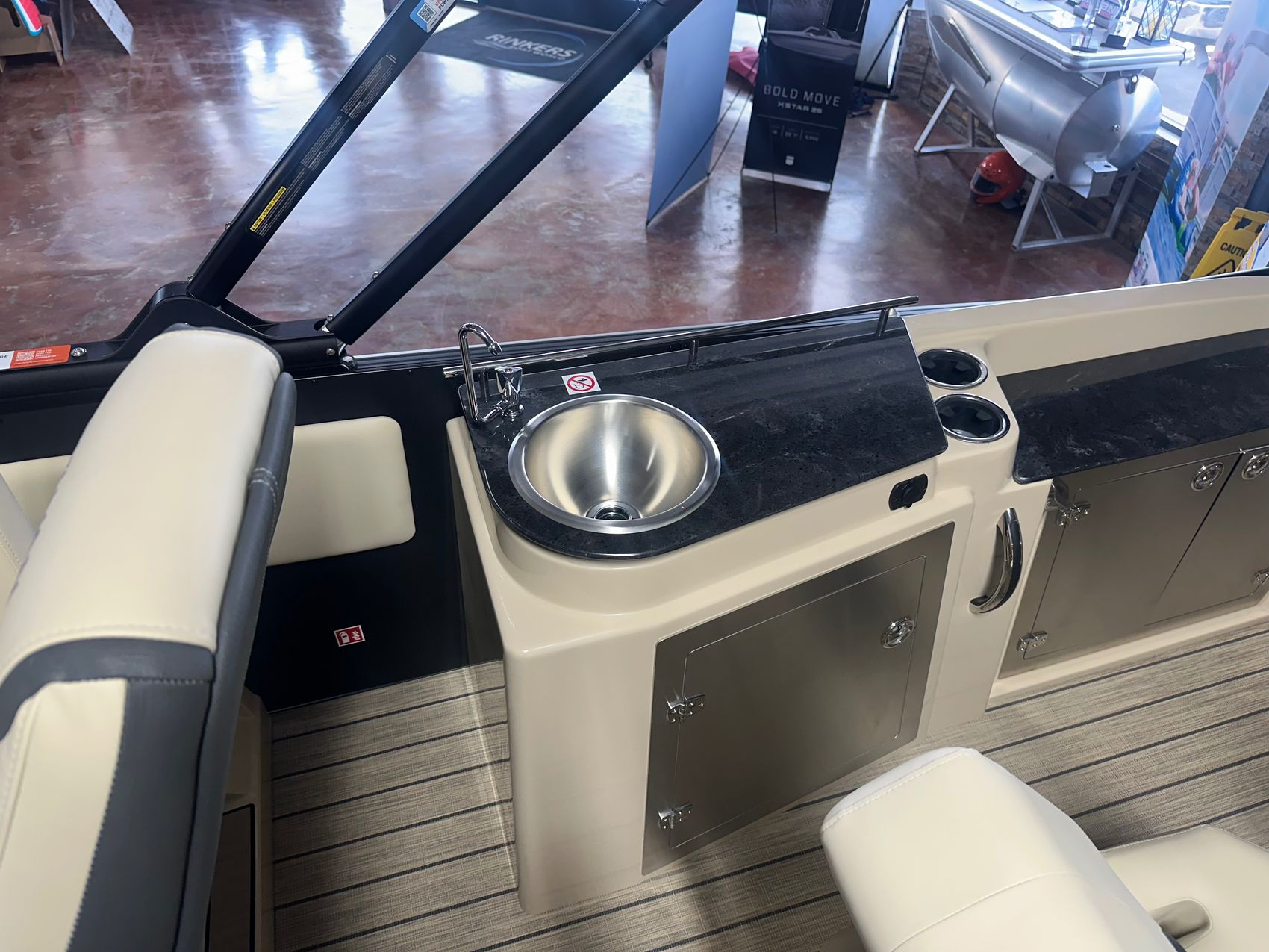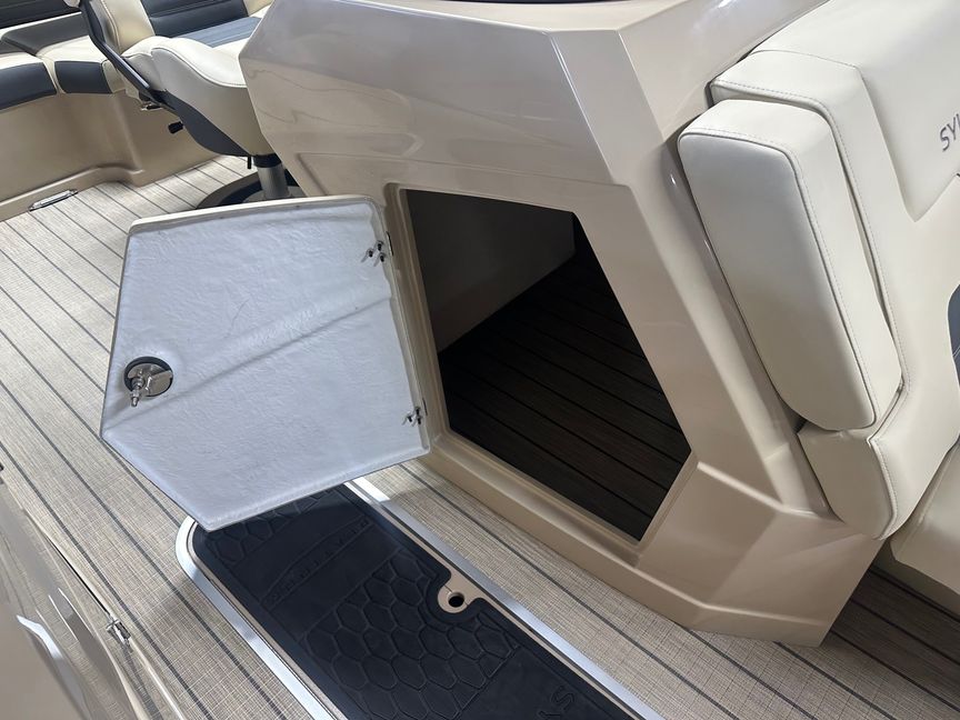 Designed to provide an unmatched level of comfort, the interior of the 2026 Sylvan G3 DLZ DC Boat is spacious and welcoming. Equipped with high-end finishes and modern amenities, the cabin invites you to relax and enjoy the journey in a completely relaxing environment.