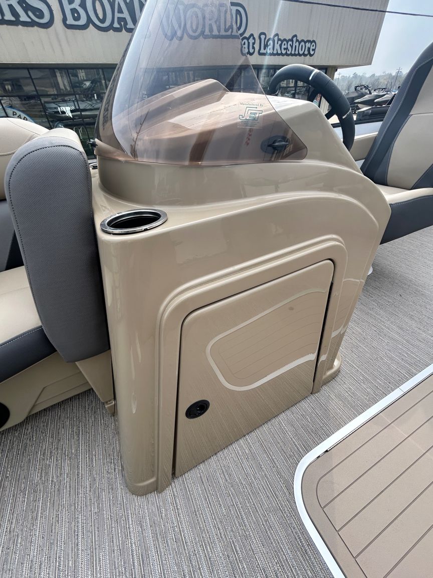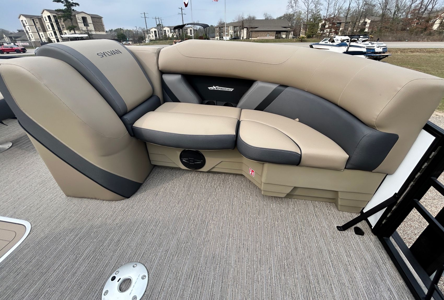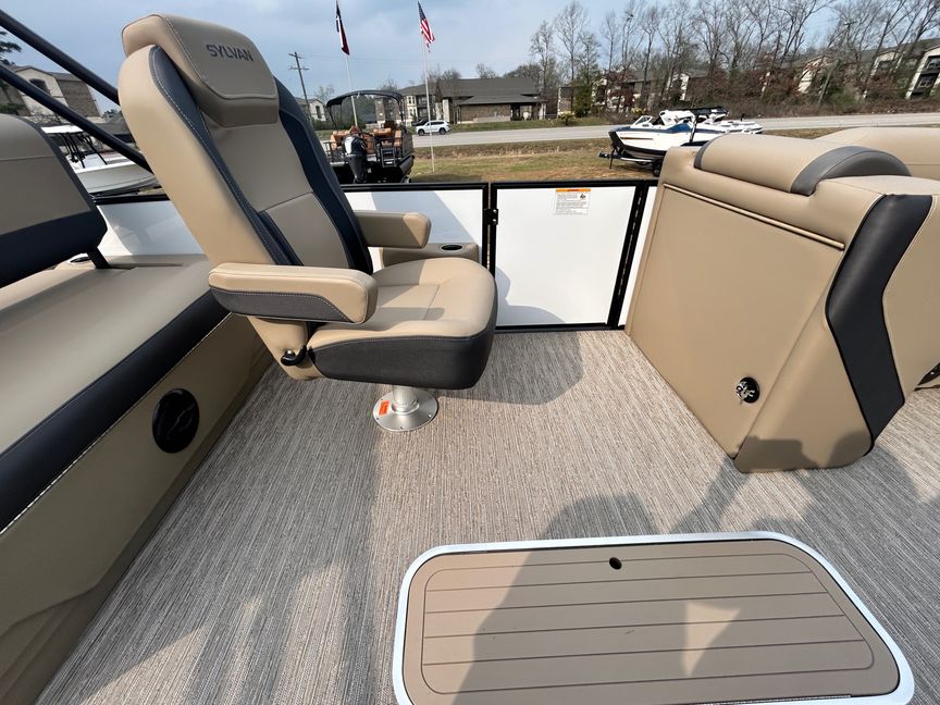 Introducing the 2026 Sylvan Marine Mirage X1 CLZ DH Pontoon Boat, a perfect choice for luxury and comfort on the water. Recognizing Sylvan's commitment to quality and design, this boat is an elegant testament to boat craftsmanship with its superior fittings and state-of-the-art features. This particular boat has a very timeless color scheme, very classy.