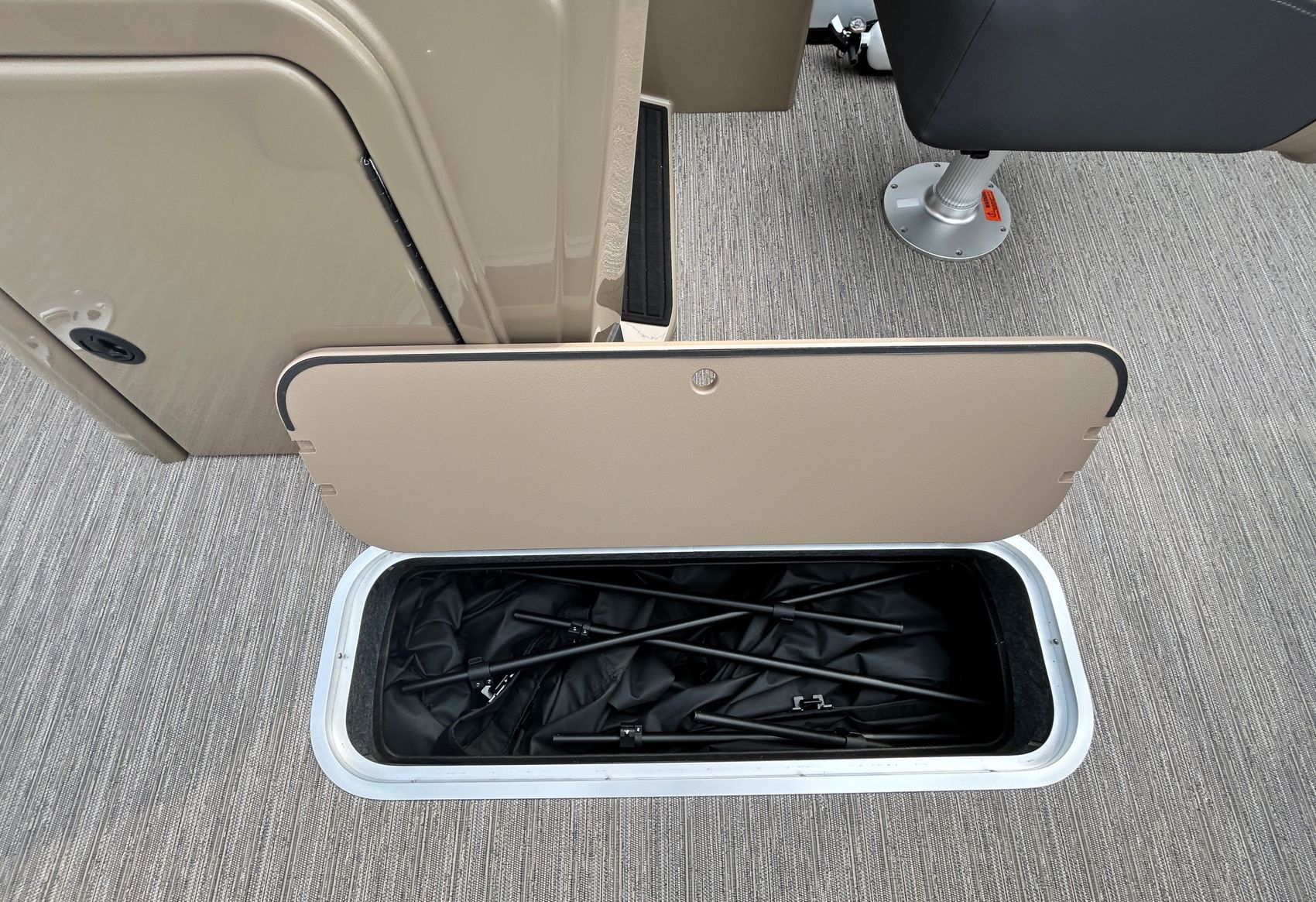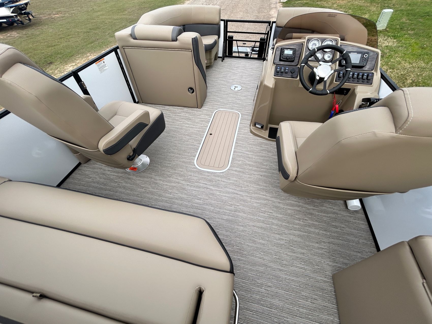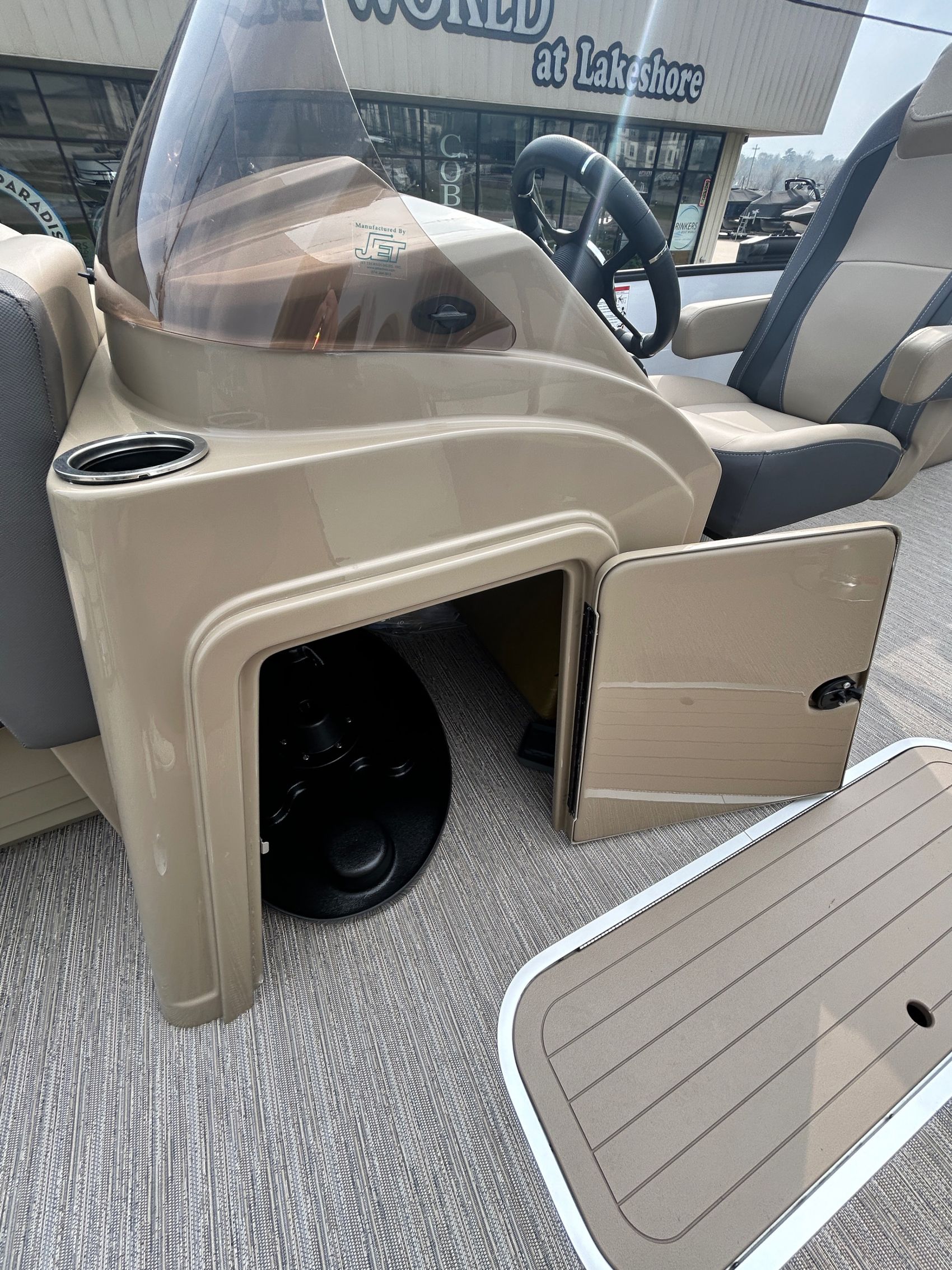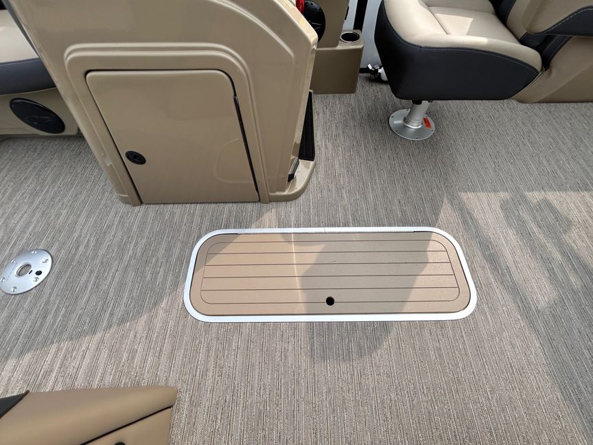 Built with an exceptional load-bearing capacity, this pontoon encompasses a spacious and luxurious layout. The high-end upholstered seats offer supreme comfort, while space-saving features ensure ample room for relaxation, dining and storage for water equipment and gear. For entertaining has a removable table and ski tow for watersports fun.