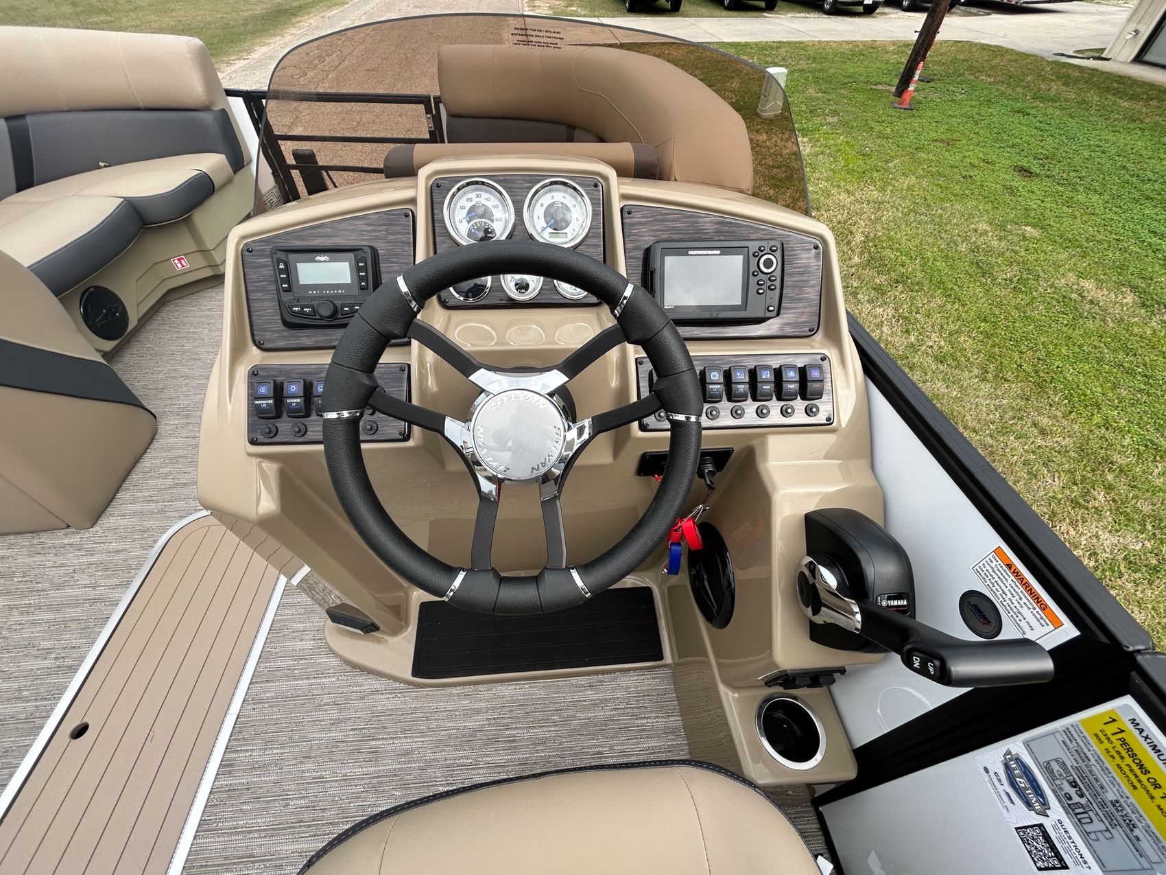 The 2026 Sylvan Mirage X1 CLZ DH outperforms in water with its powerful Yamaha outboard engine and advanced navigation system. It offers incredible stability and smooth sailing in varied water conditions, ensuring optimum safety for all on board. A standard feature is Sylvan's exclusive SPX PR25 Performance Package, Performance Shield, low-profile sport console, hydraulic steering, a third tube and more—makes this one of the most family-friendly options on the water.