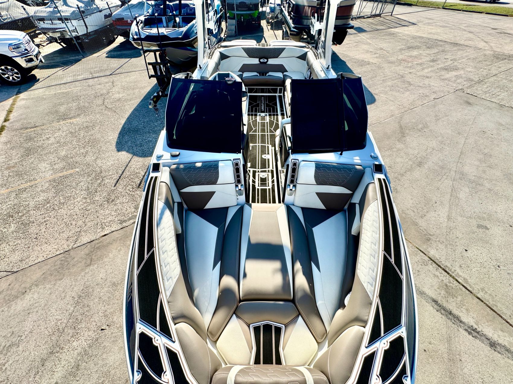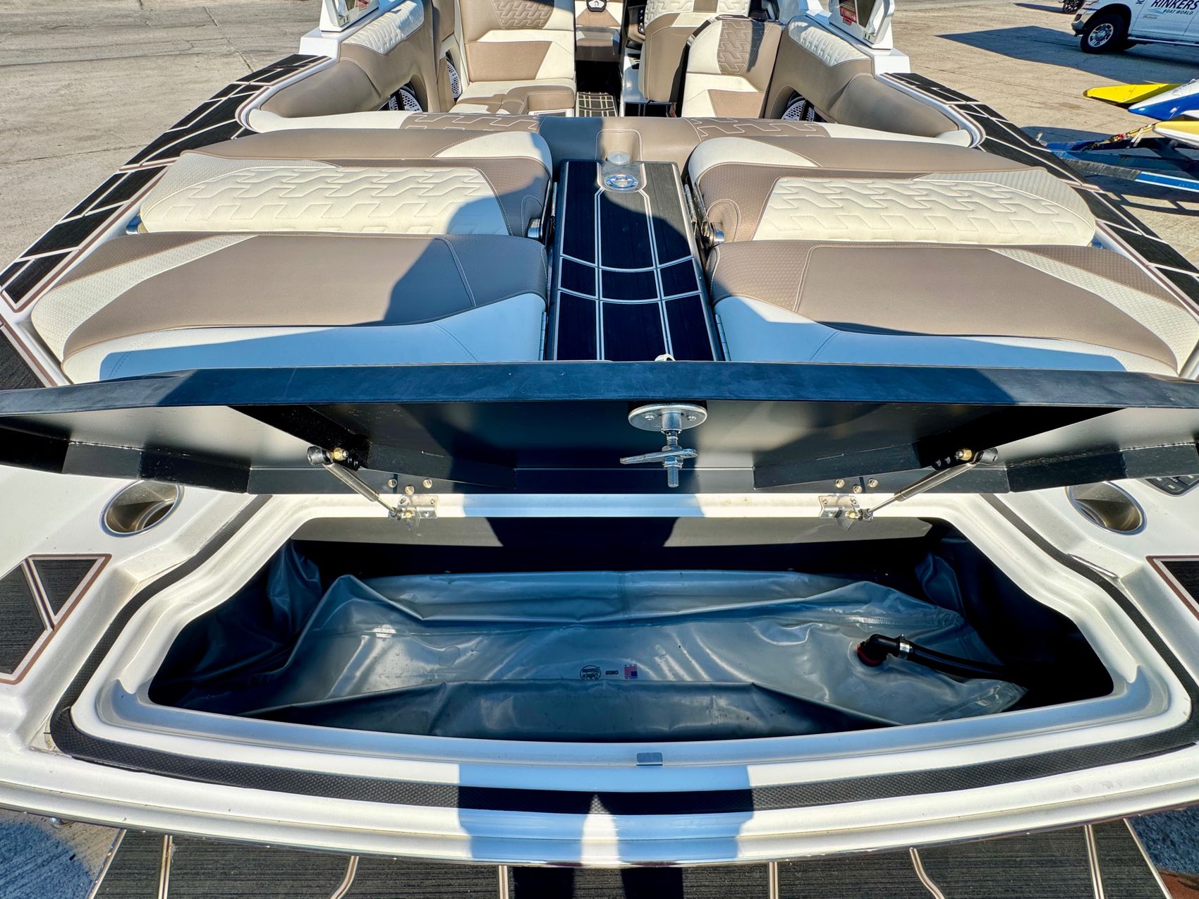 This boat features innovative onboard amenities, such as flat-screen navigation, plush seating, spacious deck area, full audio system and ample storage space. Everything to ensure comfort, convenience, and a truly unforgettable boating experience.