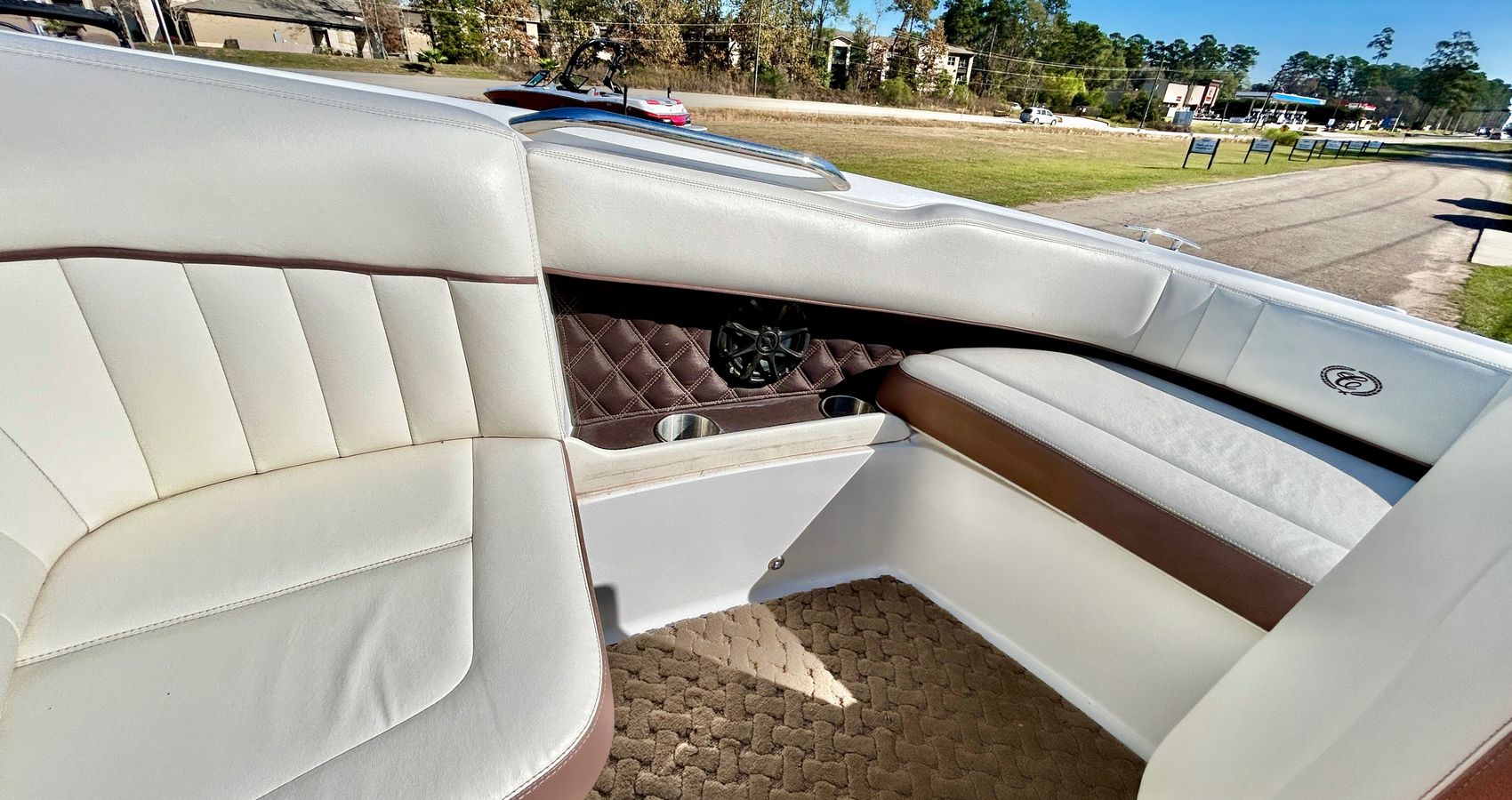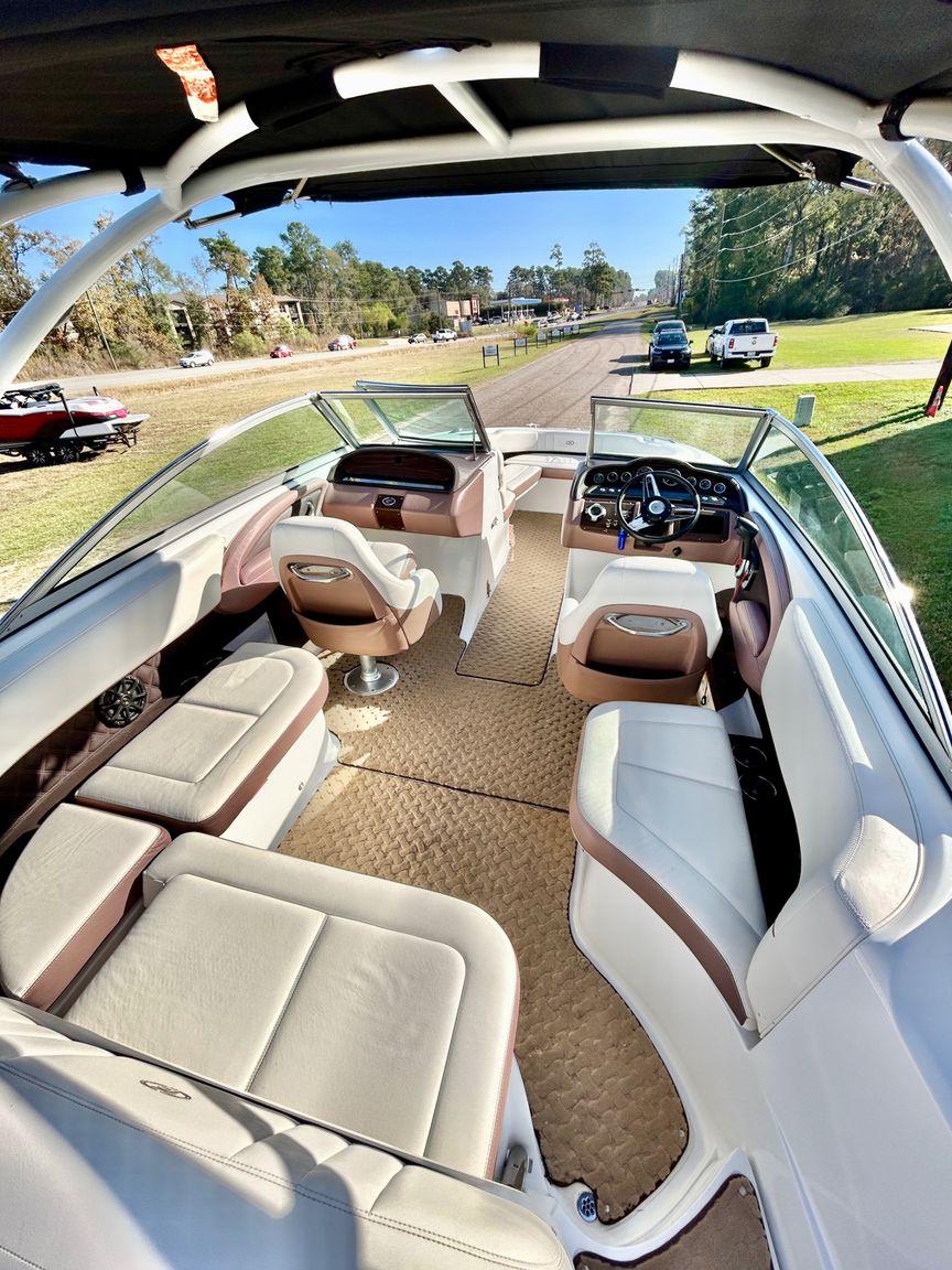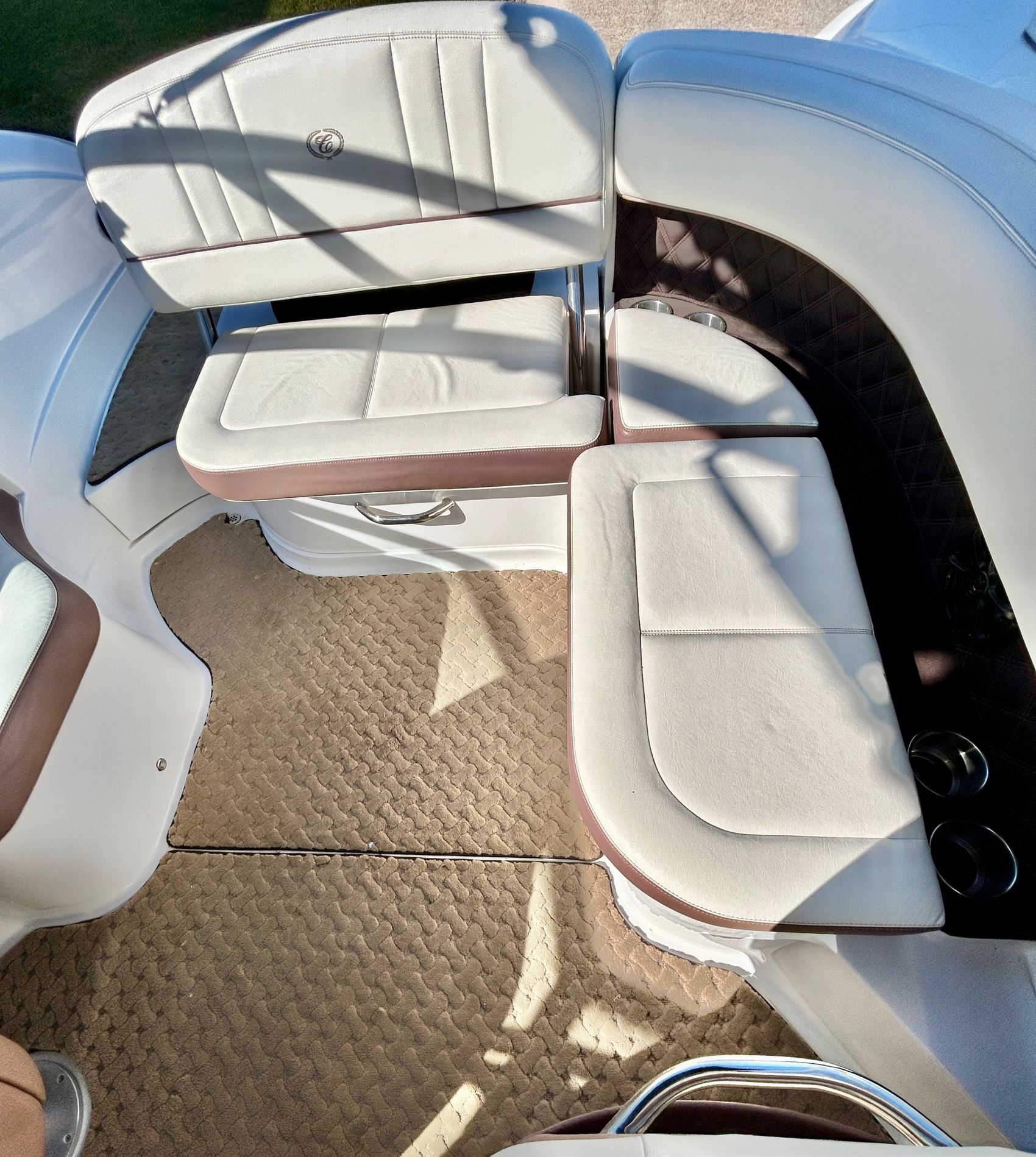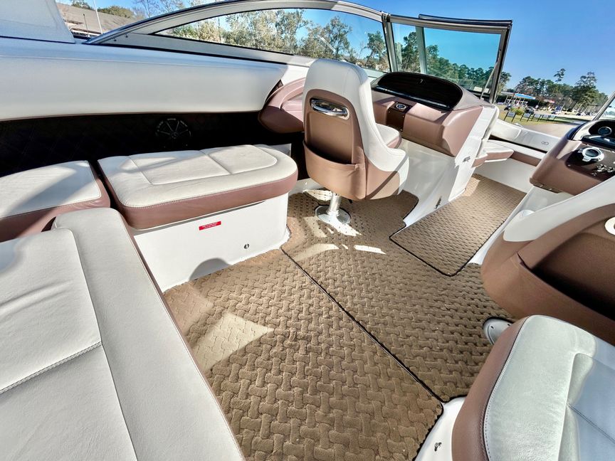 Design: The Cobalt 242 exhibits a sleek design that harmoniously merges style with function. The boat comes with top-tier upholstery, a stylish helm, and an ambient lighting system, ensuring your onboard experience is unmatched. Its deck layout offers luxurious seating arrangements that are customizable as per requirements.