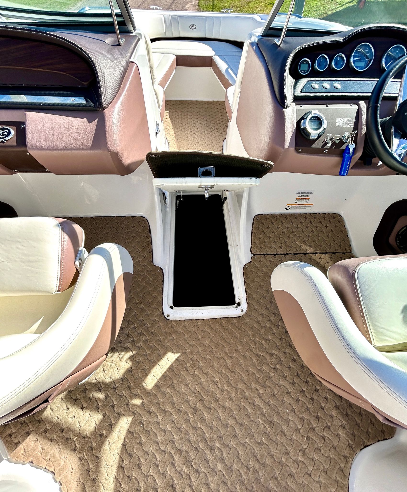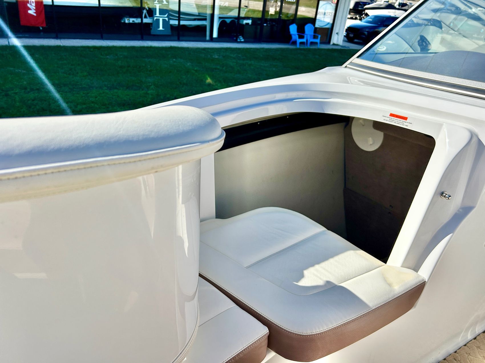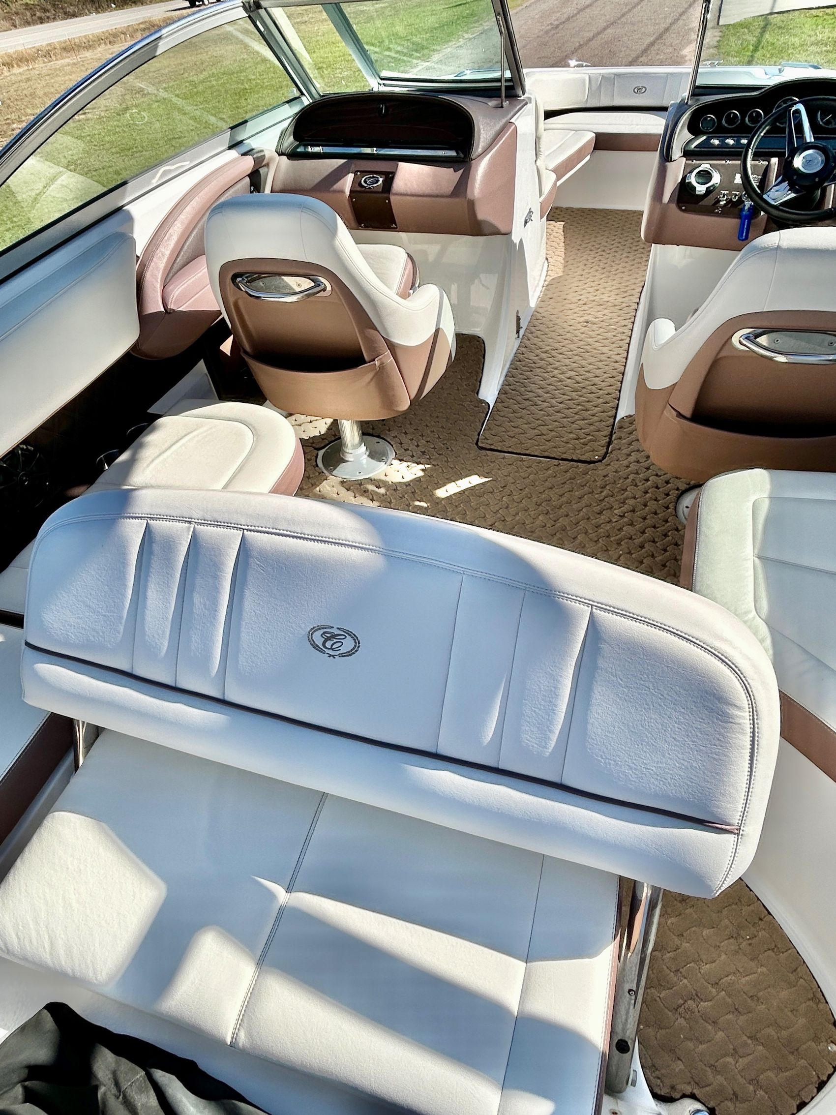 Design: The Cobalt 242 exhibits a sleek design that harmoniously merges style with function. The boat comes with top-tier upholstery, a stylish helm, and an ambient lighting system, ensuring your onboard experience is unmatched. Its deck layout offers luxurious seating arrangements that are customizable as per requirements.