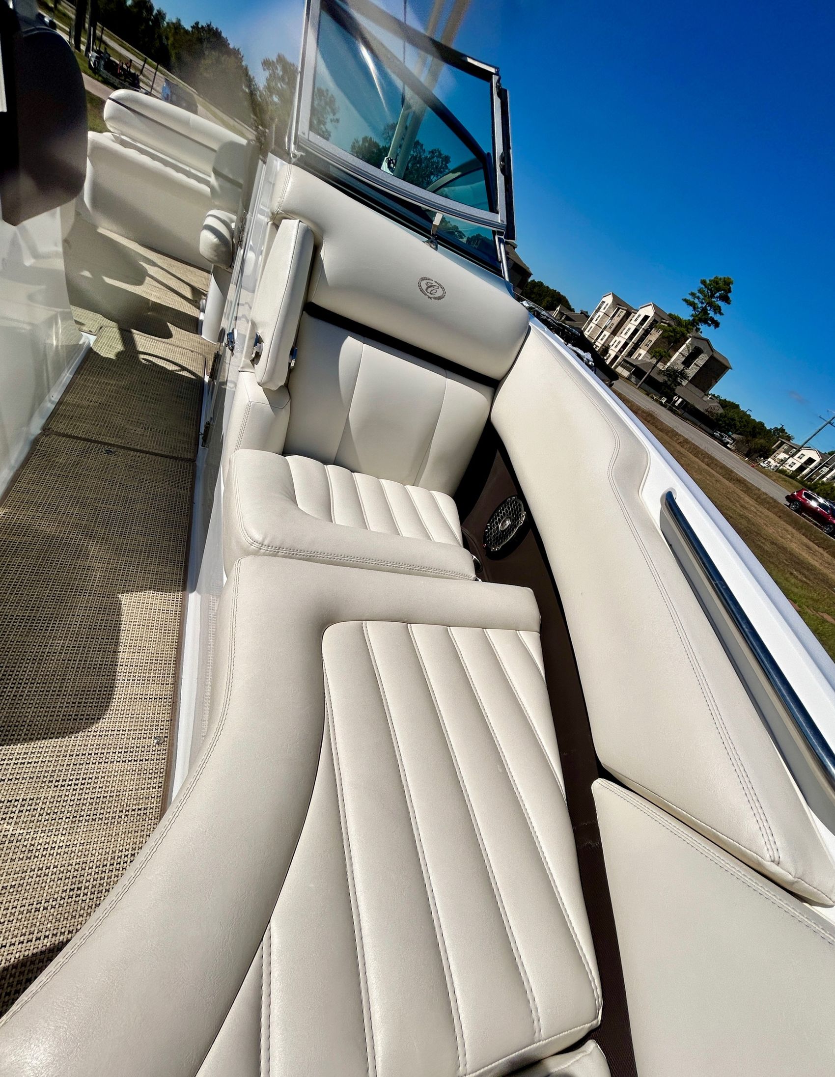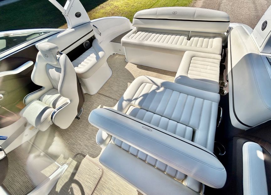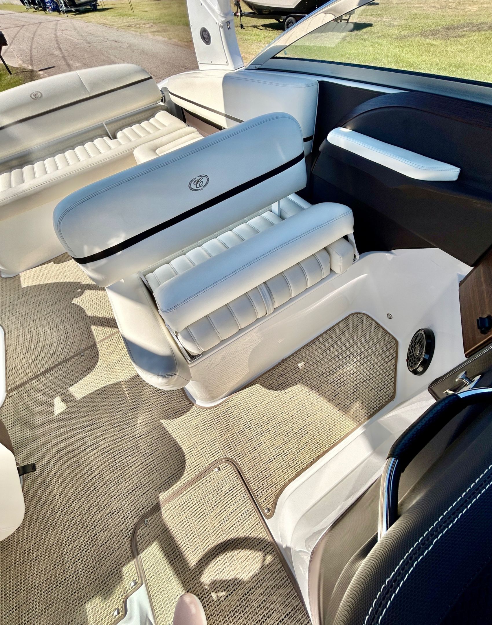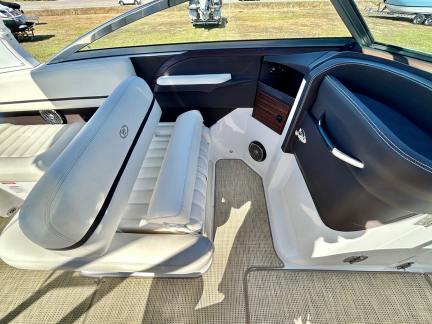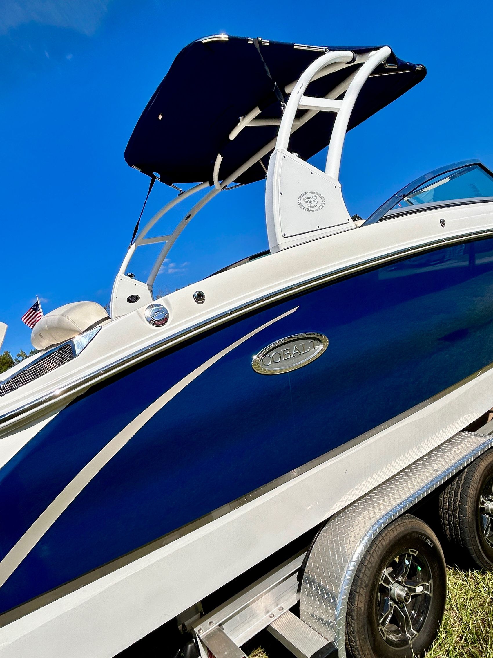 Design and Construction: Constructed with top-tier materials, this boat showcases Cobalt's dedication to expert craftsmanship and innovative design. It has a unique deep-V hull design that cuts through the waves seamlessly, providing you with a smooth sailing experience.