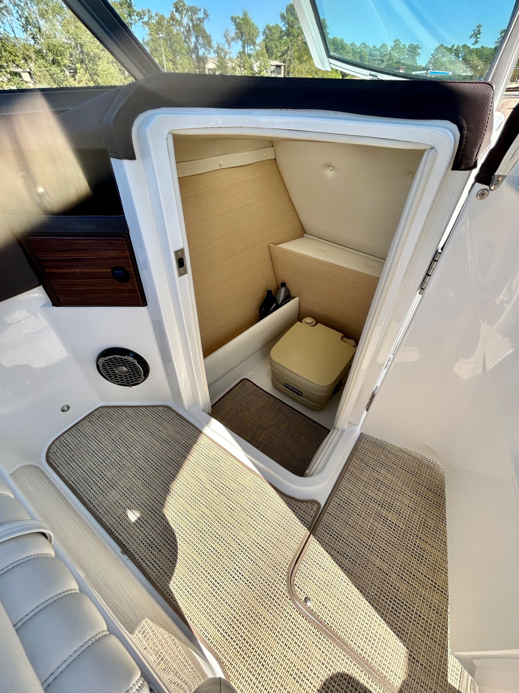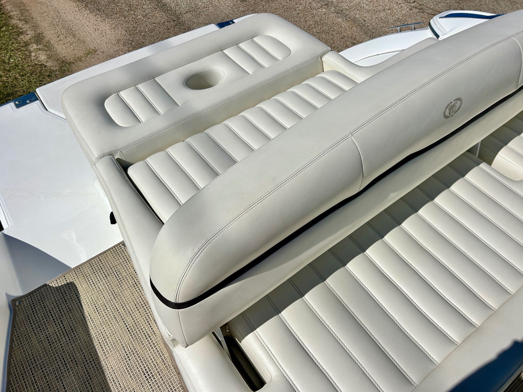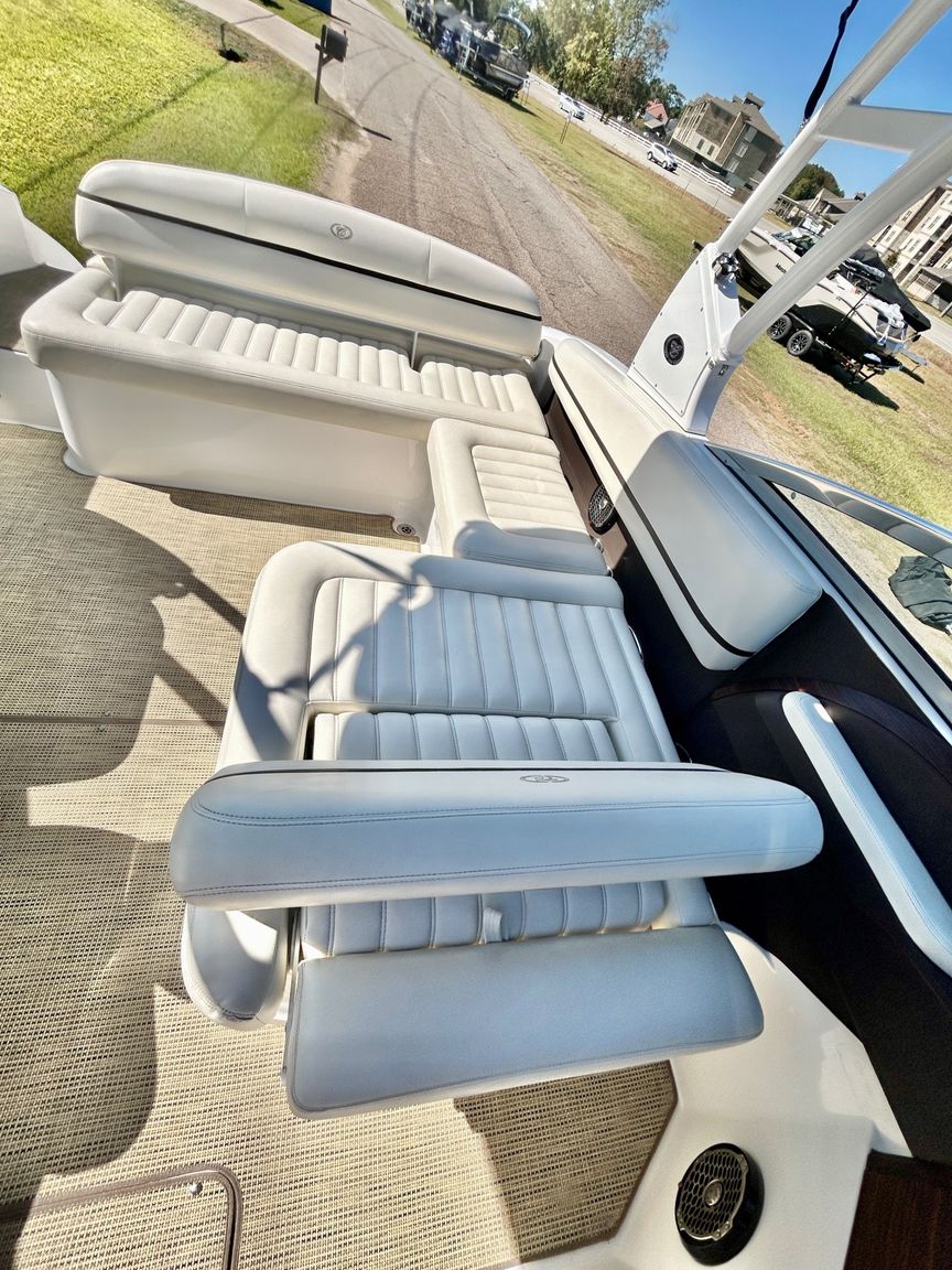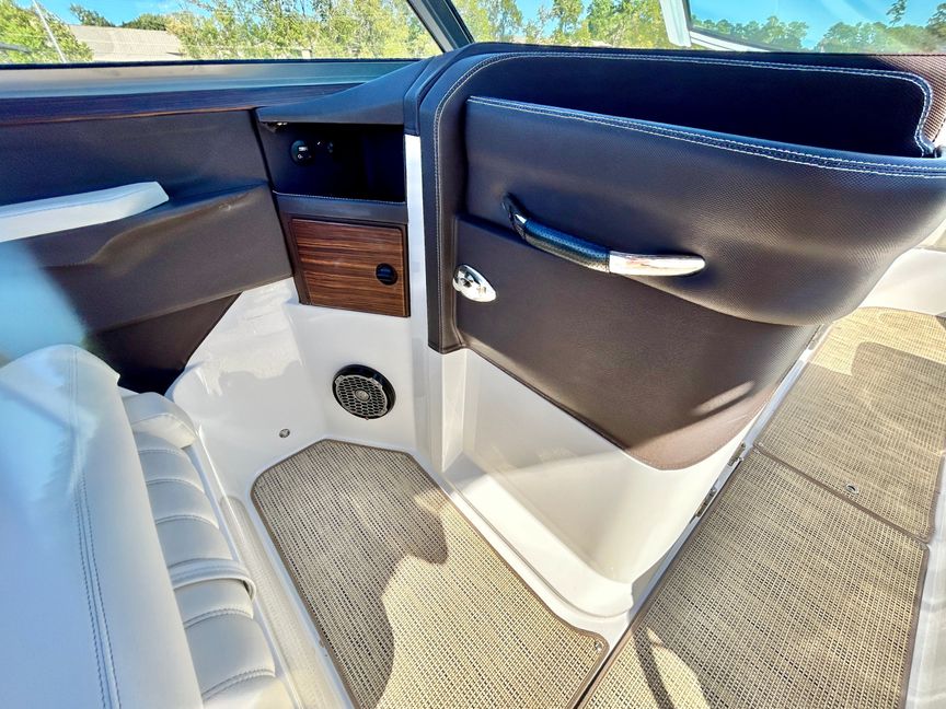 Design and Construction: Constructed with top-tier materials, this boat showcases Cobalt's dedication to expert craftsmanship and innovative design. It has a unique deep-V hull design that cuts through the waves seamlessly, providing you with a smooth sailing experience.