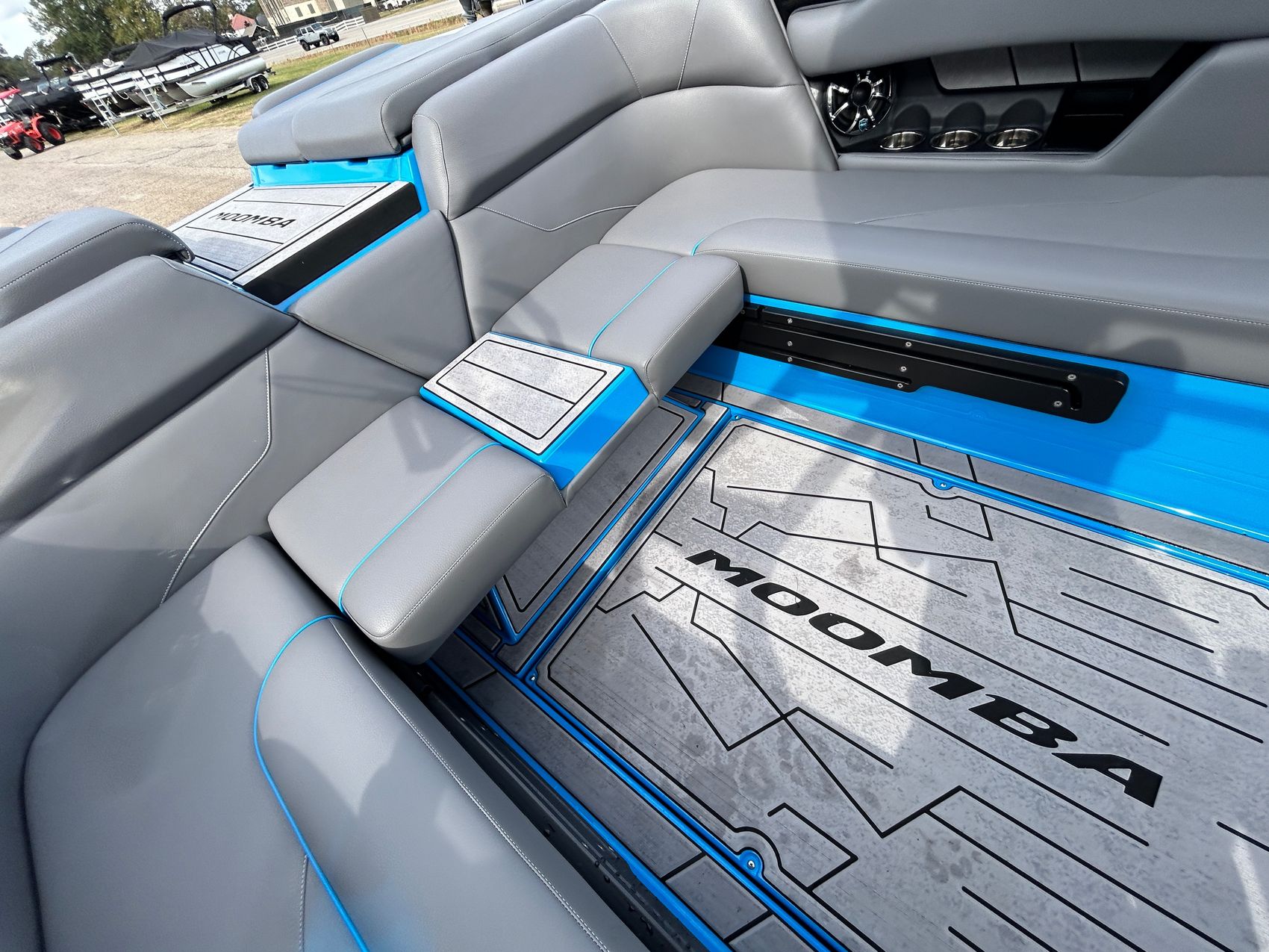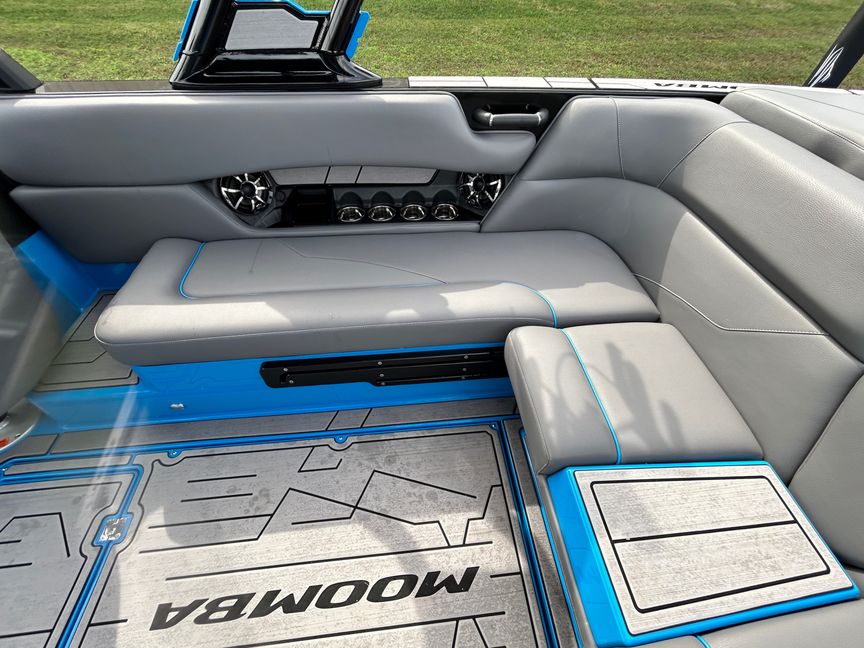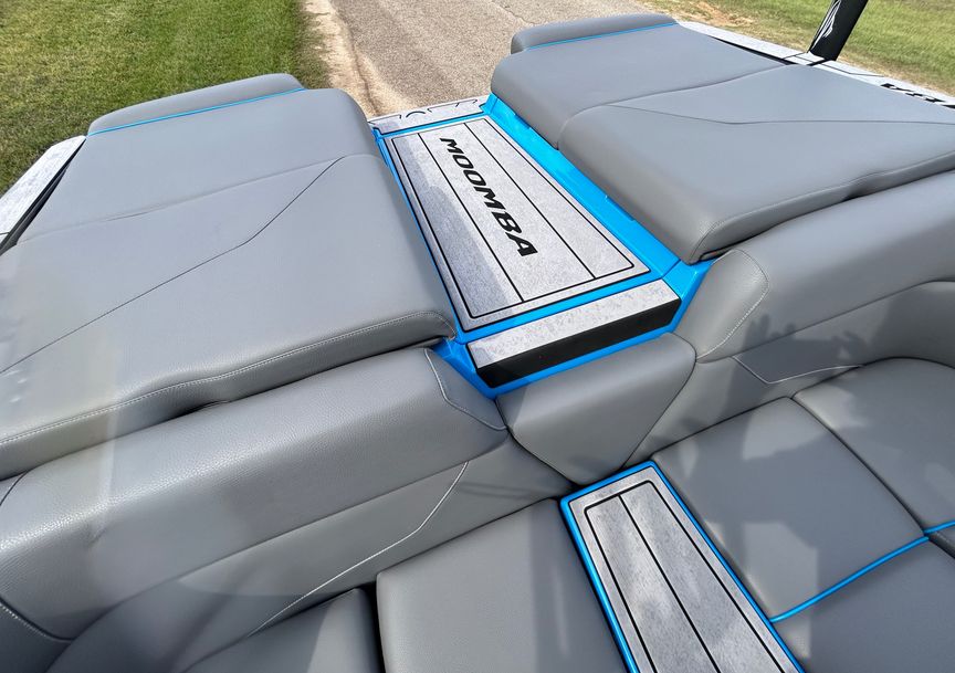 The 2023 MOOMBA Mojo Boat is designed to support a variety of water sports. Whether you're into wakeboarding, water skiing, or simply cruising, it boasts a responsive wake, giving you a thrilling water experience.