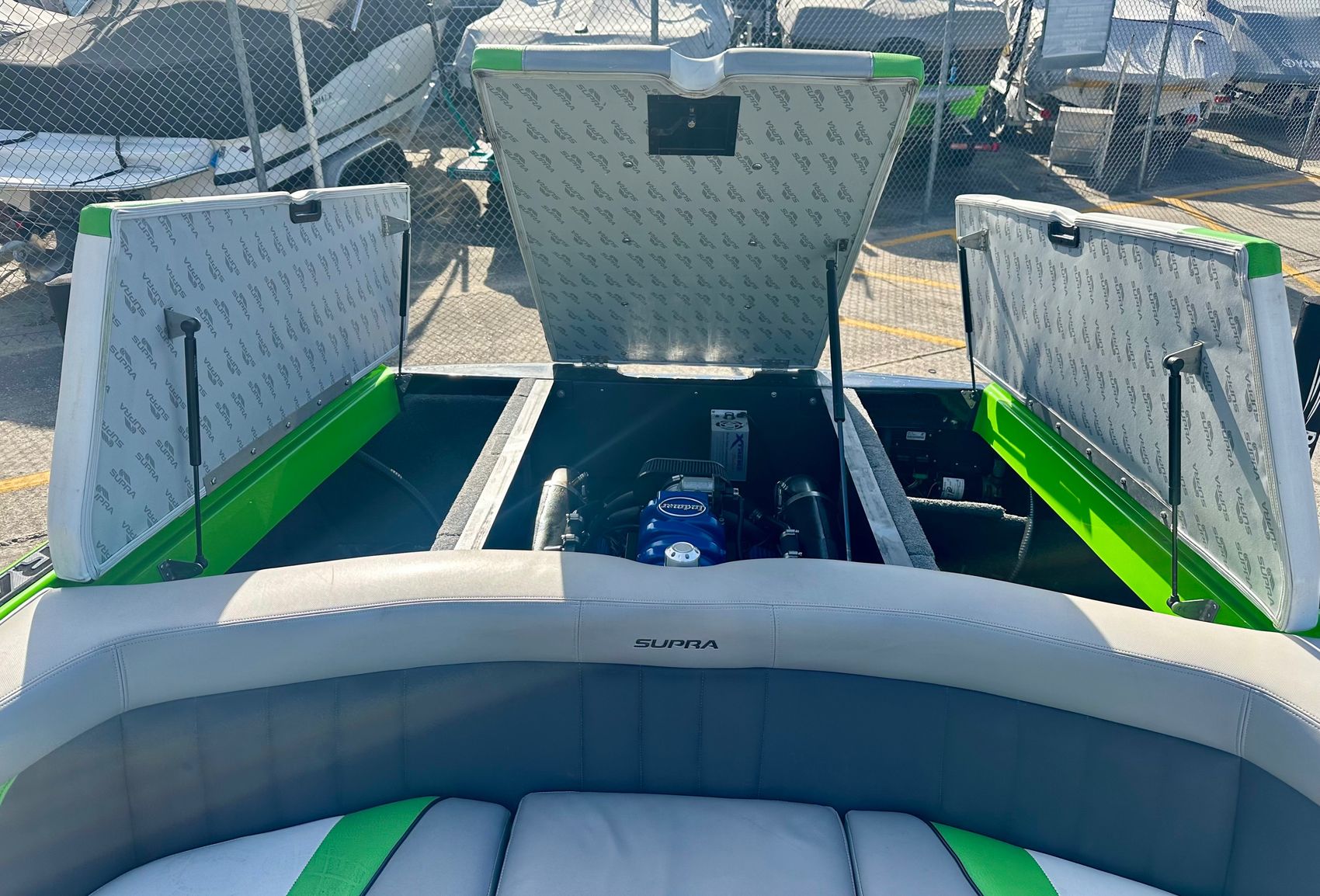Step inside the 2014 Supra Launch 242 and be greeted by a luxuriously comfortable interior. With comfortable seating for moments of relaxation and a well-equipped dashboard for easy navigation, this boat guarantees an unforgettable travel experience.